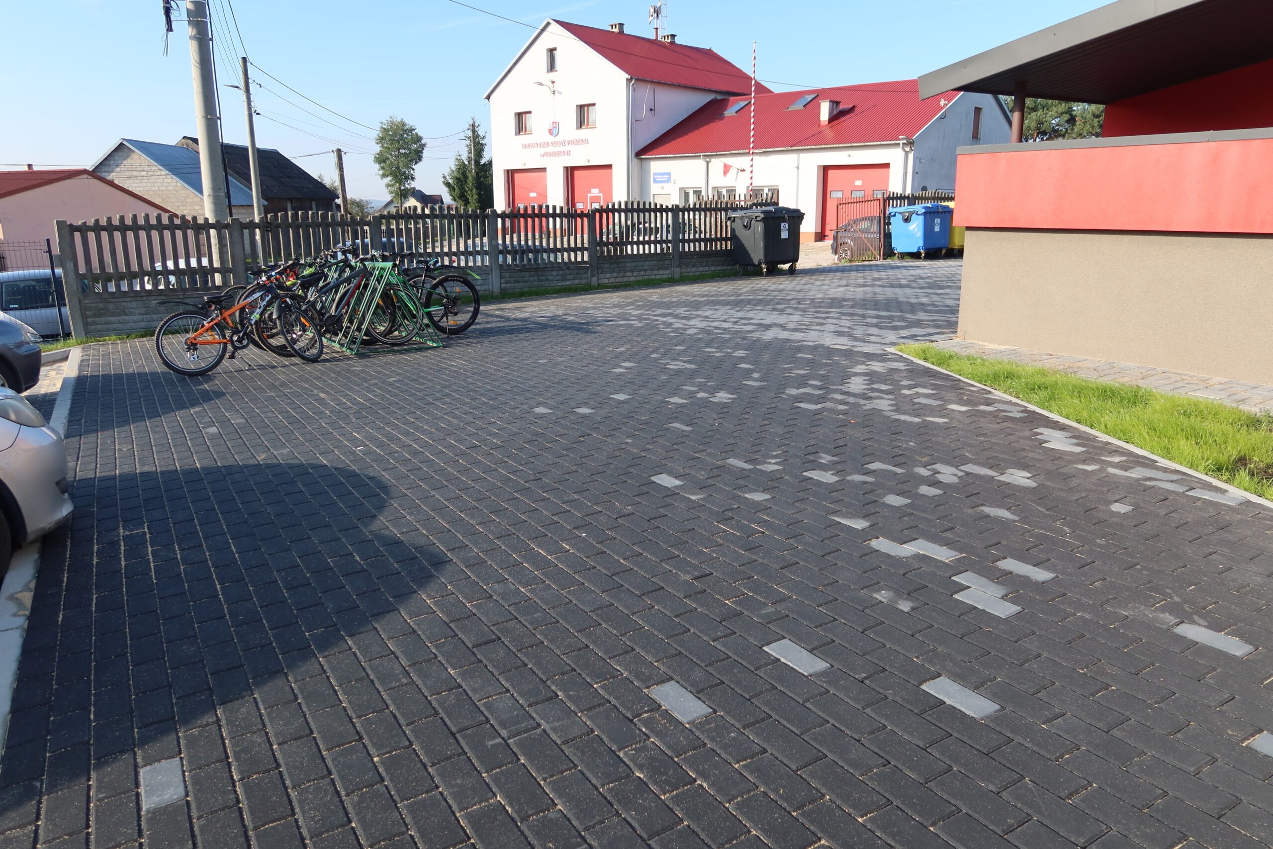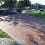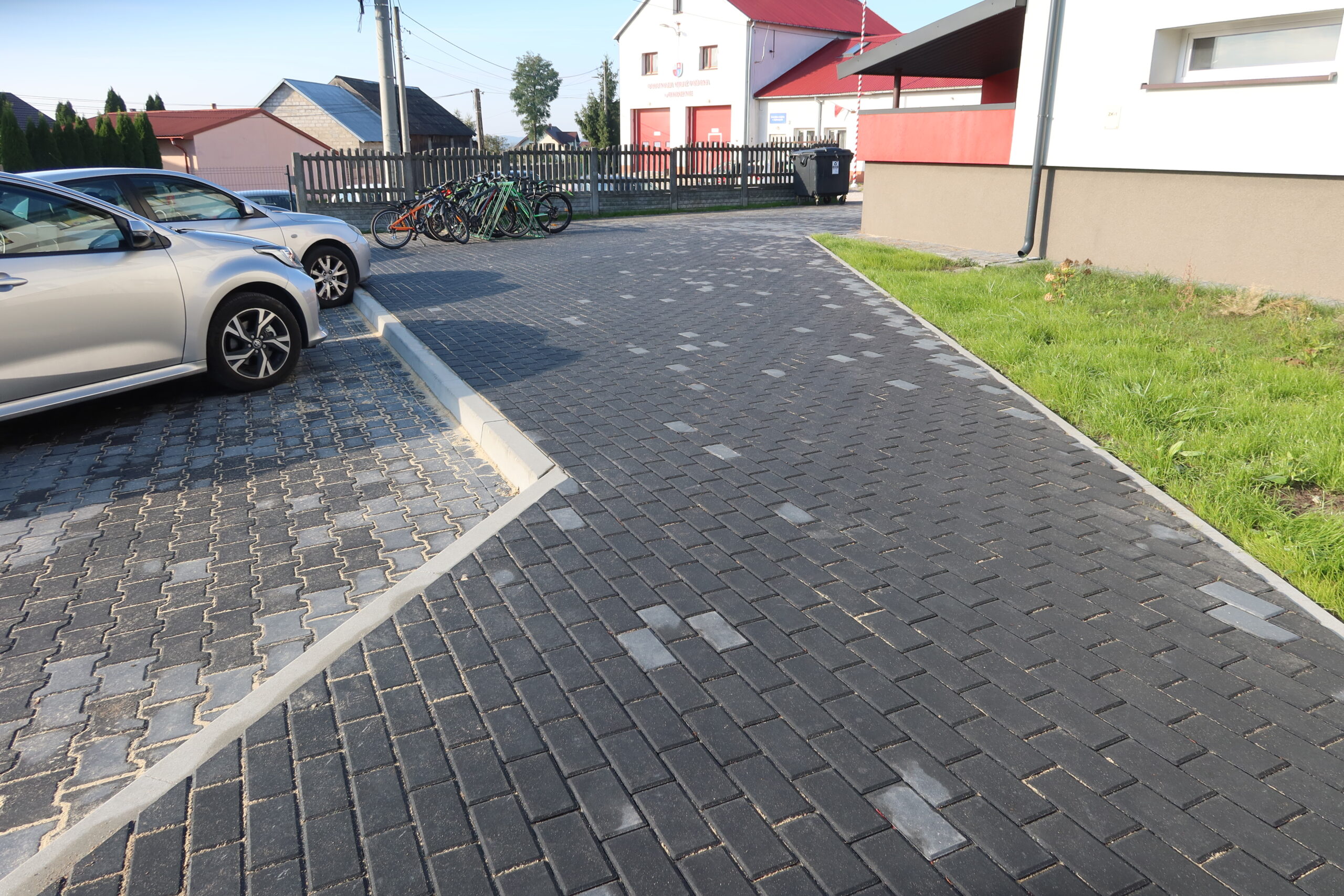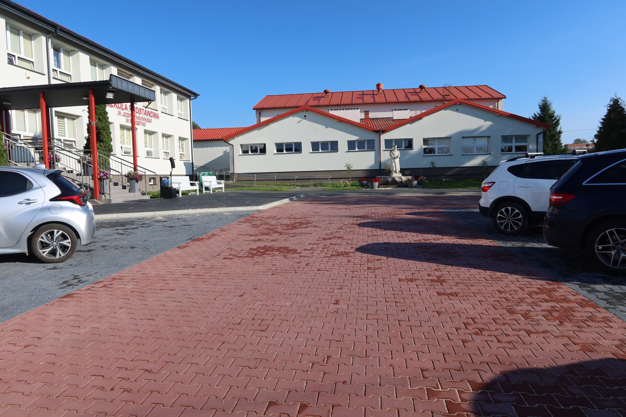Budowa parkingu przebiegała sprawnie. Wykonano wykopy i podbudowę z piasku stabilizowanego cementem oraz kruszywa, a następnie ułożono nawierzchnię z kolorowej kostki w odcieniach szarości, czerwieni i grafitu. Zadbano także o obrzeża i krawężniki betonowe. Teren wokół został uporządkowany i obsiany trawą.