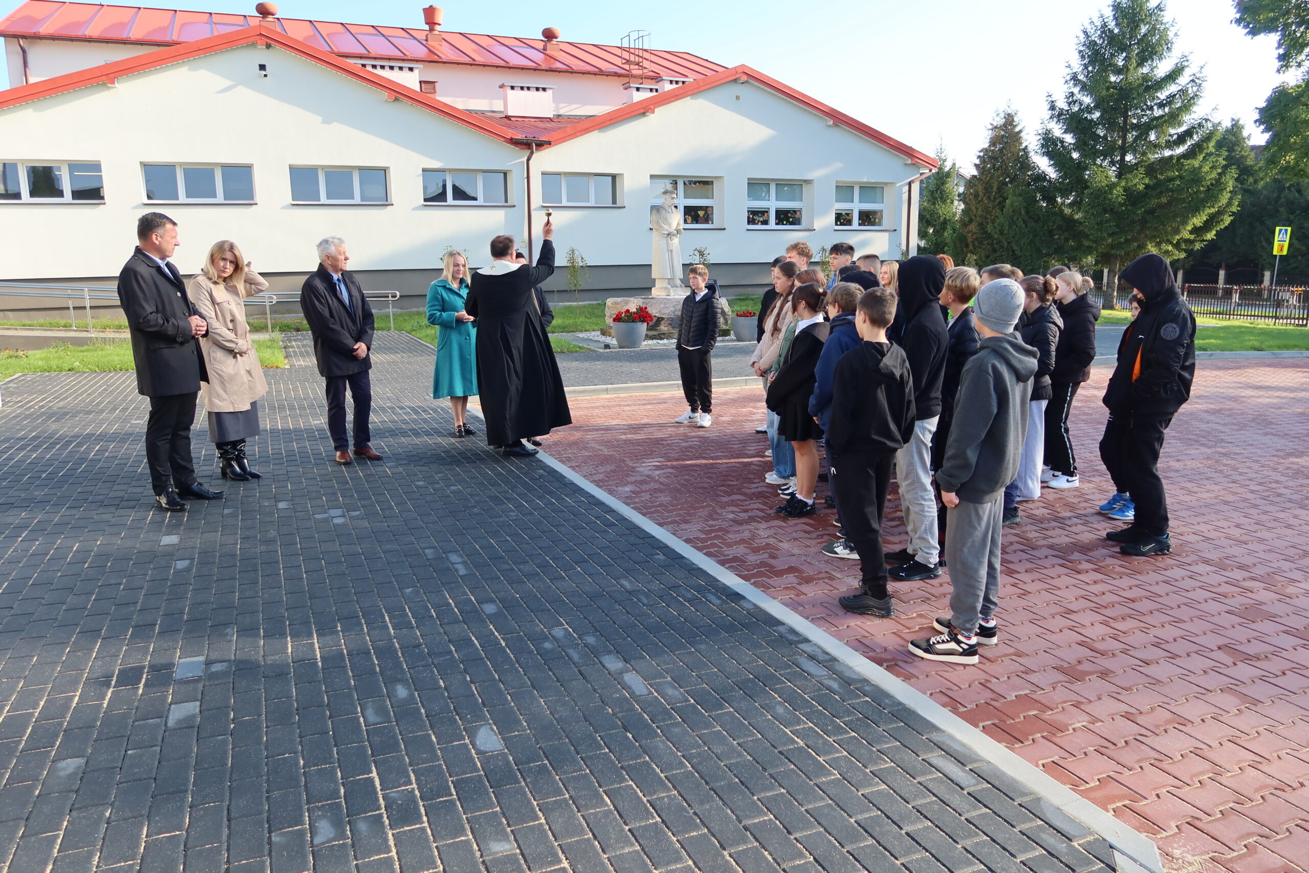 Nowy parking o wartości ponad 285 tysięcy złotych, w całości sfinansowany ze środków własnych gminy Piekoszów, poprawił nie tylko estetykę otoczenia szkoły, ale przede wszystkim bezpieczeństwo dzieci, rodziców i nauczycieli. Nowa przestrzeń została zaprojektowana tak, aby uporządkować ruch wokół szkoły i ułatwić codzienne funkcjonowanie. Wjazd odbywa się teraz na zasadzie ronda, powstały wygodne miejsca parkingowe, a całość wyłożono kolorową kostką brukową. Dzięki temu poranny i popołudniowy ruch stał się płynniejszy, a dzieci mogą bezpiecznie wysiadać i wchodzić na chodnik bez obaw o jadące samochody. – Wiele osób z Urzędu Miasta i Gminy w Piekoszowie pracowało nad tym, żeby inwestycja została zakończona jeszcze przed końcem roku. Bardzo dziękuję im za zaangażowanie i dziękuję radnym za zrozumienie potrzeb i przeznaczenie środków na realizację tego zadania. Ogromnie zależało mi na tym, aby parking powstał, bo dotąd panował tu chaos, a rodzicom trudno było podjechać pod szkołę. Dziś mamy nowoczesny układ z wjazdem na zasadzie ronda i bezpiecznymi miejscami parkingowymi. To inwestycja, która znacząco poprawiła bezpieczeństwo i komfort całej społeczności szkolnej – podkreśliła burmistrz miasta i gminy Piekoszów Teresa Jakubowska podczas symbolicznego oddania inwestycji do użytku.