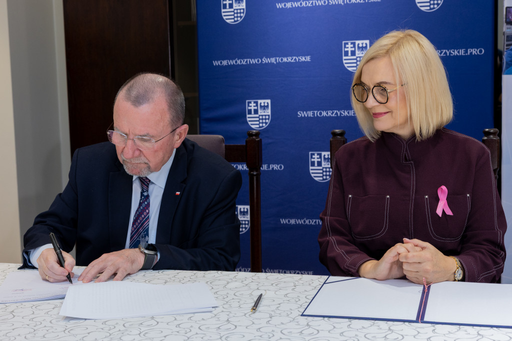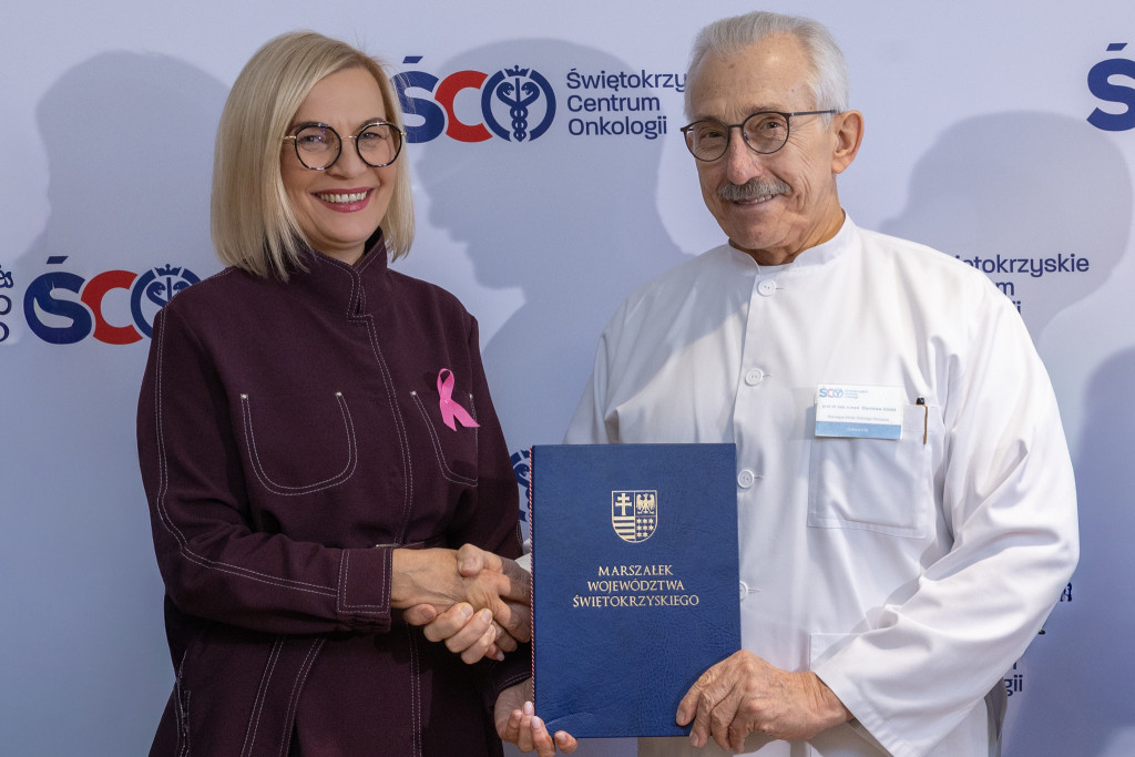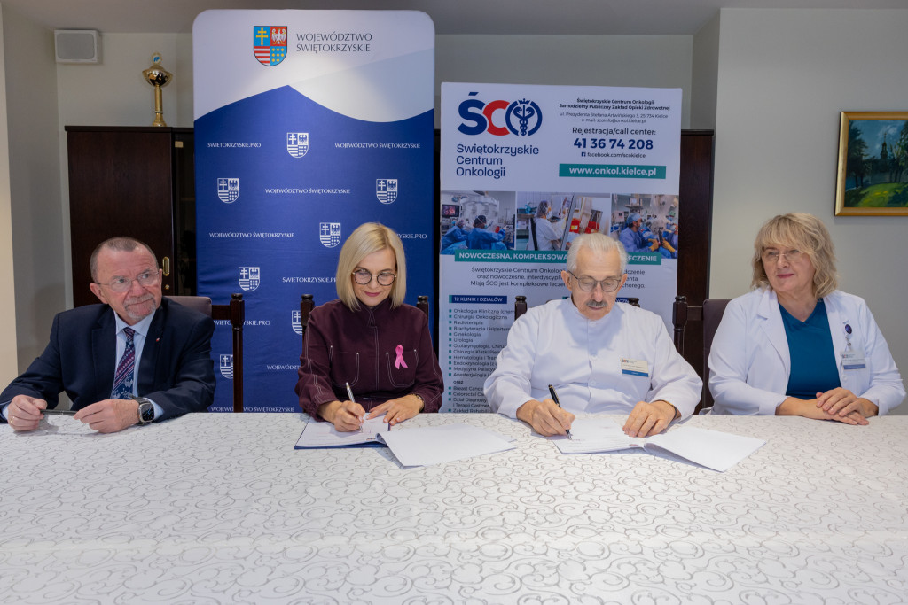 Marszałek Renata Janik oraz wicemarszałek Marek Bogusławski podpisali umowę z dyrektorem Świętokrzyskiego Centrum Onkologii prof. Stanisławem Góździem na dofinansowanie z budżetu województwa zakupu nowego rezonansu magnetycznego i adaptacji pomieszczeń pracowni diagnostycznej w placówce medycznej. Samorząd Województwa przeznaczył na ten cel ok. 8,7 mln zł.
