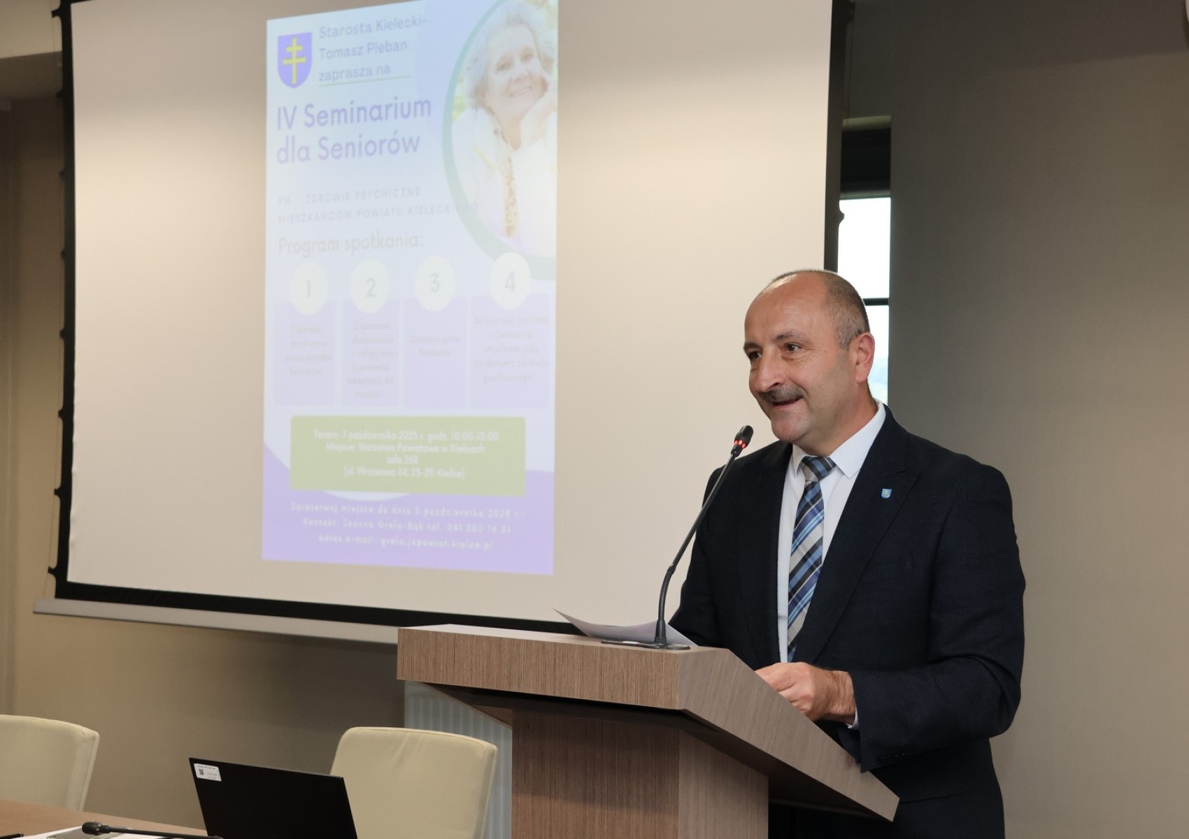Seminarium otworzył członek Zarządu Powiatu w Kielcach Mariusz Ściana, który podkreślił nieocenioną rolę Seniorów w życiu społecznym i rodzinnym. Zachęcał również do dbania o swoje zdrowie, także to emocjonalne i psychiczne.