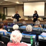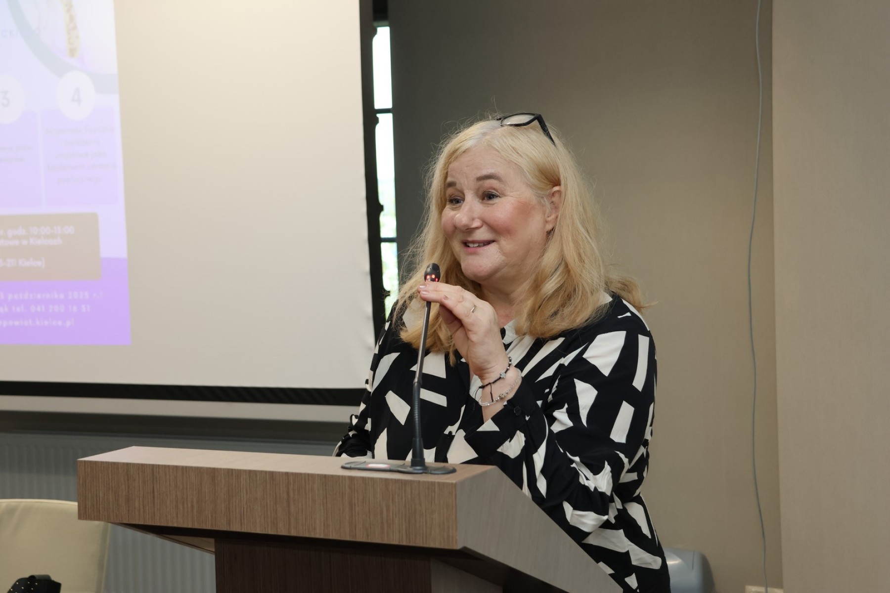 O zdrowiu psychicznym i emocjonalnym seniorów oraz roli wsparcia psychologicznego i terapii w poprawie jakości życia osób w wieku 60+ opowiadała Lidia Świeboda-Toborek, psycholog z Powiatowego Centrum Pomocy Rodzinie w Kielcach. O ochronnie praw seniorów, wyzwaniach i działaniach instytucji w zakresie zabezpieczenia interesów osób starszych mówiła mł. asp. Emilia Kucharczyk oraz sierż. Kalina Figacz z Komendy Miejskiej w Kielcach. O aktywności fizycznej i ćwiczeniach umysłowych jako fundamencie zdrowia psychicznego seniorów oraz inicjatywach i programach wspierające starszych mieszkańców Powiatu Kieleckiego opowiadała Renata Fert, prezes Stowarzyszenia „Aktywny Ćmińsk”.