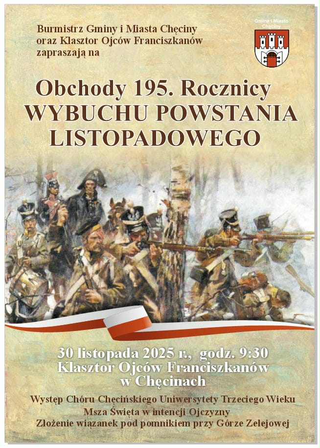 Strona głównaKulturaObchody 195. rocznicy wybuchu powstania listopadowego Kultura Obchody 195. rocznicy wybuchu powstania listopadowego CKinfo.pl 25 listopada 2025 FacebookTwitterWhatsAppTelegram Zobacz CKinfo.pl - 22 listopada 2025XV Międzynarodowy Dzień Tabliczki Mnożenia CKinfo.pl - 21 listopada 2025Gala podsumowująca pierwszy rok Świętokrzyskiej Drużyny Kolarskiej i 52-lecie Cyclo Korony Kielce CKinfo.pl - 20 listopada 2025Puchar Polski w Cheerleadingu Sportowym w Chęcinach CKinfo.pl - 19 listopada 2025Z obrad komisji Sejmiku Województwa CKinfo.pl - 19 listopada 2025Nabór wniosków na zadania z zakresu rehabilitacji zawodowej ze środków PFRON CKinfo.pl - 19 listopada 2025Uroczyste wprowadzenie nowego proboszcza w parafii w Starochęcinach CKinfo.pl - 20 listopada 2025Dzieciństwo bez przemocy – finał kampanii GminaGmina ChęcinyŹRÓDŁOGmina i Miasto Checiny TagihistoriakulturaObchodyPolskapowstanie listopadowerocznicatradycjawydarzenia Udział FacebookTwitterWhatsAppTelegram Poprzedni artykułMłody talent z Daleszyc, rzuca wyzwanie gigantom!Następny artykułDzisiejszej nocy może wystąpić gołoledź Aktualności SportCKinfo.pl - 25 listopada 2025Klub Karate Morawica i Piekoszów rywalizował na Klubowym Pucharze Europy w KielcachW sobotę, 22 listopada br. w Hali Legionów w Kielcach odbył się Klubowy Puchar Europy w karate. Do rywalizacji w konkurencji „kumite” przystąpiło... Sport MAD DANCE CHAMPIONS LEAGUE 2025 – taneczne emocje w Bilczy! CKinfo.pl - 25 listopada 2025 Sport Prestiżowe zawody karate w Kielcach CKinfo.pl - 25 listopada 2025 Aktualności Obradowała komisja bezpieczeństwa CKinfo.pl - 25 listopada 2025 Aktualności „Uroczysko Tumlińskie”- nowy rezerwat przyrody CKinfo.pl - 25 listopada 2025 Polecamy Cecyliada Miasta i Gminy Morawica Kultura CKinfo.pl - 25 listopada 2025 Orkiestra Dęta z Piekoszowa ma już 140 lat! Kultura CKinfo.pl - 24 listopada 2025 Kobiety z pasją – siła, odwaga i bezpieczeństwo Kultura CKinfo.pl - 24 listopada 2025 Pół Wieku Razem – Uroczyste Święto Złotych Godów w Gminie Raków Kultura CKinfo.pl - 24 listopada 2025