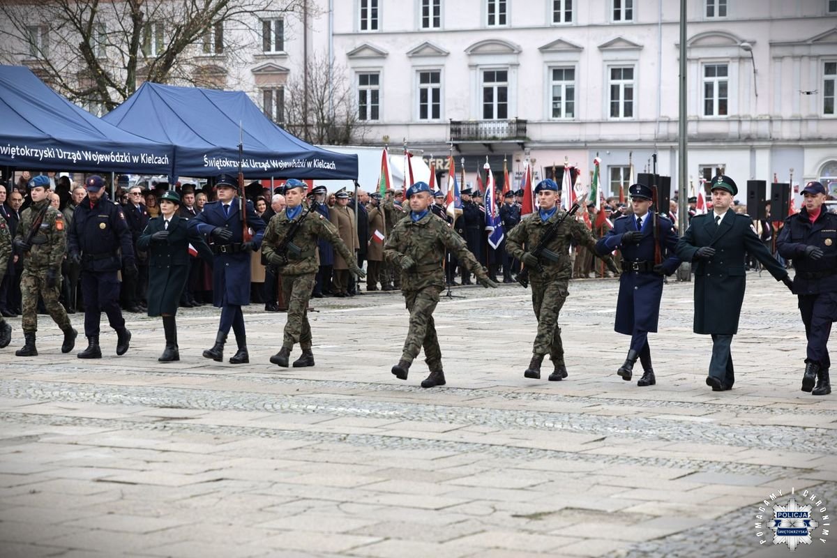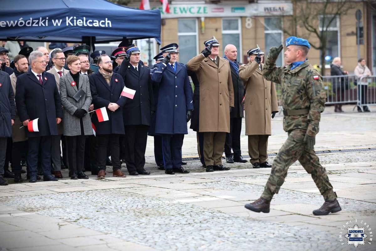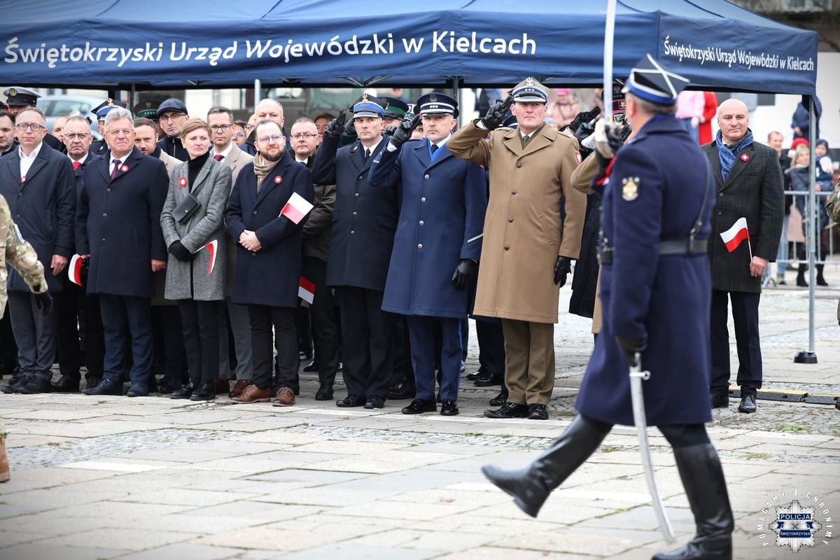 W obchodach udział wzięli insp. Zbigniew Nowak, Komendant Wojewódzki Policji w Kielcach oraz insp. Wojciech Król Komendant Miejski Policji w Kielcach. Komendanci, wchodząc w skład delegacji służb podległych Ministrowi Spraw Wewnętrznych i Administracji, złożyli pod pomnikiem Marszałka Józefa Piłsudskiego kwiaty, oddając hołd bohaterom walk o niepodległość. Uroczystości godnie towarzyszył poczet sztandarowy Komendy Wojewódzkiej Policji.