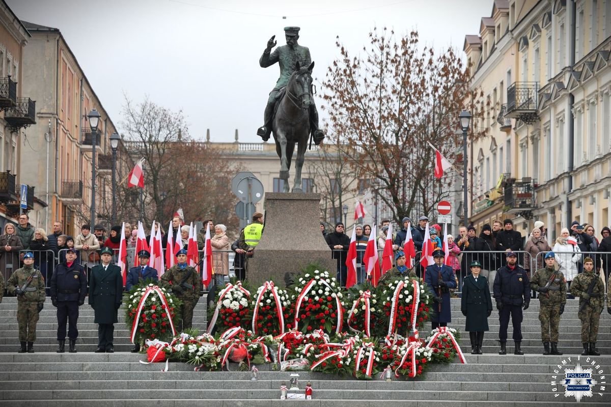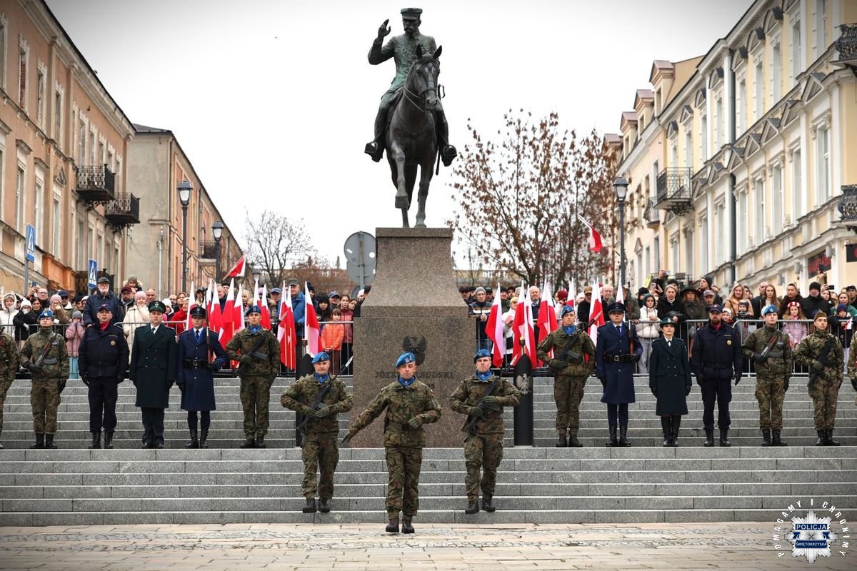 W dniu 11 listopada 2025 roku Kielce stały się miejscem wyjątkowego świętowania Narodowego Święta Niepodległości, upamiętniającego 107. rocznicę odzyskania przez Polskę wolności po 123 latach zaborów. Uroczystości odbyły się w kilku miejscach, a rozpoczęły się mszą świętą w intencji Ojczyzny w Bazylice Katedralnej, po której uczestnicy przemaszerowali ulicami Kielc, na Plac Niepodległości, gdzie pod pomnikiem Marszałka Józefa Piłsudskiego złożono wieńce. W wydarzeniach udział wzięli m.in. Wojewoda Świętokrzyski, Marszałek Województwa Świętokrzyskiego, Komendant Wojewódzki Policji w Kielcach insp. Zbigniew Nowak, Komendant Miejski Policji w Kielcach insp. Wojciech Król, a także poczet sztandarowy Komendy Wojewódzkiej Policji w Kielcach.