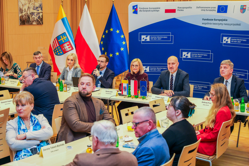 W siedzibie Filharmonii Świętokrzyskiej w Kielcach odbyło się XIII posiedzenie Komitetu Monitorującego program regionalny Fundusze Europejskie dla Świętokrzyskiego 2021-2027 pod przewodnictwem marszałka województwa świętokrzyskiego Renaty Janik i z udziałem wicemarszałka Grzegorza Sochy i członka Zarządu Andrzeja Prusia. Obecni byli także przedstawiciele Komisji Europejskiej Maja Fojud i Wojciech Włodarczyk, Barbara Jędras główny specjalista z Departamentu Programów Regionalnych Ministerstwa Funduszy i Polityki Regionalnej oraz: Katarzyna Kubicka dyrektor Departamentu Wdrażania Europejskiego Funduszu Społecznego Urzędu Marszałkowskiego i zastępca dyrektora Artur Potaczała, dyrektor Departamentu Rozwoju Regionalnego Tomasz Janusz i zastępca Anna Kucharczyk oraz Przemysław Janiszewski dyrektor Departamentu Wdrażania Europejskiego Funduszu Rozwoju Regionalnego i zastępca Hubert Zieja. Członkowie Komitetu zapoznali się ze stanem wdrażania programu, podjęli również decyzje w sprawach kryteriów wyboru projektów w poszczególnych działaniach.