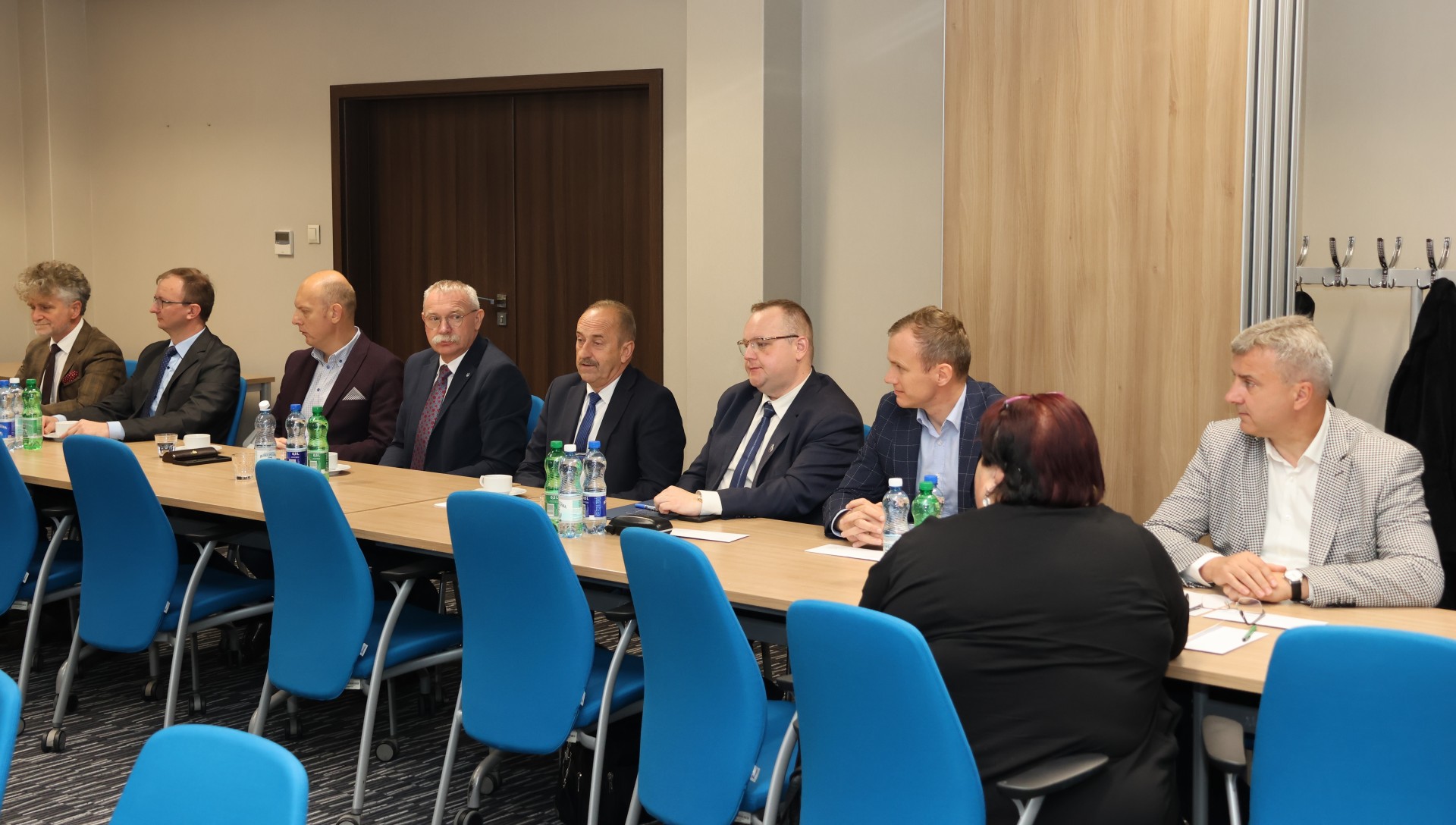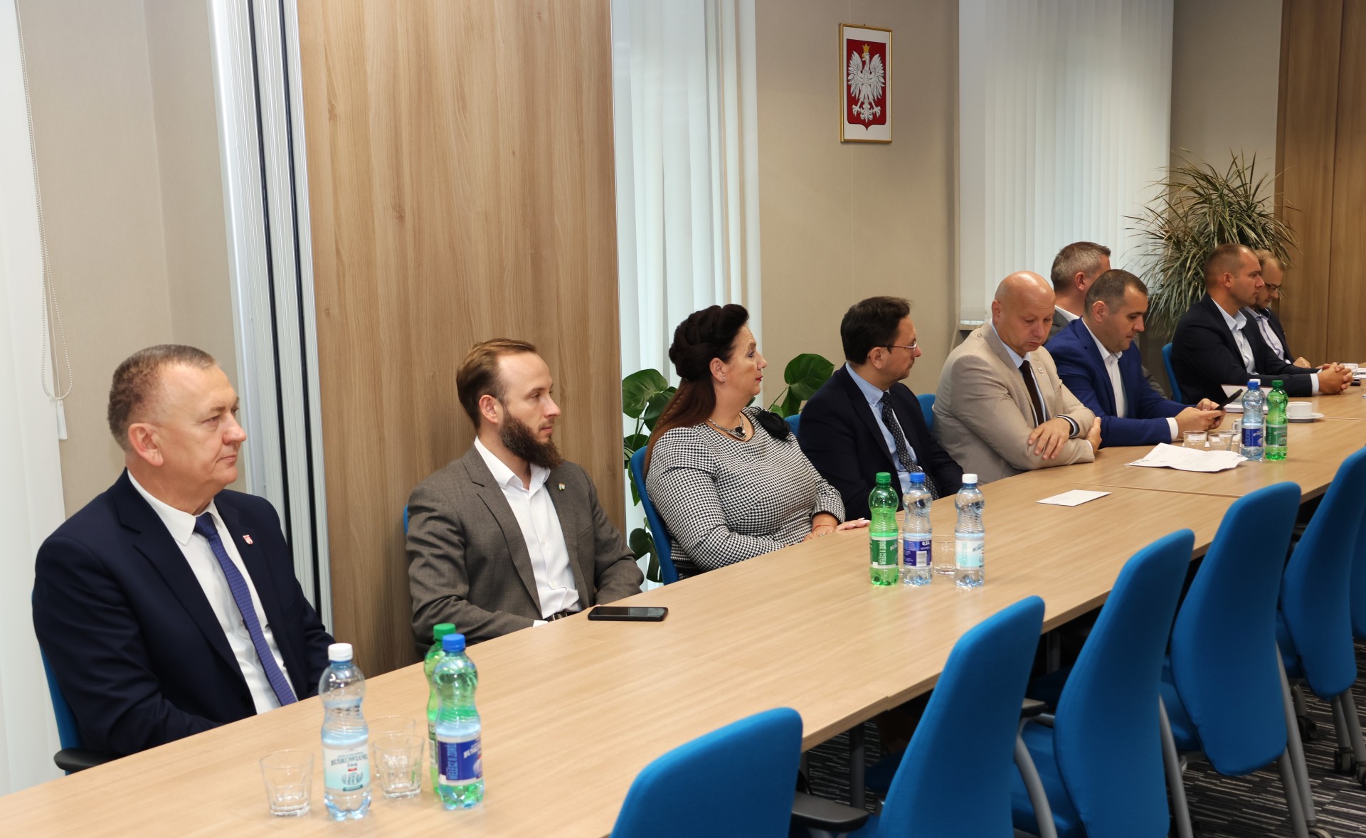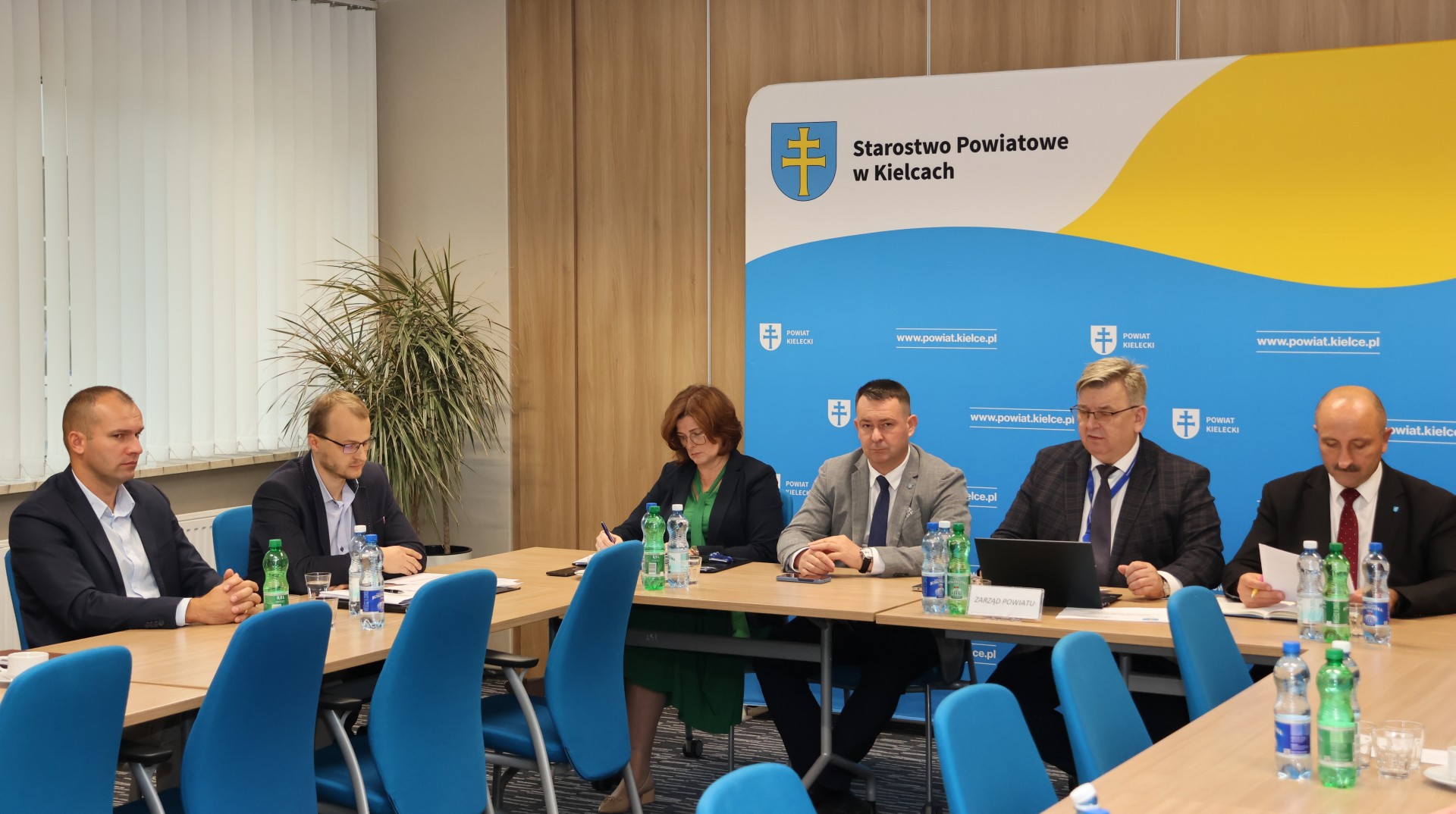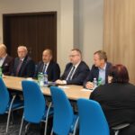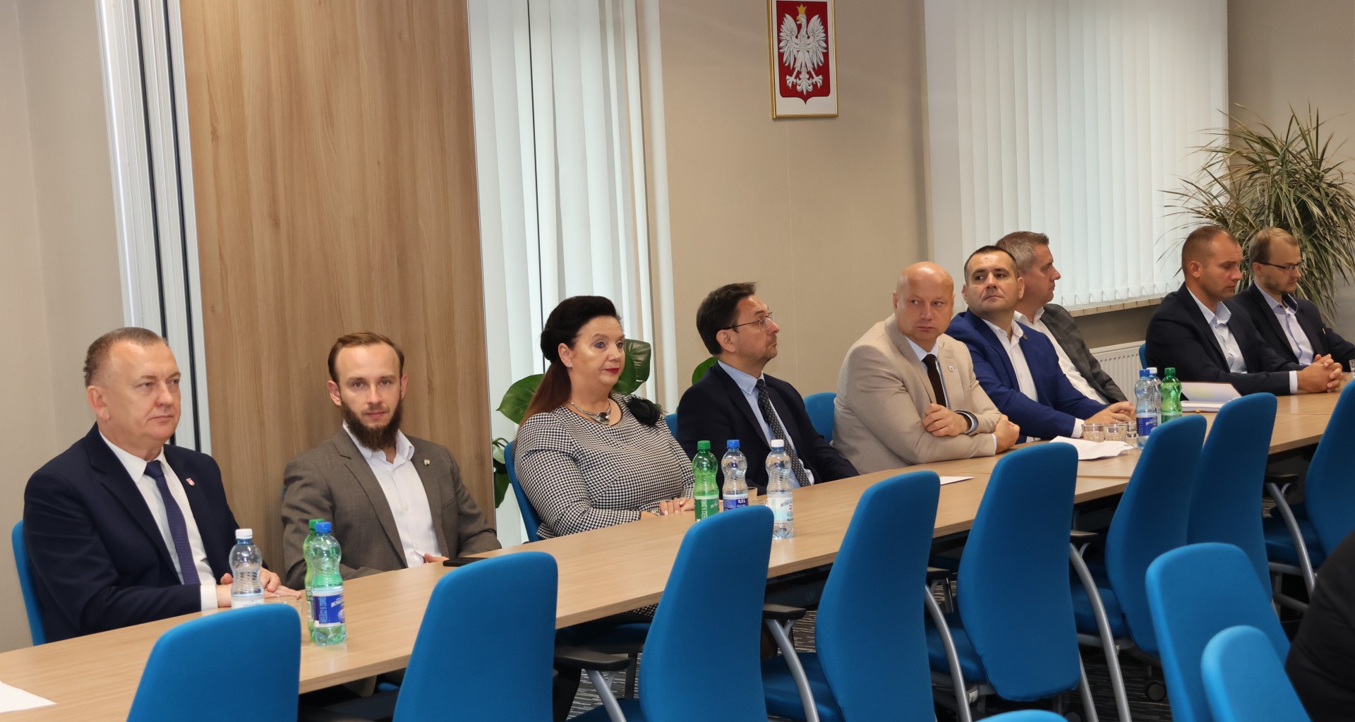 Włodarze miast i gmin spotkali się ze starostą Tomaszem Plebanem i członkami Zarządu Powiatu: Cezarym Majchrem i Mariuszem Ścianą. W spotkaniu uczestniczyli również: senator Krzysztof Słoń, Skarbnik Powiatu Edyta Drążkiewicz oraz dyrektorzy jednostek powiatu i kilku wydziałów starostwa.