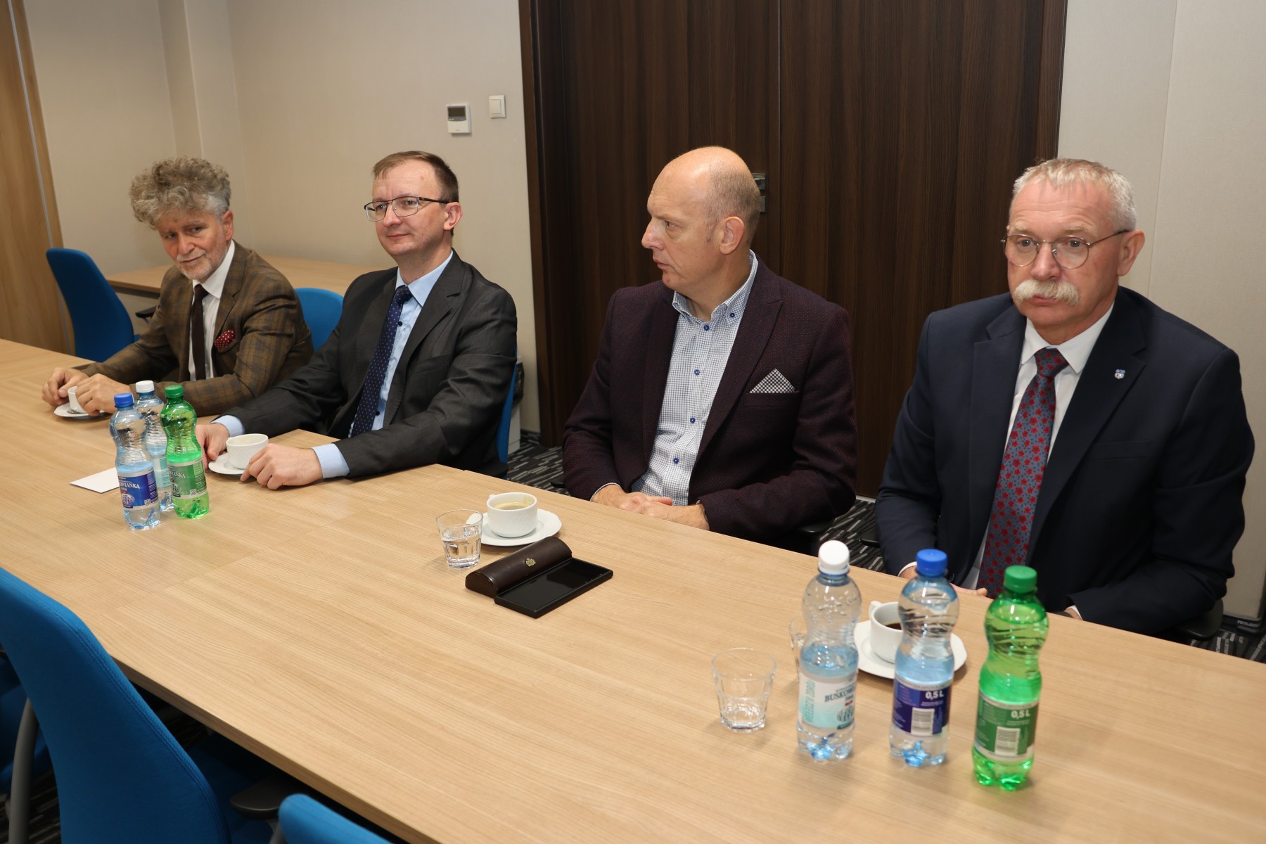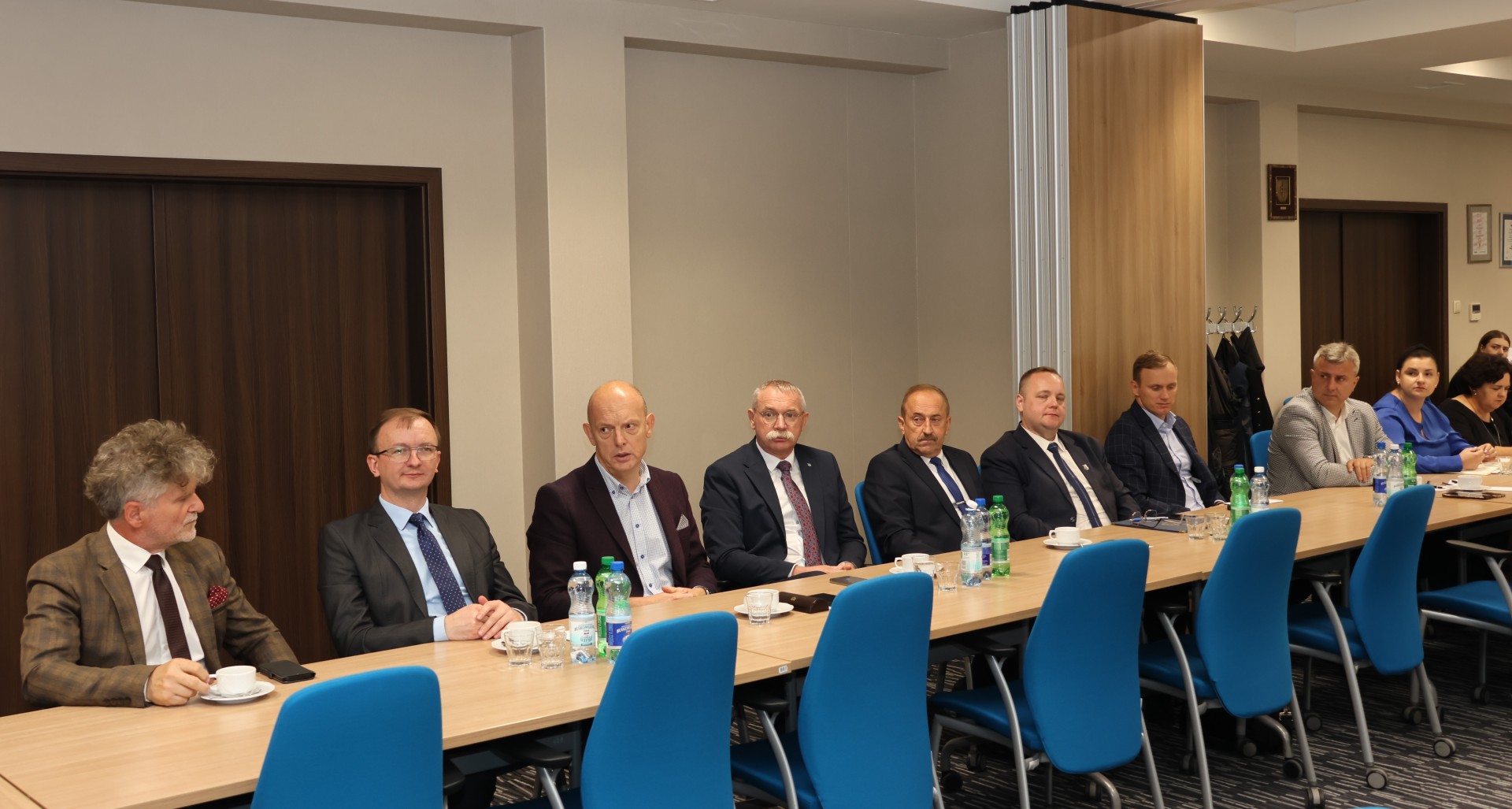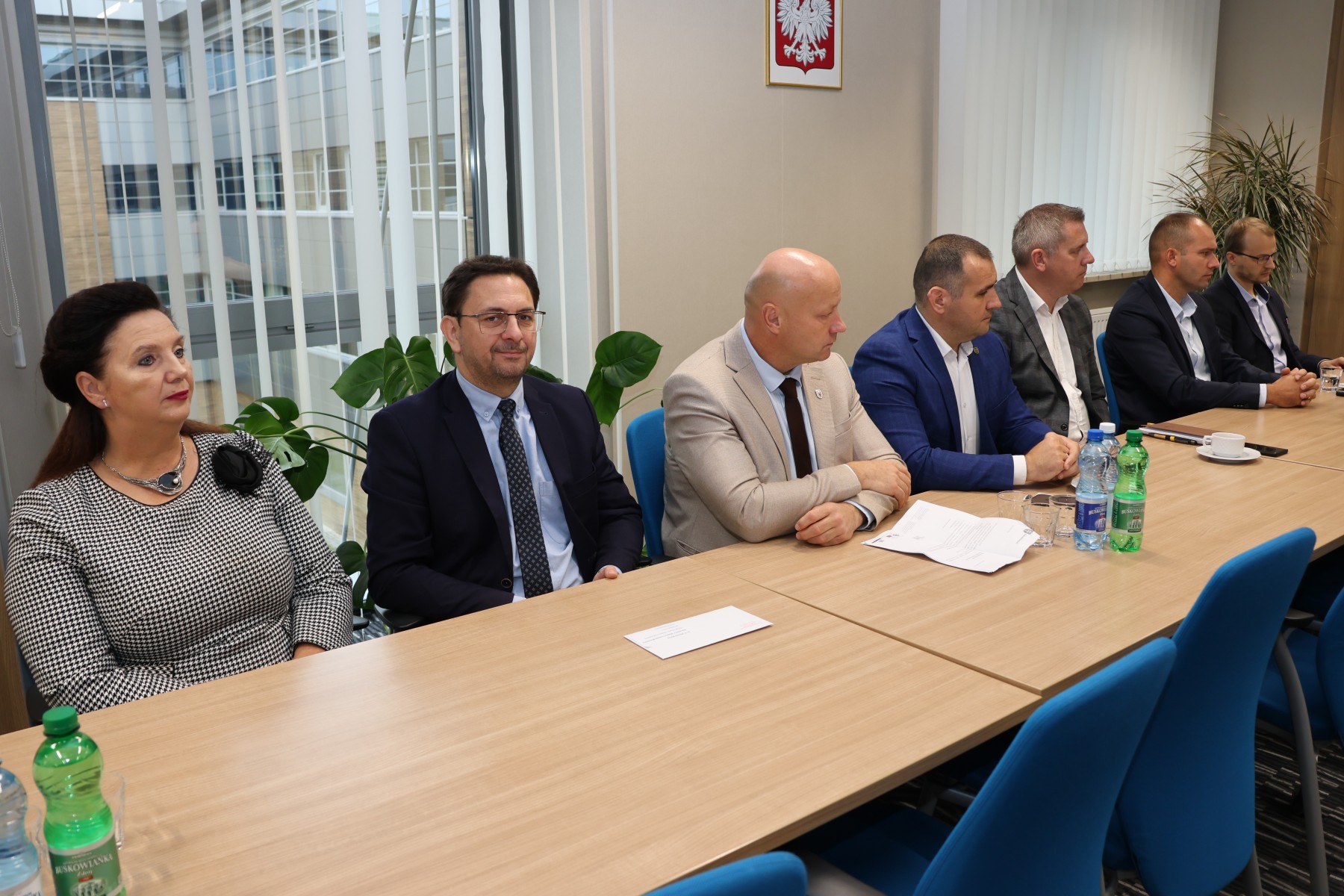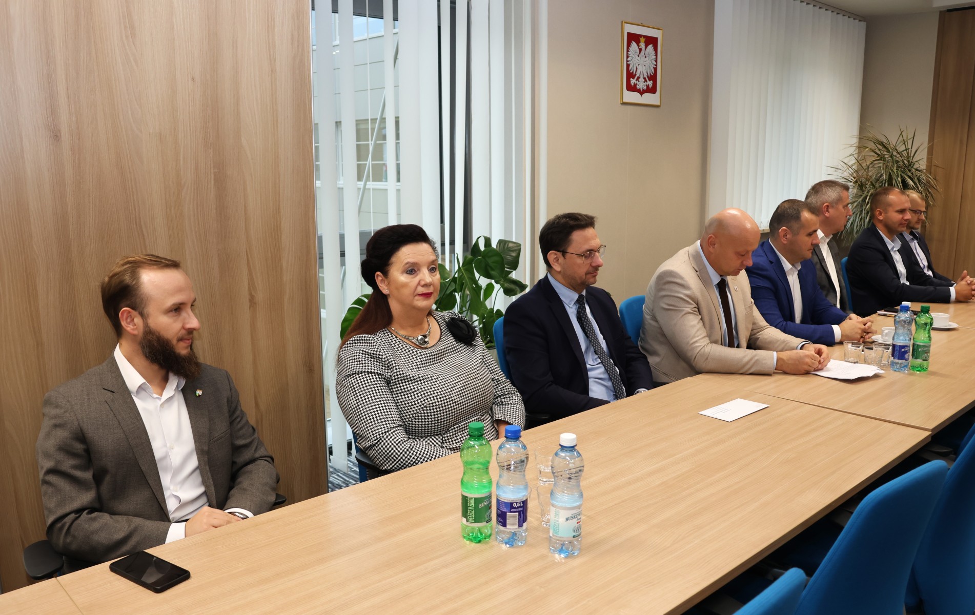 Włodarze miast i gmin spotkali się ze starostą Tomaszem Plebanem i członkami Zarządu Powiatu: Cezarym Majchrem i Mariuszem Ścianą. W spotkaniu uczestniczyli również: senator Krzysztof Słoń, Skarbnik Powiatu Edyta Drążkiewicz oraz dyrektorzy jednostek powiatu i kilku wydziałów starostwa.