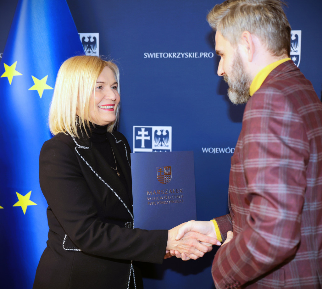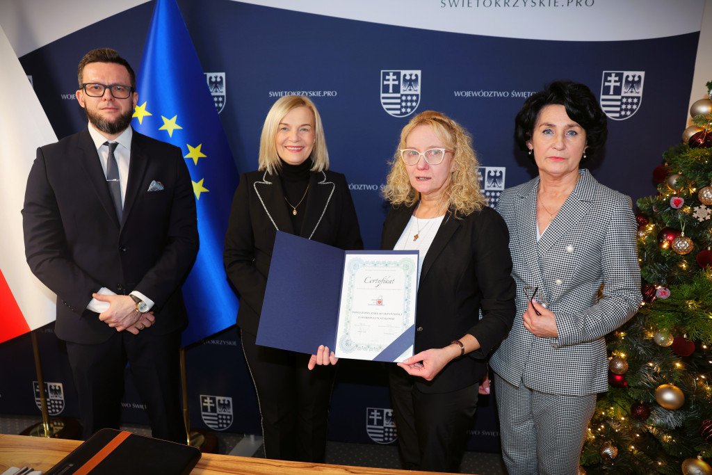 Pod przewodnictwem marszałek Renaty Janik odbyło się świąteczne posiedzenie Regionalnego Komitetu Rozwoju Ekonomii Społecznej Województwa Świętokrzyskiego na lata 2023-2026. Podczas spotkania przedstawiciele Powiatowego Zakładu Aktywności Zawodowej w Stykowie, Caritas Diecezji Kieleckiej – Zakładu Aktywności Zawodowej w Kielcach oraz Fundacji Pomocna Dłoń w Ostrowcu Świętokrzyskim otrzymali Certyfikaty „Zakup Prospołeczny”. Omówiono sytuację sektora ekonomii społecznej w 2025 roku w regionie, a także wybrano przedstawiciela Komitetu – Marcina Jedlińskiego do Wojewódzkiej Rady Rynku Pracy na kadencję 2026-2030. W posiedzeniu uczestniczyli dyrektor Regionalnego Ośrodka Polityki Społecznej Elżbieta Korus oraz jej zastępca Arkadiusz Ślipikowski.