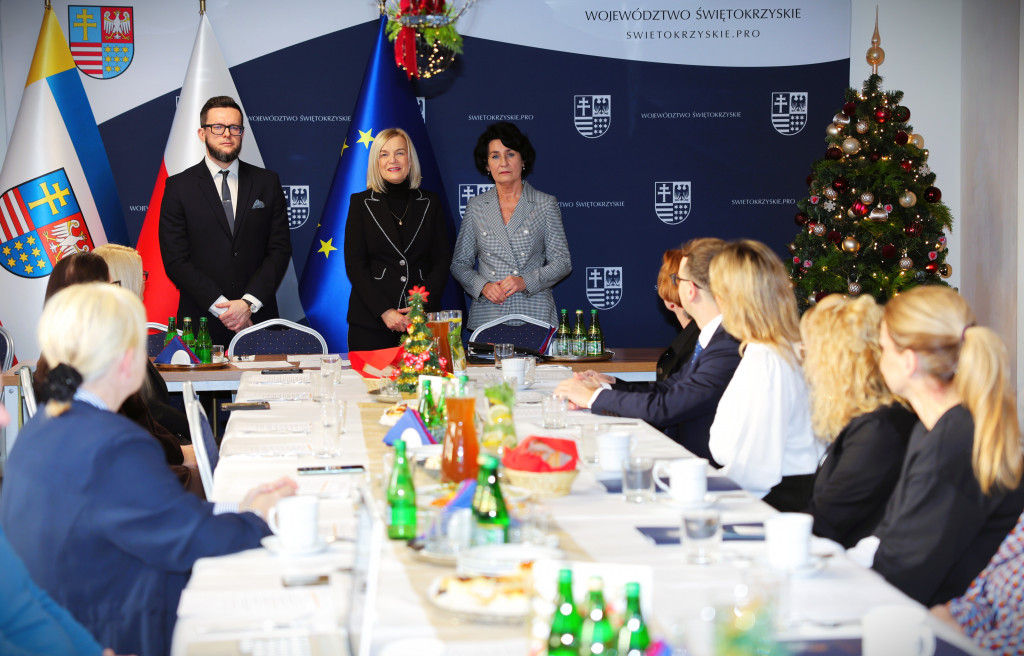 W siedzibie Urzędu Marszałkowskiego Województwa Świętokrzyskiego w Kielcach odbyło się szóste posiedzenie Regionalnego Komitetu Rozwoju Ekonomii Społecznej Województwa Świętokrzyskiego na lata 2023-2026. Obradom przewodniczyła marszałek Renata Janik, która złożyła członkom Komitetu świąteczno-noworoczne życzenia oraz podziękowała za współpracę w mijającym roku oraz wkład w rozwój ekonomii społecznej w regionie.