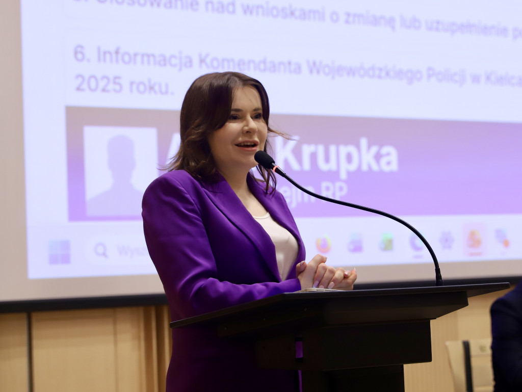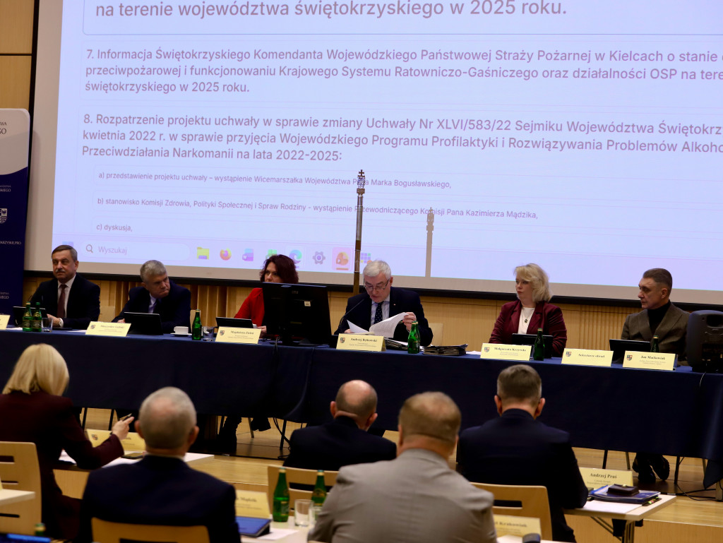 Radni Sejmiku wysłuchali Informacji Komendanta Wojewódzkiego Policji w Kielcach nt. stanu bezpieczeństwa na terenie województwa świętokrzyskiego w 2025 roku, przedstawionej przez insp. Tomasza Jarosza zastępcę Komendanta Wojewódzkiego Policji, oraz Informacji Świętokrzyskiego Komendanta Wojewódzkiego Państwowej Straży Pożarnej w Kielcach o stanie ochrony przeciwpożarowej i funkcjonowaniu Krajowego Systemu Ratowniczo-Gaśniczego oraz działalności OSP na terenie województwa świętokrzyskiego w 2025 roku, przedstawionej przez bryg. Michała Jankowskiego, zastępcę Świętokrzyskiego Komendanta Wojewódzkiego PSP.