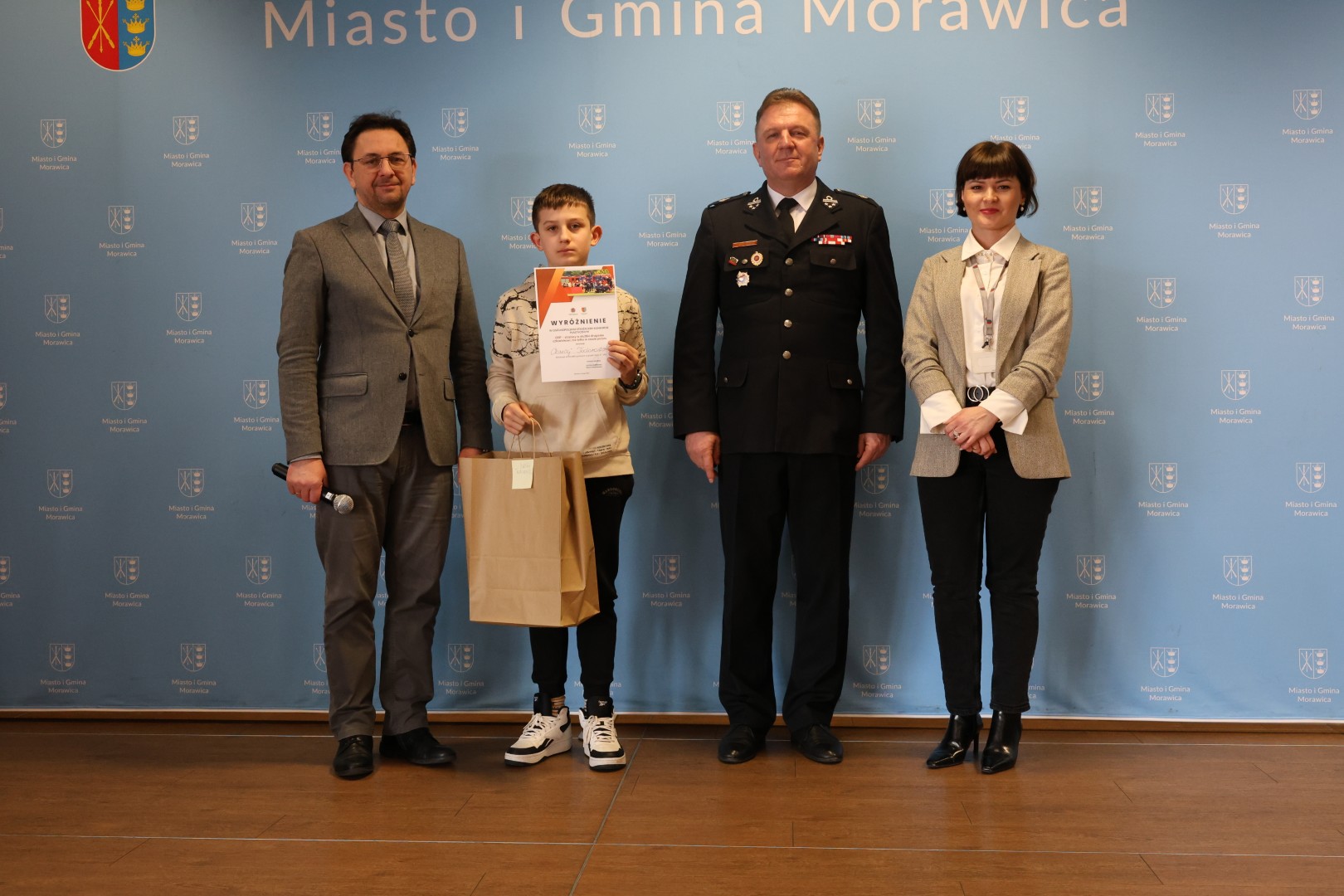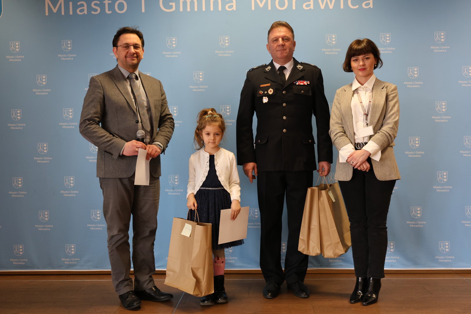 Wręczenia dokonał Zastępca Burmistrza Marcin Dziewięcki wraz z Komendantem Miejsko-Gminnego Związku Ochotniczych Straży Pożarnych RP w Morawicy Jerzym Rożkiewiczem.
