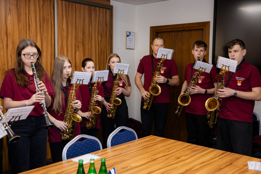 W spotkaniu uczestniczył również kapelmistrz orkiestry, Piotr Ziółkowski, który od początku prowadzi zespół i odpowiada za jego artystyczny rozwój. Spotkanie miało także wyjątkową oprawę muzyczną- muzycy orkiestry uświetnili je pięknym występem, podkreślając uroczysty i noworoczny charakter wizyty. Rozmowy dotyczyły znaczenia kultury lokalnej, roli młodych inicjatyw muzycznych oraz dalszych planów współpracy.