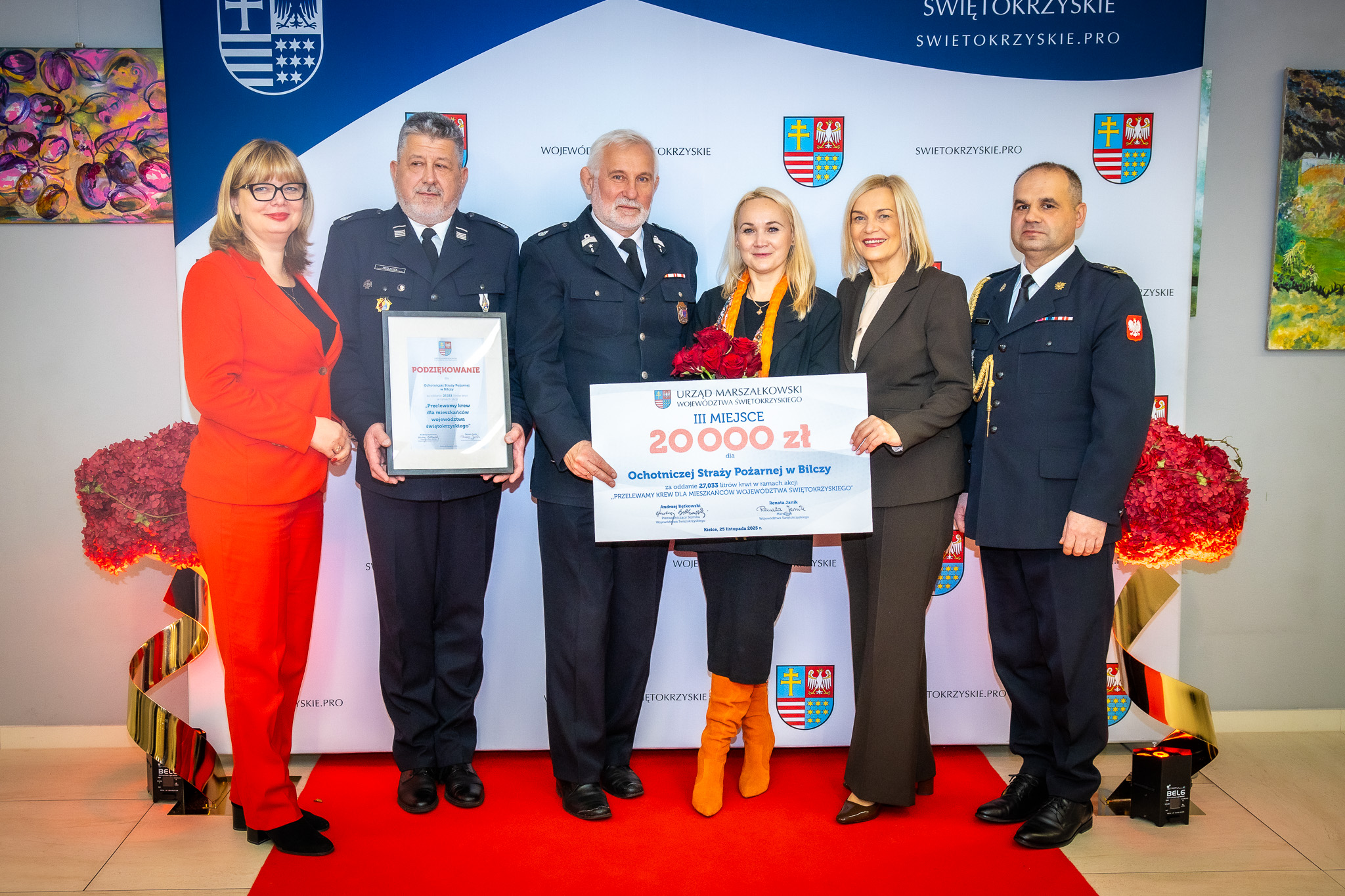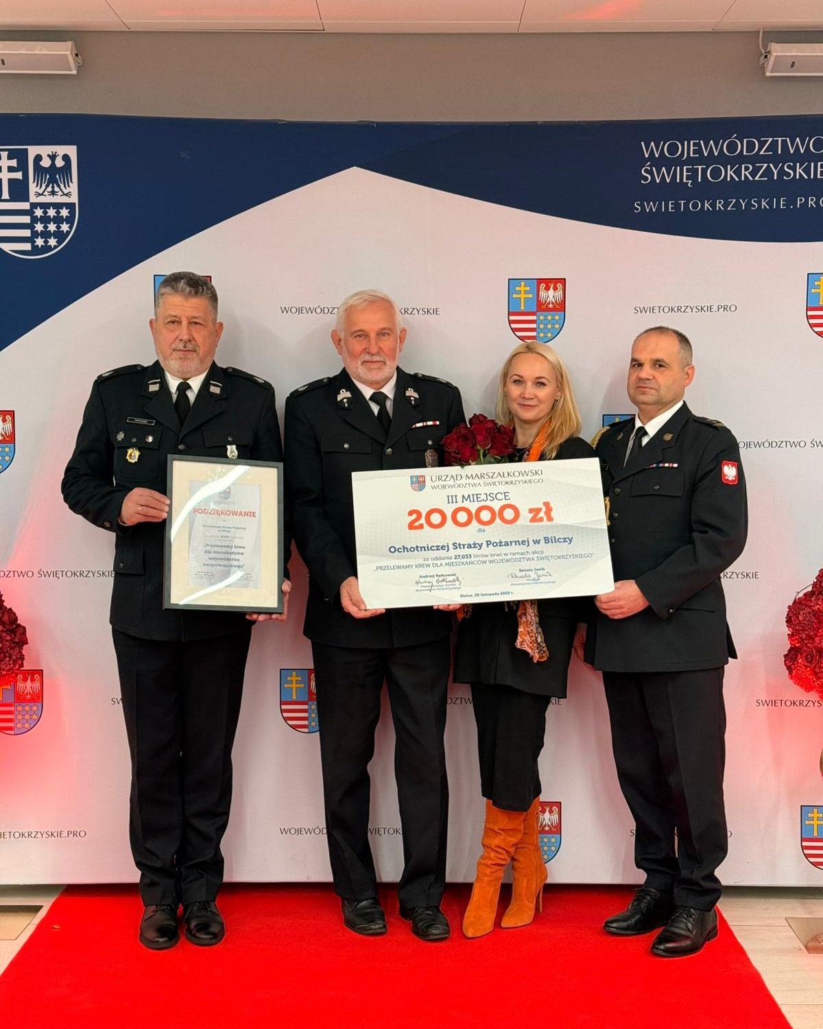 We wtorek, 25 listopada w Wojewódzkim Domu Kultury w Kielcach odbyło się rozstrzygnięcie konkursu „Przelewamy krew dla mieszkańców województwa świętokrzyskiego” zorganizowanego przez Urząd Marszałkowski Województwa Świętokrzyskiego z inicjatywy Marszałek Renaty Janik. Do akcji włączyła się jednostka Ochotniczej Straży Pożarnej z Bilczy, która zajęła 3 miejsce. Strażacy zebrali ponad 27 litrów krwi.
