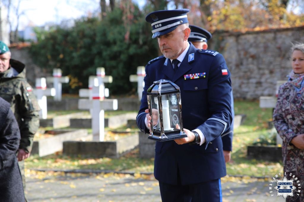 Dzisiaj nasza delegacja z Komendantem Wojewódzkim Policji w Kielcach insp. Zbigniewem Nowakiem na czele, uczciła pamięć poległych w służbie kolegów, zapalając na ich grobach symboliczny znicz.