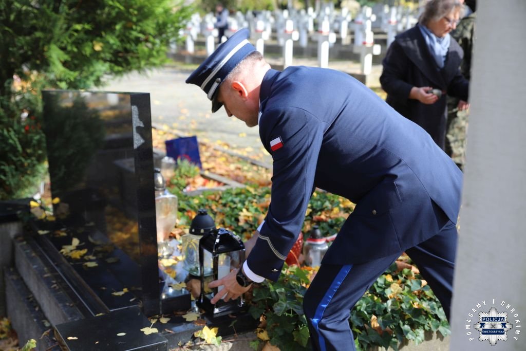 Święto, w którym wspominamy zmarłych, to czas wzmożonej pracy policjantów, związany przede wszystkim z zapewnieniem bezpieczeństwa wszystkich udających się na groby bliskich. Mimo to staramy się znaleźć choć chwilę na to, by odwiedzić groby i w zadumie wspomnieć naszych kolegów, którzy odeszli zbyt wcześnie, bo jeszcze w trakcie aktywnej służby w szeregach Policji.