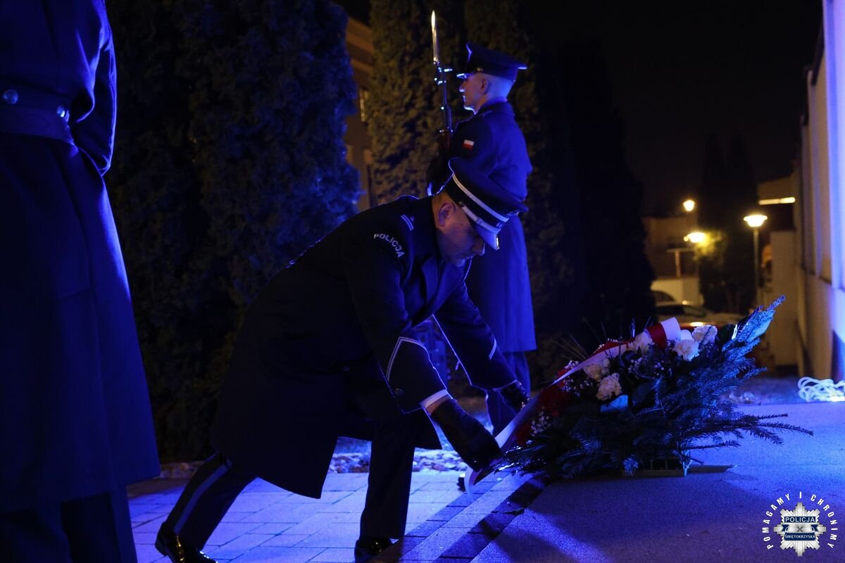 W uroczystości zorganizowanej pod tablicą upamiętniającą poległych policjantów udział wzięli: Komendant Wojewódzki Policji w Kielcach insp. Jacek Cholewa, Prezes Świętokrzyskiego Stowarzyszenia „Rodzina Policyjna 1939” Grażyna Szkonter oraz przedstawiciele policyjnych związków zawodowych, Wiceprzewodniczący ZW NSZZ Policjantów woj. świętokrzyskiego Andrzej Ścibisz i Mariusza Walczyk oraz przewodniczący Policyjnej „Solidarności” Mateusz Jaskulski. Wspólnie oddali hołd funkcjonariuszom, którzy wypełniając rotę ślubowania, zginęli w służbie społeczeństwu.