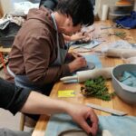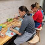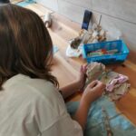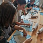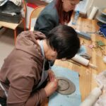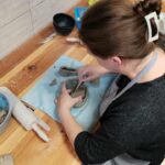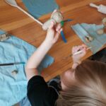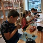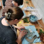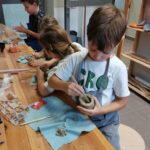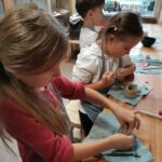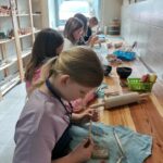 Podczas zajęć ceramicznych dzieci zapoznały się z wyposażeniem pracowni, narzędziami do ceramiki oraz zasadami pracy z gliną. Wykonywały swoje pierwsze w tym roku prace, tworząc figurki zwierząt — kotki, pieski, osiołki, motylki — a także miseczki i kubeczki. Dorośli uczestnicy poznali podstawowe techniki formowania ręcznego. Odbijali na glinie gałązki, liście, kwiaty i inne rośliny, ozdabiając w ten sposób własnoręcznie wykonane mydelniczki.