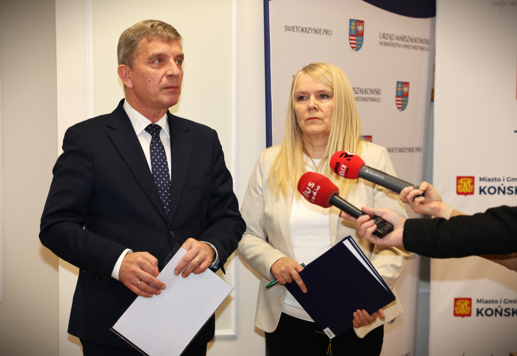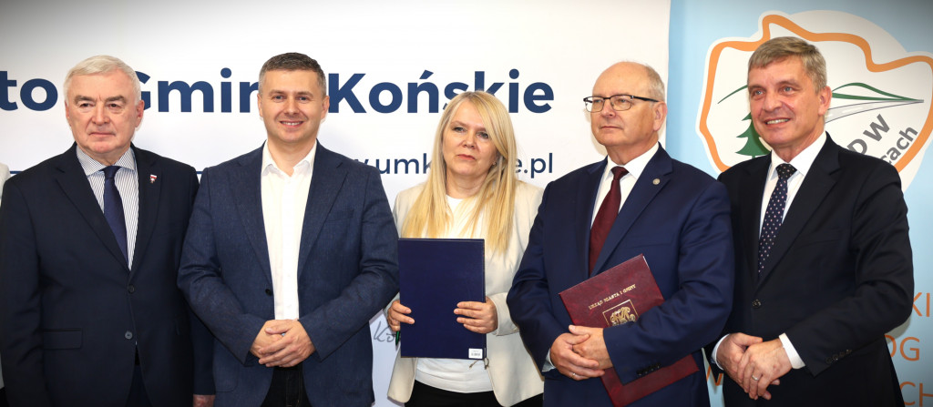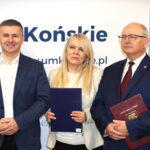 Andrzej Pruś członek Zarządu Województwa i przewodniczący Sejmiku Województwa Świętokrzyskiego Andrzej Bętkowski oraz radny Sejmiku Marcin Piętak uczestniczyli dzisiaj w podpisaniu umowy na budowę dwukilometrowego odcinka północnej obwodnicy Końskich. Prace budowlane prowadzić będzie kielecka firma SALTOR. Umowę z wykonawcą podpisała dyrektor Świętokrzyskiego Zarządu Dróg Wojewódzkich Barbara Kieres. Projekt będzie wsparty finansowo kwotą ponad 55 mln zł z programu Fundusze Europejskie dla Świętokrzyskiego na lata 2021-2027.