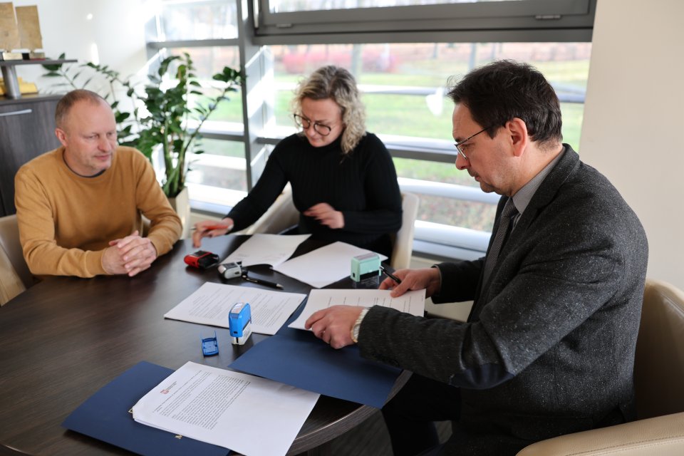 We środę 10 grudnia 2025r. zostały zawarte umowy z wykonawcami wyłonionymi w postępowaniu przetargowym pn.,,Przebudowa drogi gminnej ul. Parkowej w Morawicy oraz drogi dojazdowej do gruntów rolnych w Brzezinach”.
