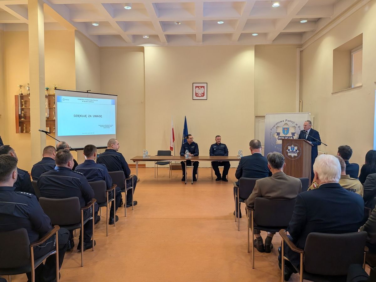 W odprawie uczestniczył Zastępca Komendanta Wojewódzkiego Policji w Kielcach, który podziękował buskim policjantom za rzetelną służbę i zaangażowanie. Podkreślił, że wyniki osiągnięte przez jednostkę stawiają ją w ścisłej czołówce województwa. Głos zabrali również zaproszeni goście: Starosta Buski, Pan Jerzy Kolarz oraz Burmistrz Miasta i Gminy Busko – Zdrój Pan Jerzy Szydłowski. Samorządowcy zgodnie zadeklarowali dalszą chęć współpracy, wskazując na wspólny cel, jakim jest poczucie bezpieczeństwa obywateli. W spotkaniu uczestniczyli także przedstawiciele innych służb mundurowych, co podkreśliło wagę zintegrowanego systemu bezpieczeństwa w regionie.