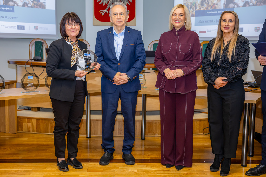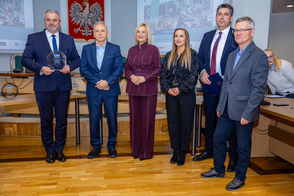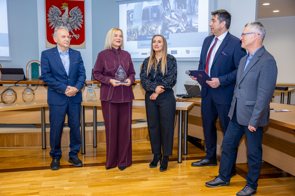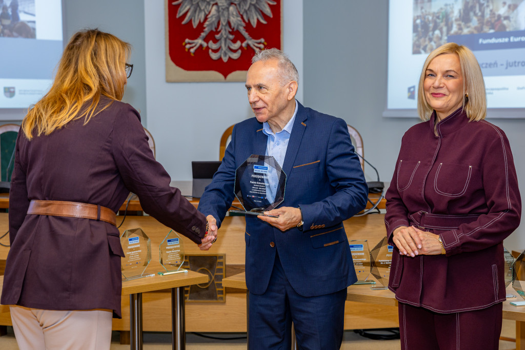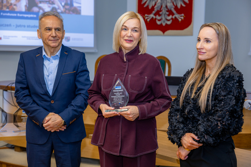 Podczas spotkania wręczono pamiątkowe grawertony partnerom projektu. Podziękowania za inicjowanie prac i wspieranie realizacji zadań otrzymała marszałek Renata Janik.