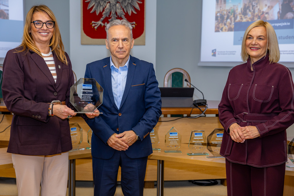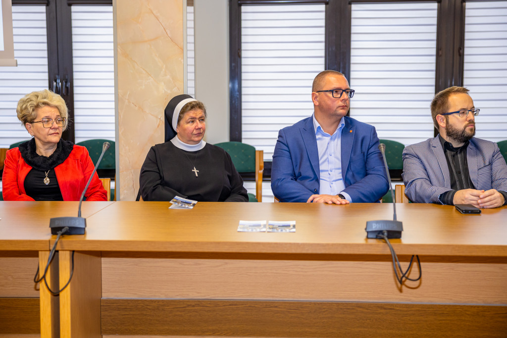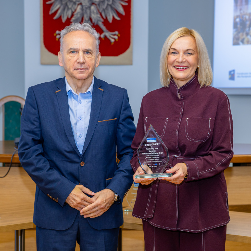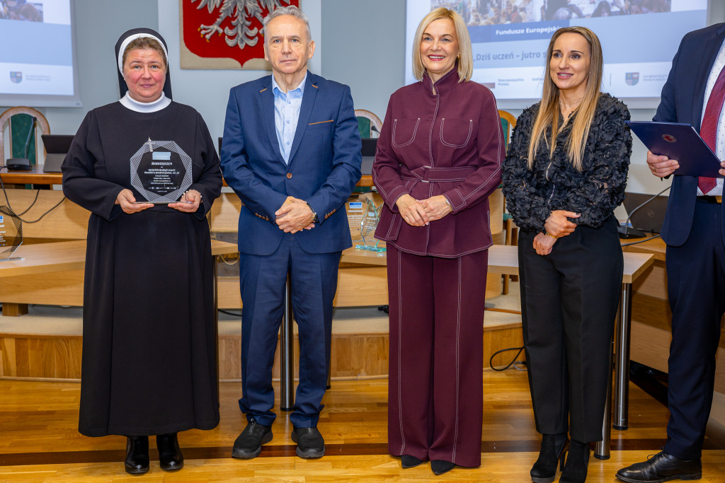 Podczas spotkania wręczono pamiątkowe grawertony partnerom projektu. Podziękowania za inicjowanie prac i wspieranie realizacji zadań otrzymała marszałek Renata Janik.