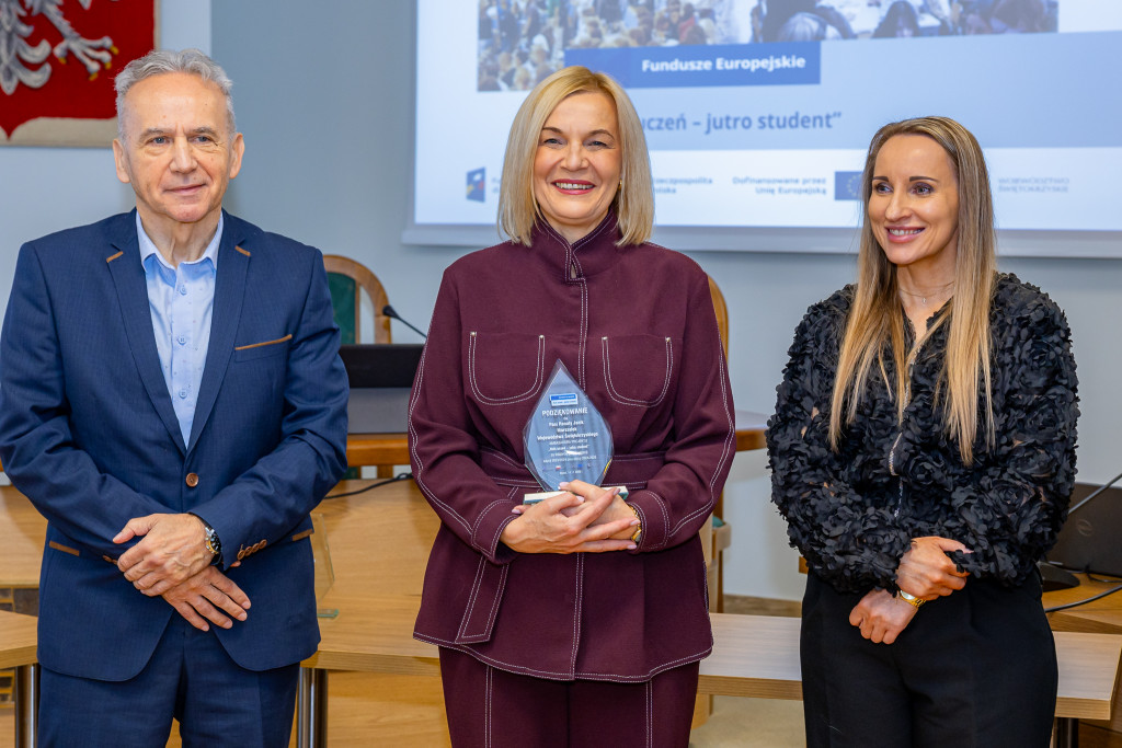 W podsumowaniu realizacji projektu wziął także udział m.in. prof. dr hab. Artur Maciąg prorektor ds. Studenckich i Dydaktyki Politechniki Świętokrzyskiej, dr hab. inż. Marcin Graba kierownik projektu “Dziś uczeń – jutro student”, dr hab. Magdalena Molendowska prorektor ds. rozwoju i finansów Uniwersytetu Jana Kochanowskiego i Artur Potaczała wicedyrektor Departamentu Wdrażania Europejskiego Funduszu Społecznego Urzędu Marszałkowskiego Województwa Świętokrzyskiego w Kielcach,