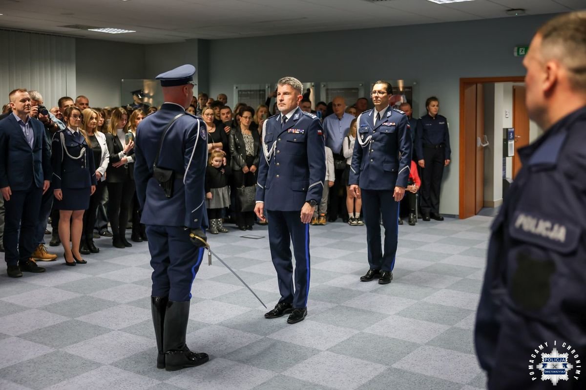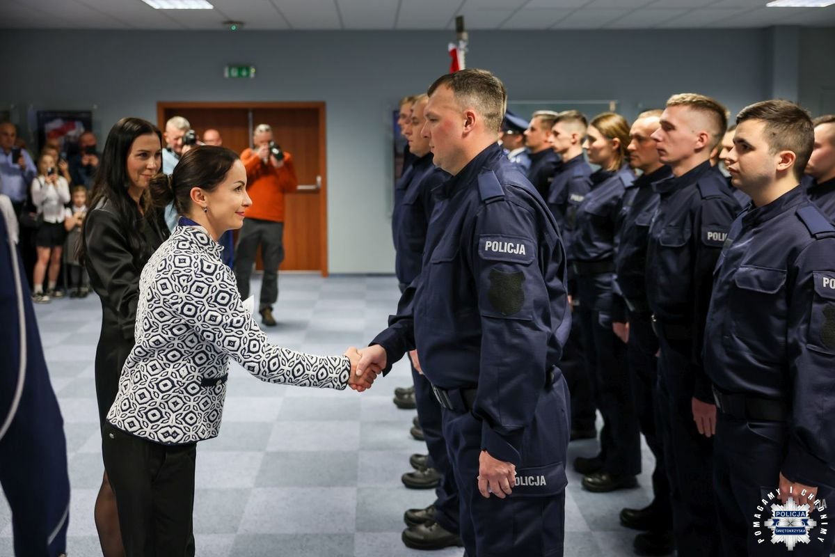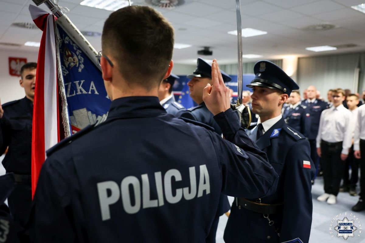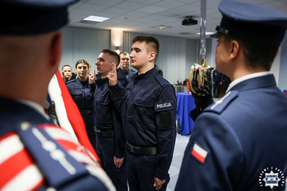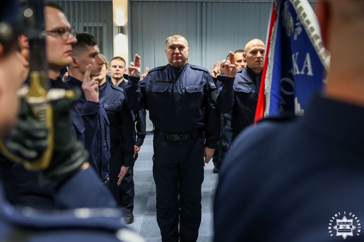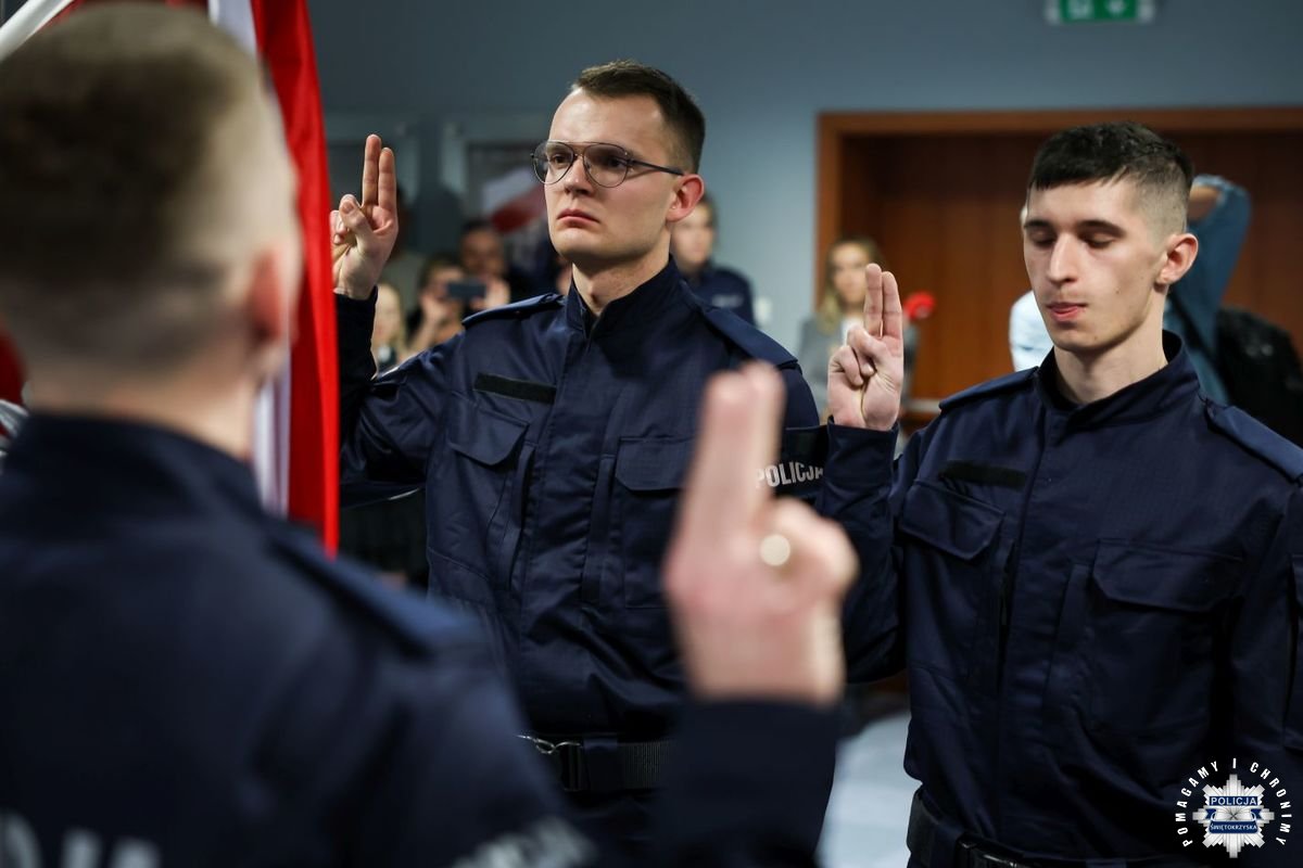 Uczestnicy wydarzenia zebrali się w Sali Narad im. mjr. Jana Piwnika „Ponurego”, to właśnie tu odbyła się uroczystość ślubowania nowo przyjętych policjantów. Jak zawsze atmosfera była podniosła. Kiedy na salę przybył Komendant Wojewódzki Policji w Kielcach insp. Zbigniew Nowak w asyście Zastępcy insp. Marcina Chatysa, dowódca uroczystości złożył stosowny meldunek rozpoczynając tym samym wydarzenie. A w nim uczestniczyła Pani Edyta Bucka – Dyrektor Wydziału Prawnego, Nadzoru i Kontroli Świętokrzyskiego Urzędu Wojewódzkiego w Kielcach, komendanci powiatowi i miejski, dowódcy i naczelnicy poszczególnych wydziałów, policjanci, a także zaproszone rodziny i bliscy nowo przyjętych funkcjonariuszy. Obecni byli także uczniowie oddziału o profilu mundurowym z Technikum w Zespole Szkół im. Stanisława Staszica w Staszowie z opiekunem podpułkownikiem rezerwy Damianem Potyrało.