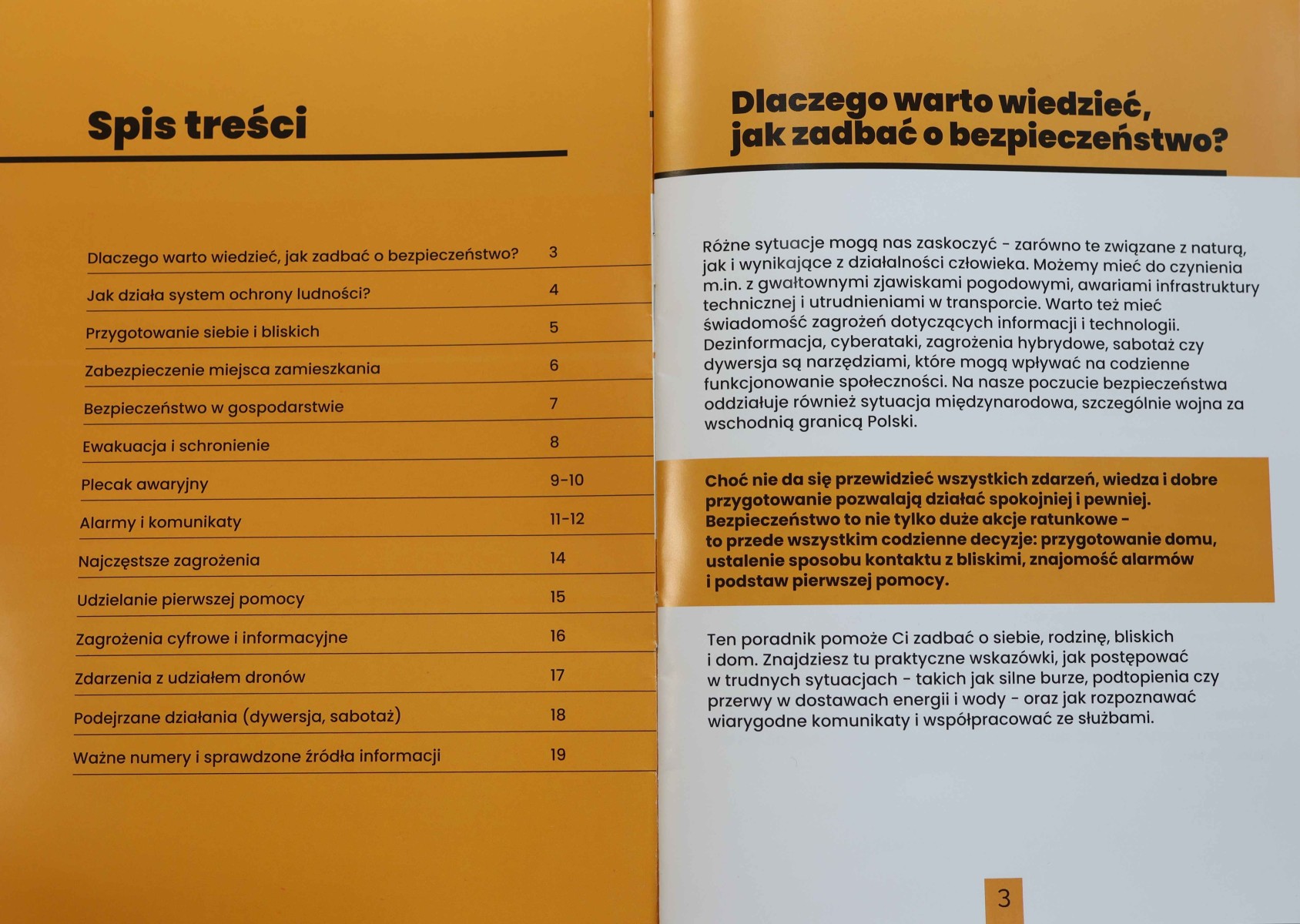 Książeczka zawiera przede wszystkim praktyczne rady. Specjaliści podpowiadają co powinno znaleźć się w plecaku awaryjnym, jak przygotować się do sytuacji, w której stracimy łączność z rodziną. Są też sugestie jak ustrzec się niebezpieczeństwa ze strony atakujących dronów i tego, jak wykryć akty sabotażu i dywersji.