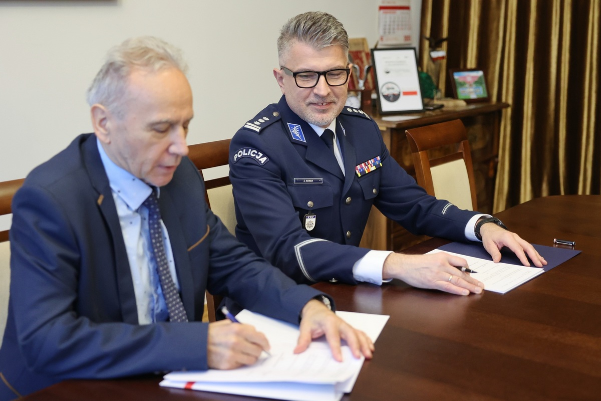 Dziś w Politechnice Świętokrzyskiej zostało podpisane porozumienie regulujące zasady postępowania w przypadku wezwania i wkroczenia policjantów na teren uczelni. Dokument, którego celem jest m.in. zwiększenie bezpieczeństwa studentów i pracowników, podpisał Komendant Wojewódzki Policji w Kielcach insp. Zbigniew Nowak oraz Rektor Politechniki Świętokrzyskiej prof. dr hab. inż. Zbigniew Koruba.