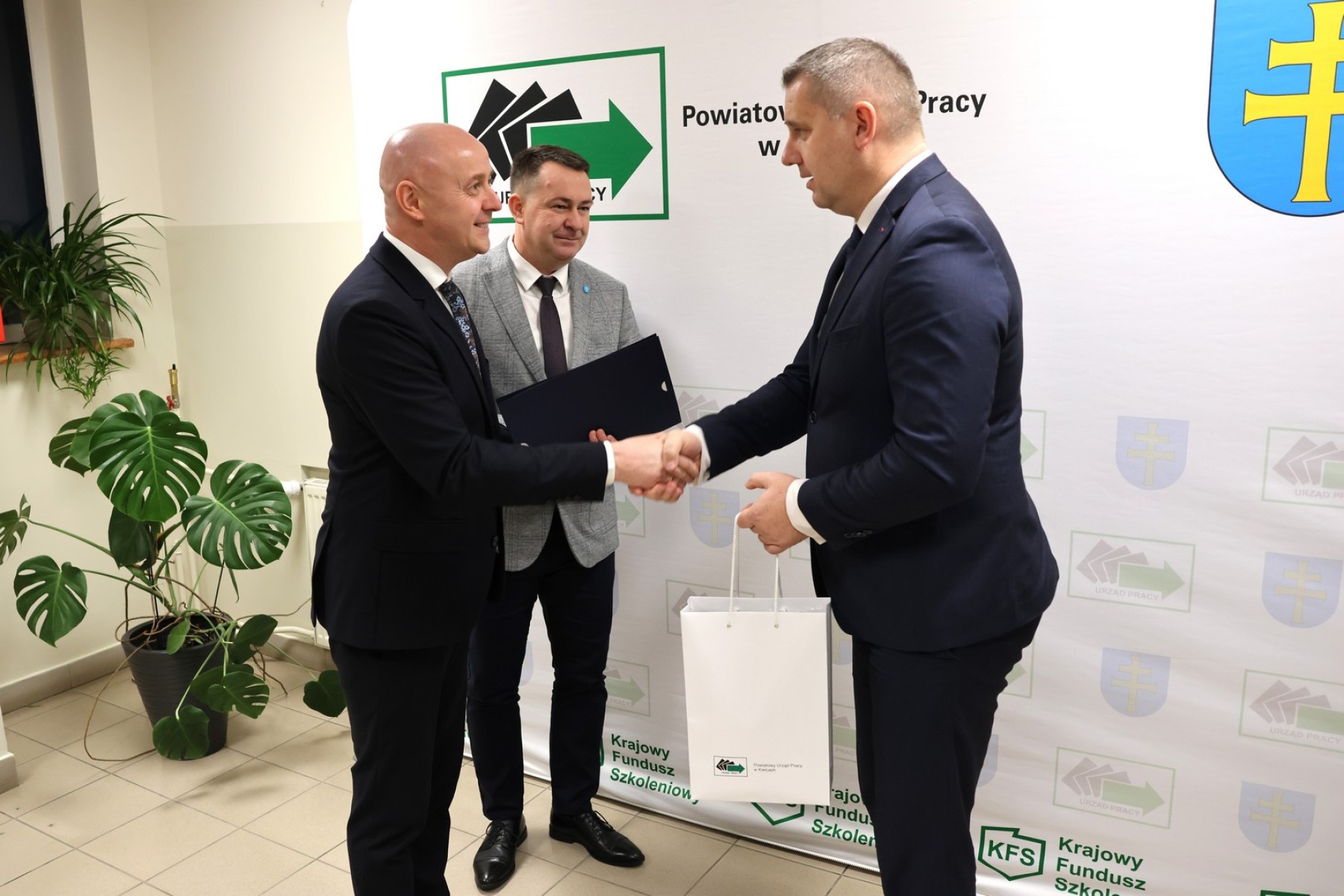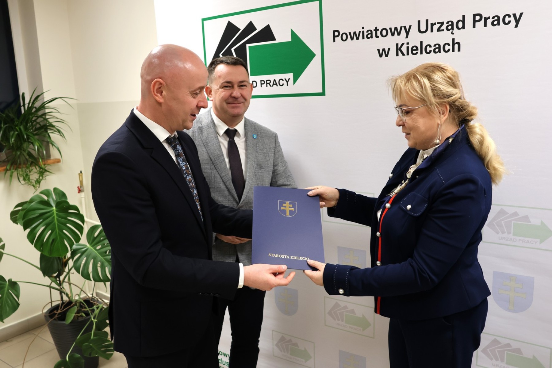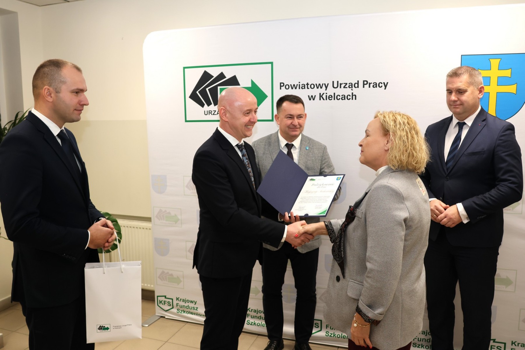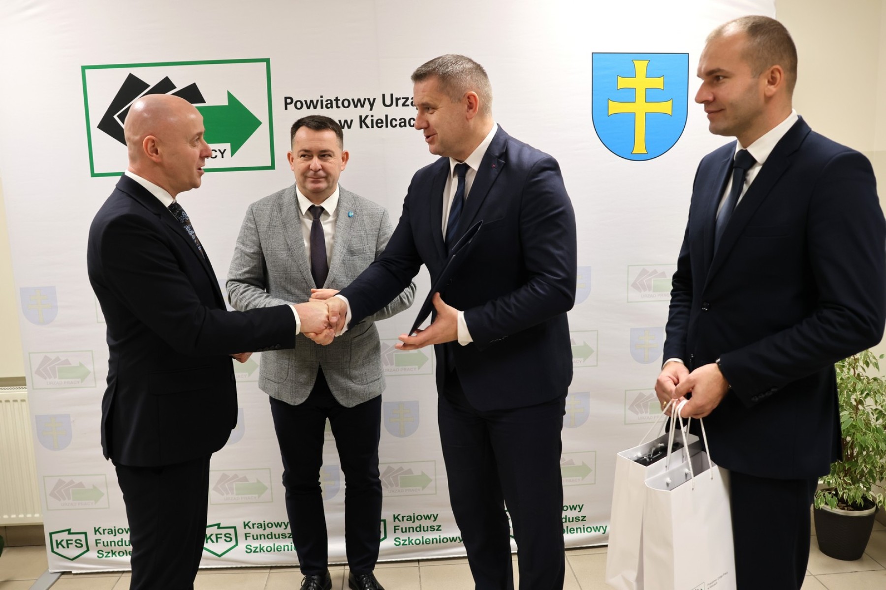 Na zakończenie posiedzenia wicestarosta kielecki Tomasz Dulny i członek Zarządu Powiatu w Kielcach Cezary Majcher wręczyli członkom Powiatowej Rady Rynku Pracy w Kielcach podziękowania, w uznaniu za aktywny udział w pracach organu opiniodawczo – doradczego Starosty w kadencji 2023 – 2025 oraz za wkład merytoryczny, zaangażowanie i odpowiedzialną postawę we wspieraniu inicjatyw na rzecz rozwoju rynku pracy w powiecie kieleckim.