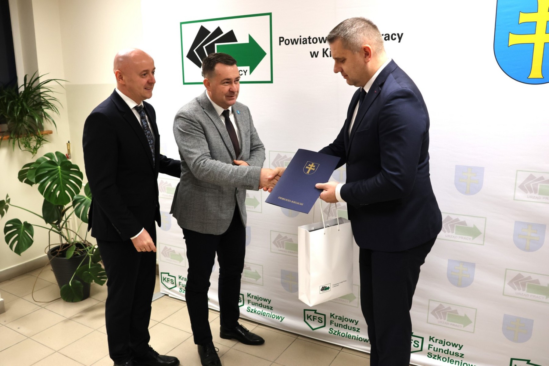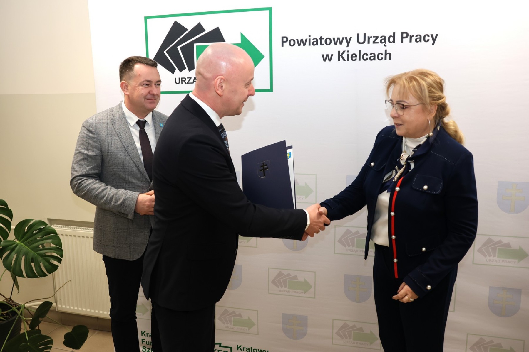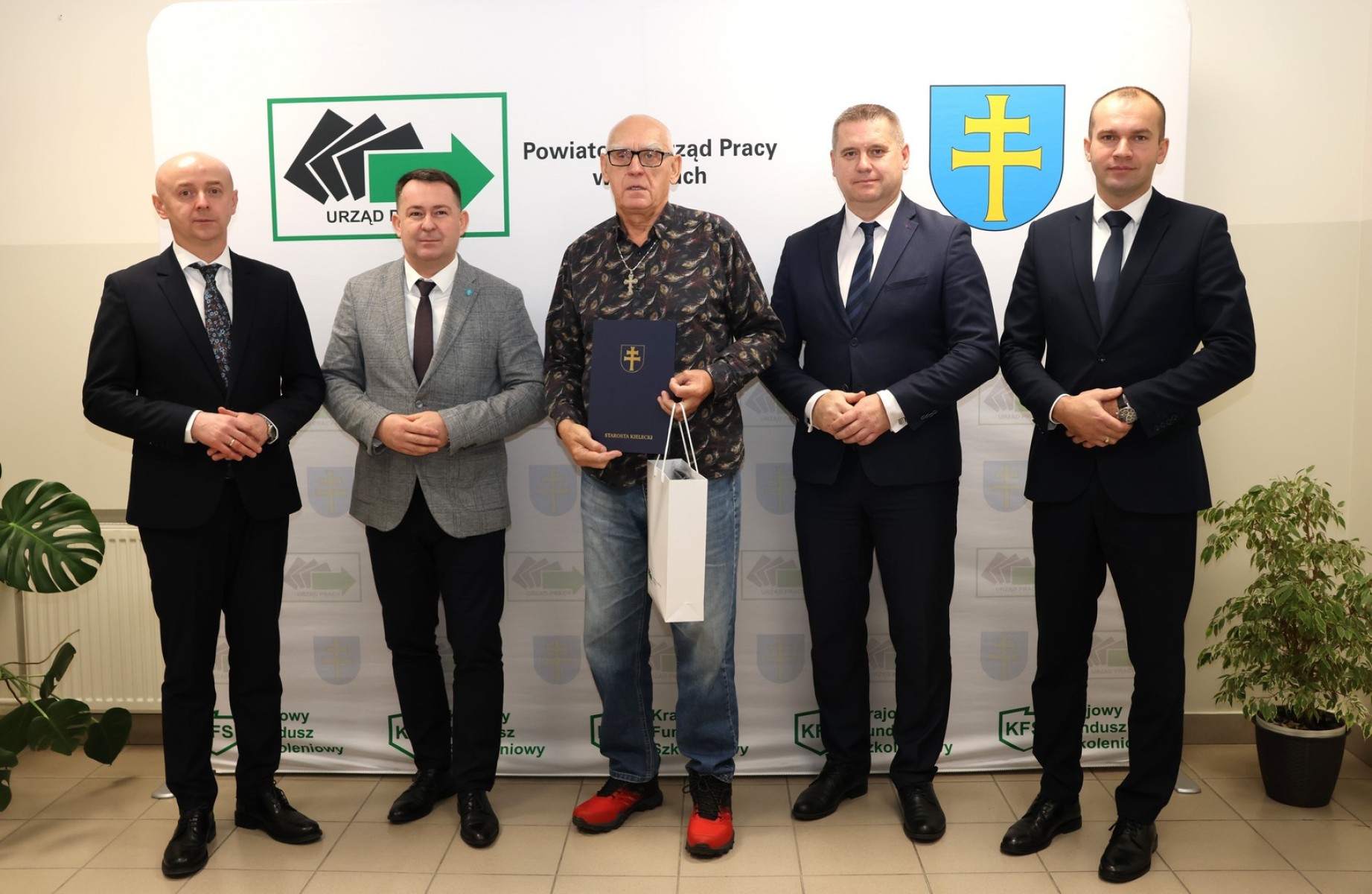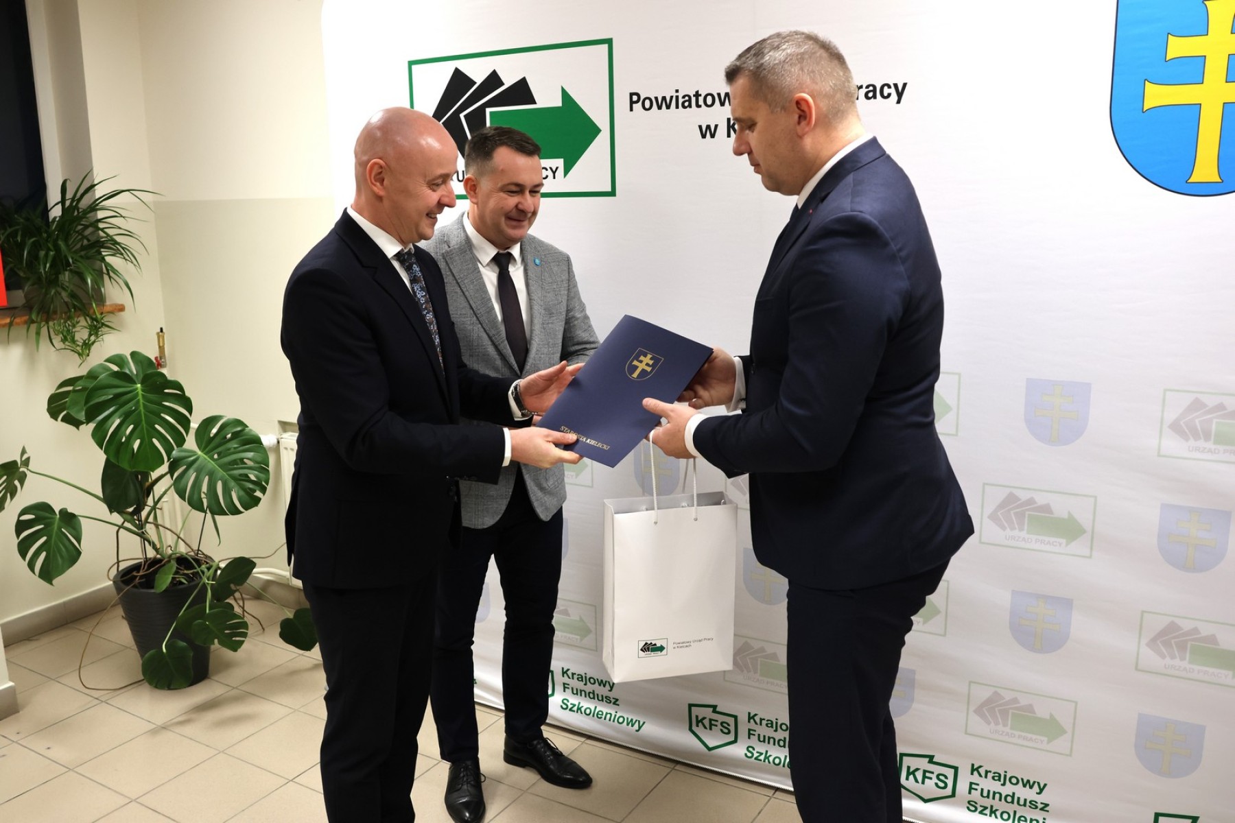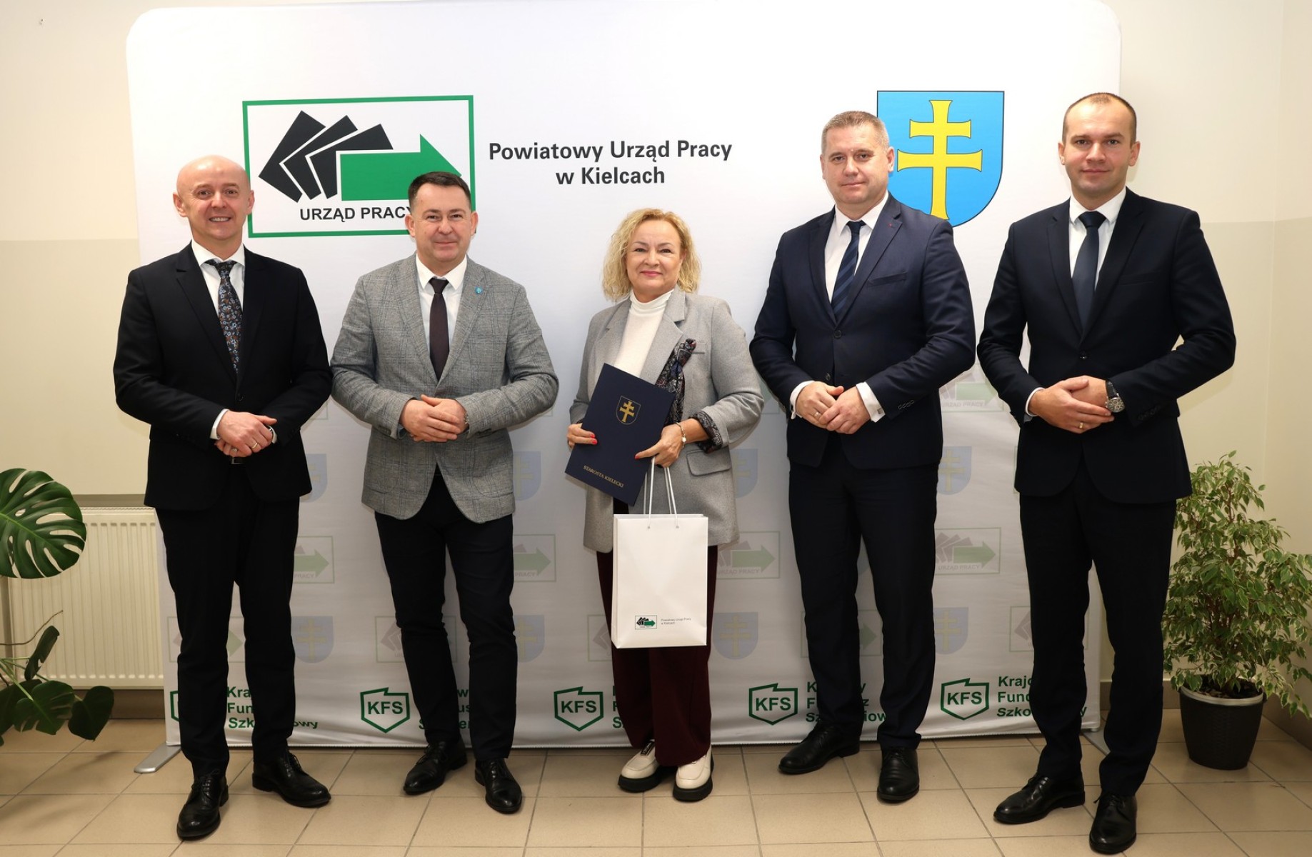Na zakończenie posiedzenia wicestarosta kielecki Tomasz Dulny i członek Zarządu Powiatu w Kielcach Cezary Majcher wręczyli członkom Powiatowej Rady Rynku Pracy w Kielcach podziękowania, w uznaniu za aktywny udział w pracach organu opiniodawczo – doradczego Starosty w kadencji 2023 – 2025 oraz za wkład merytoryczny, zaangażowanie i odpowiedzialną postawę we wspieraniu inicjatyw na rzecz rozwoju rynku pracy w powiecie kieleckim.