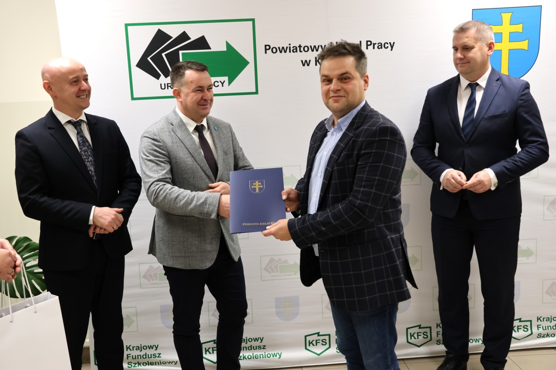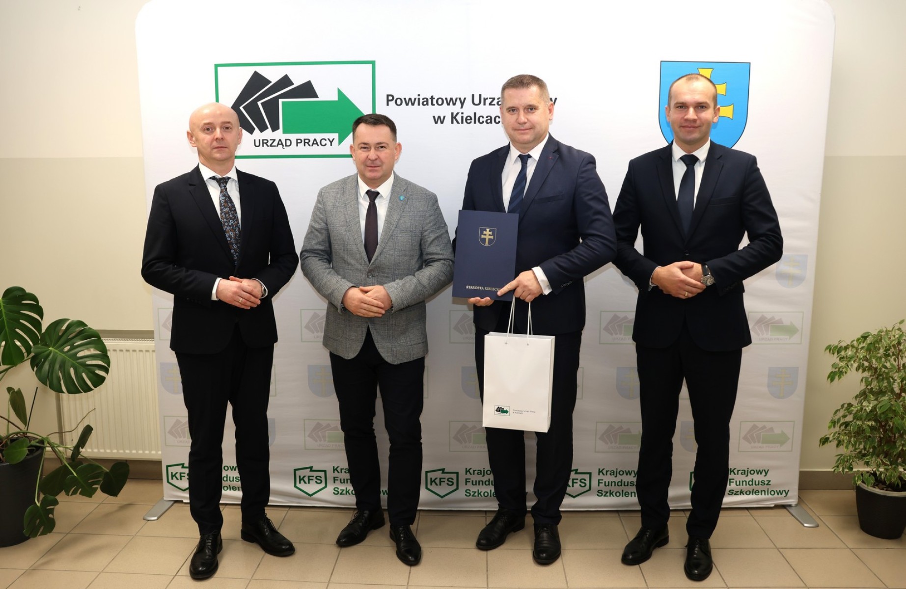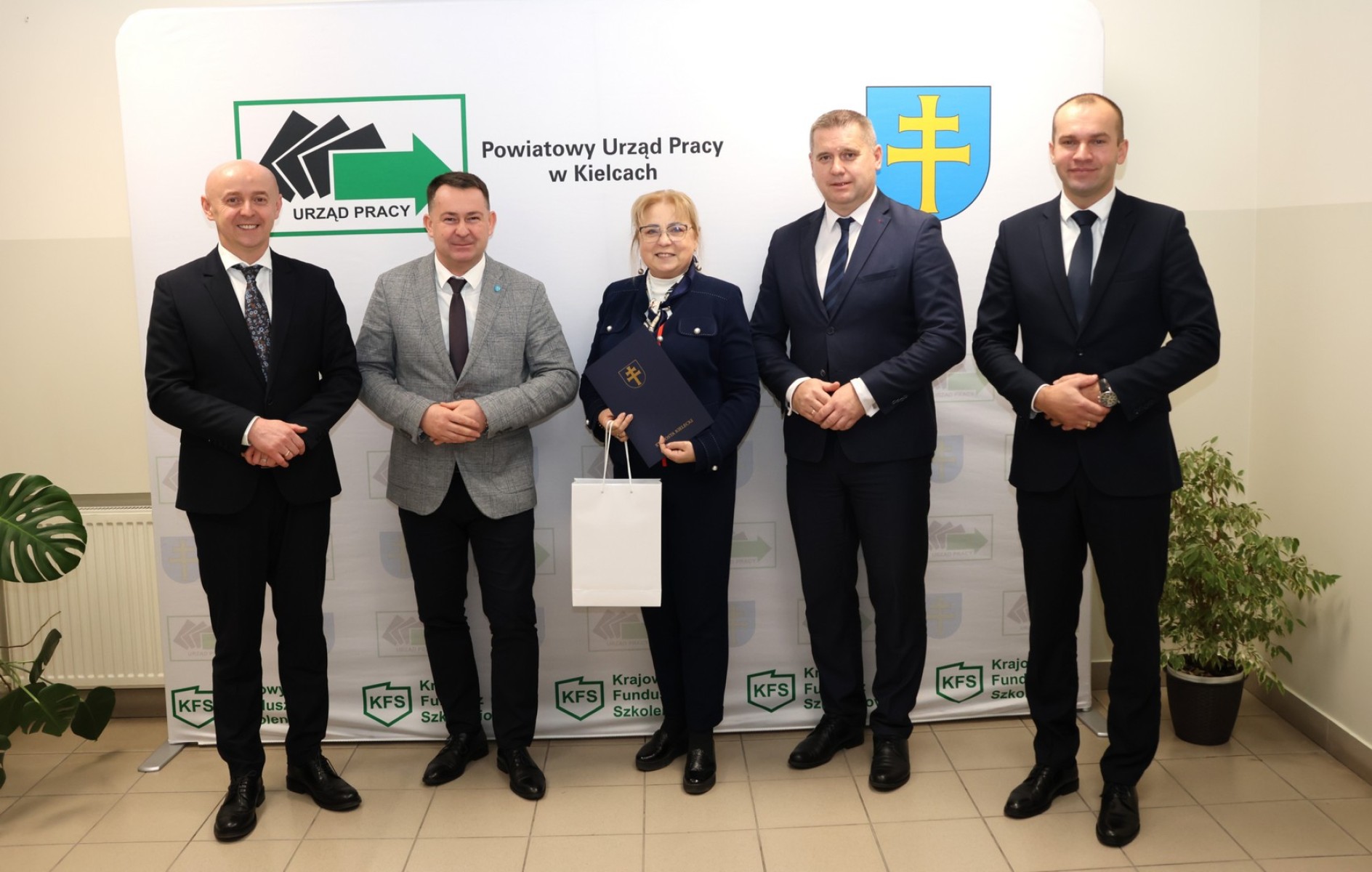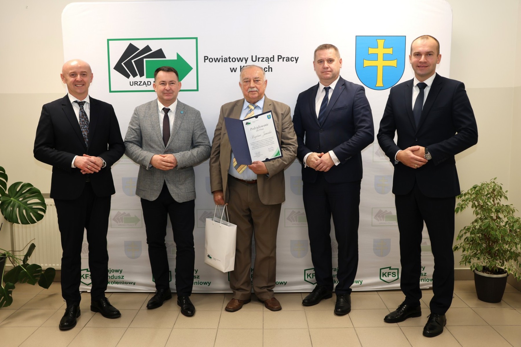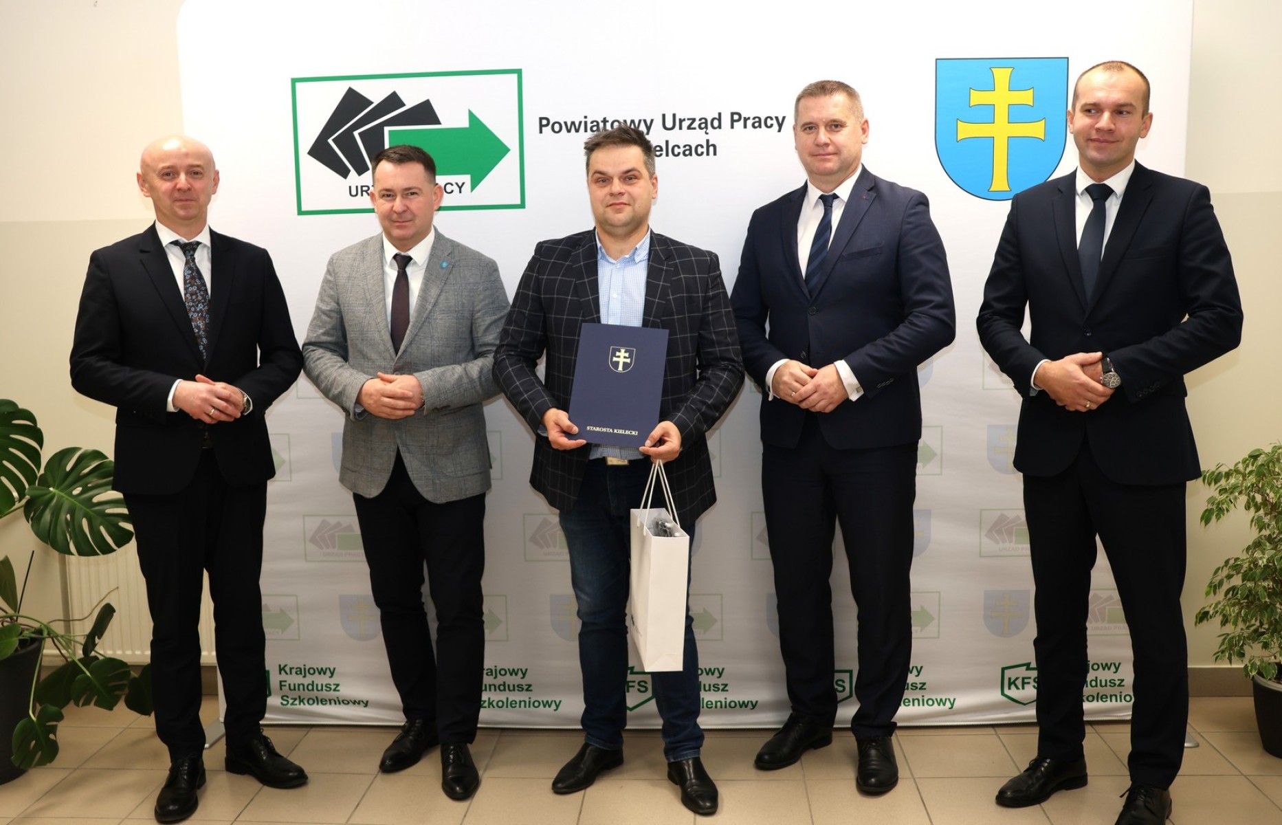 Na zakończenie posiedzenia wicestarosta kielecki Tomasz Dulny i członek Zarządu Powiatu w Kielcach Cezary Majcher wręczyli członkom Powiatowej Rady Rynku Pracy w Kielcach podziękowania, w uznaniu za aktywny udział w pracach organu opiniodawczo – doradczego Starosty w kadencji 2023 – 2025 oraz za wkład merytoryczny, zaangażowanie i odpowiedzialną postawę we wspieraniu inicjatyw na rzecz rozwoju rynku pracy w powiecie kieleckim.