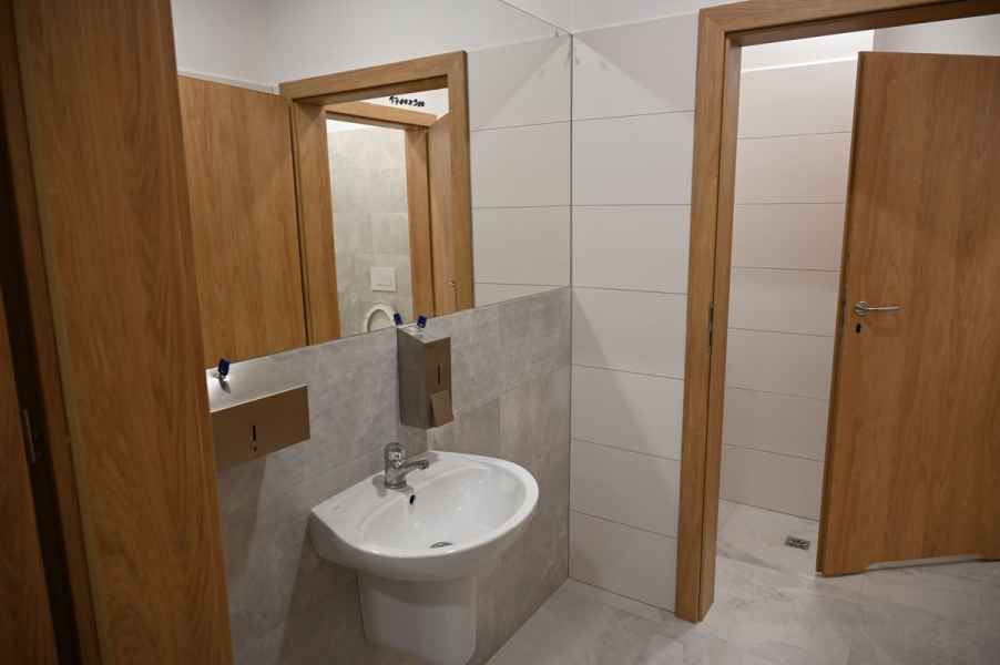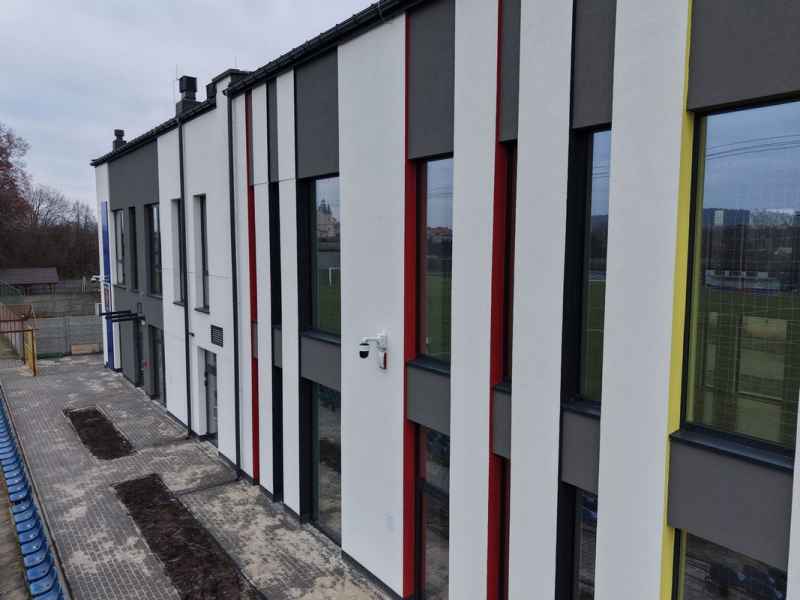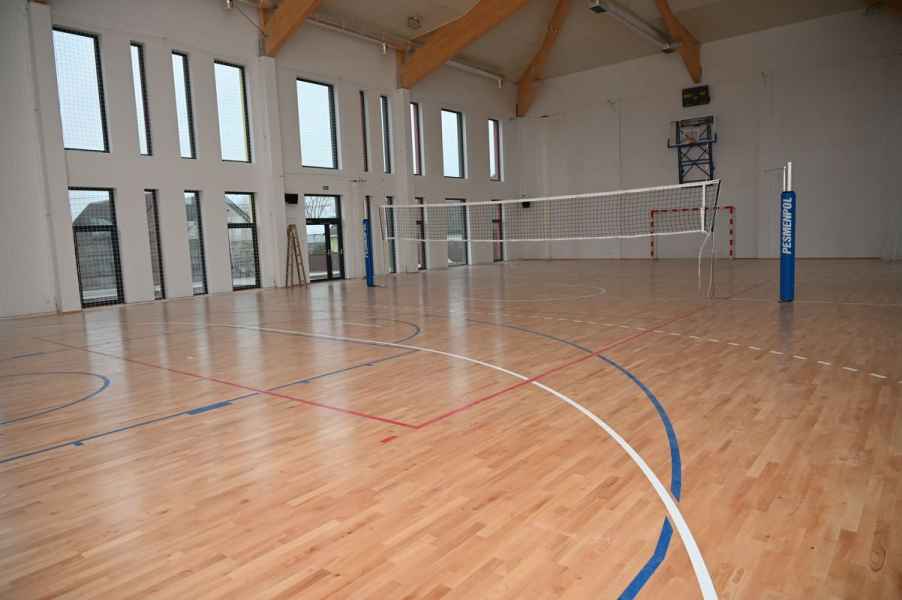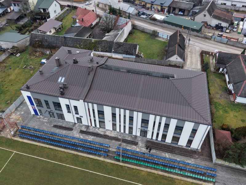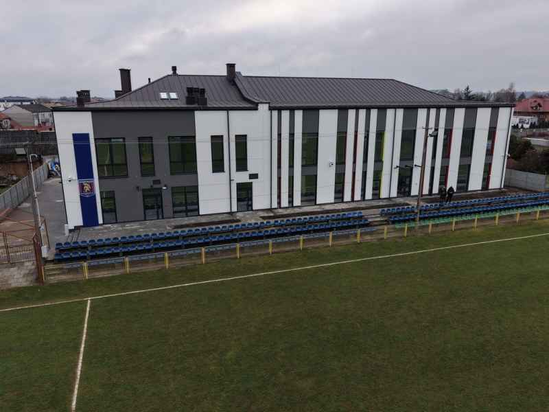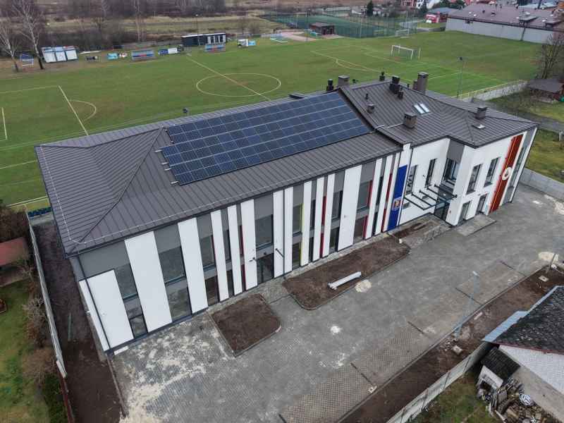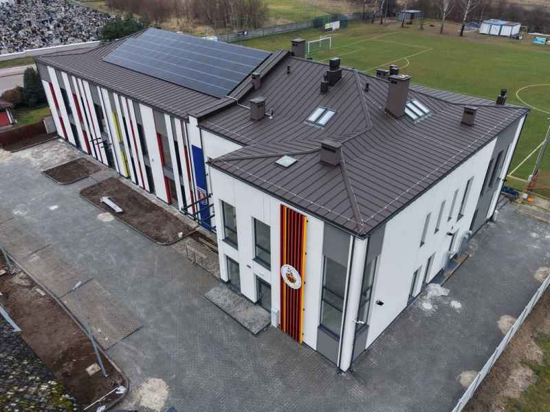 Charakterystycznym elementem obiektu jest efektowna membrana dachowa oraz dekoracyjne wiązary drewniane, które podkreślają nowoczesny styl i lekkość architektury. O komfort użytkowników zadba energooszczędne ogrzewanie podłogowe wspierane przez kotły na pellet i pompę ciepła.