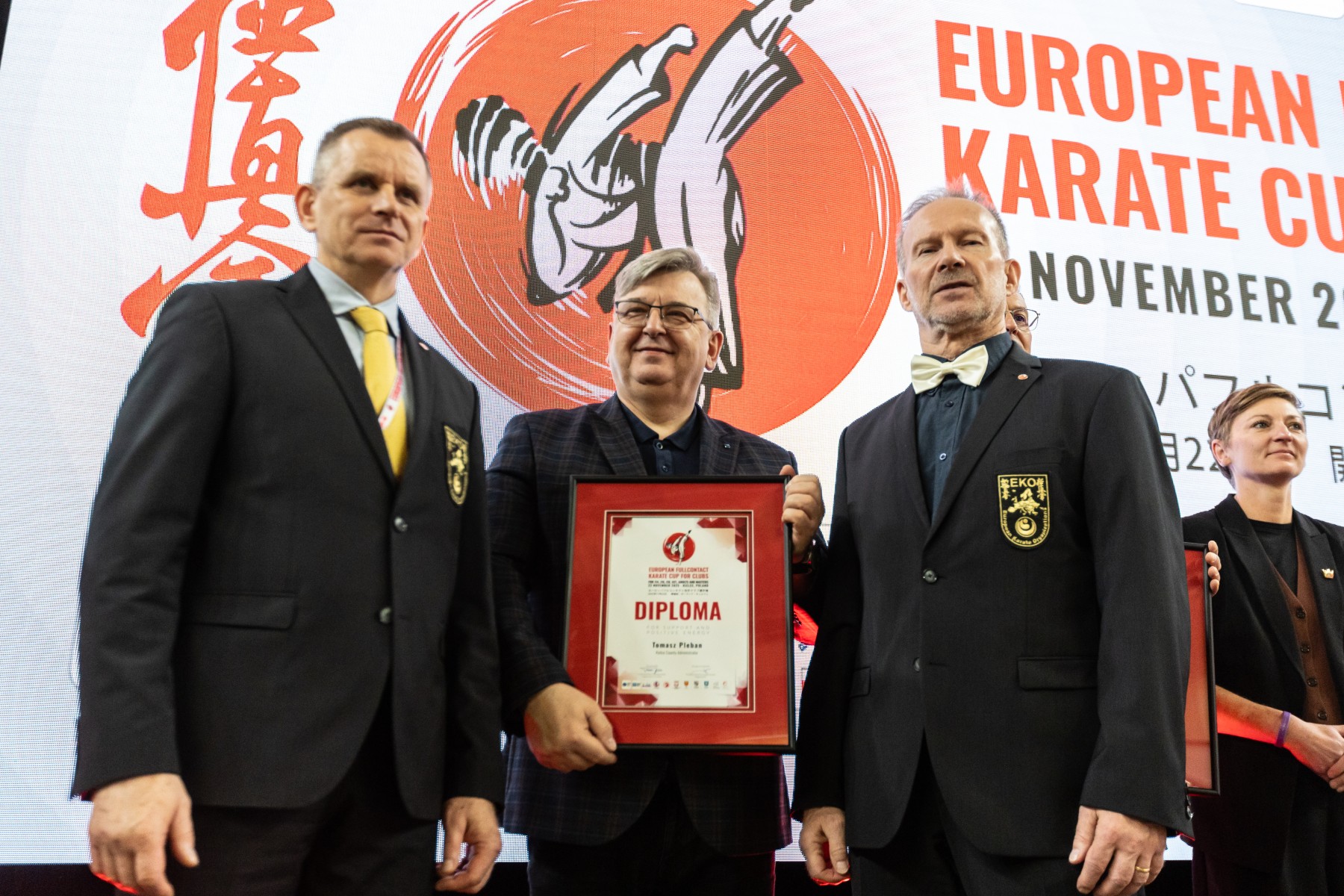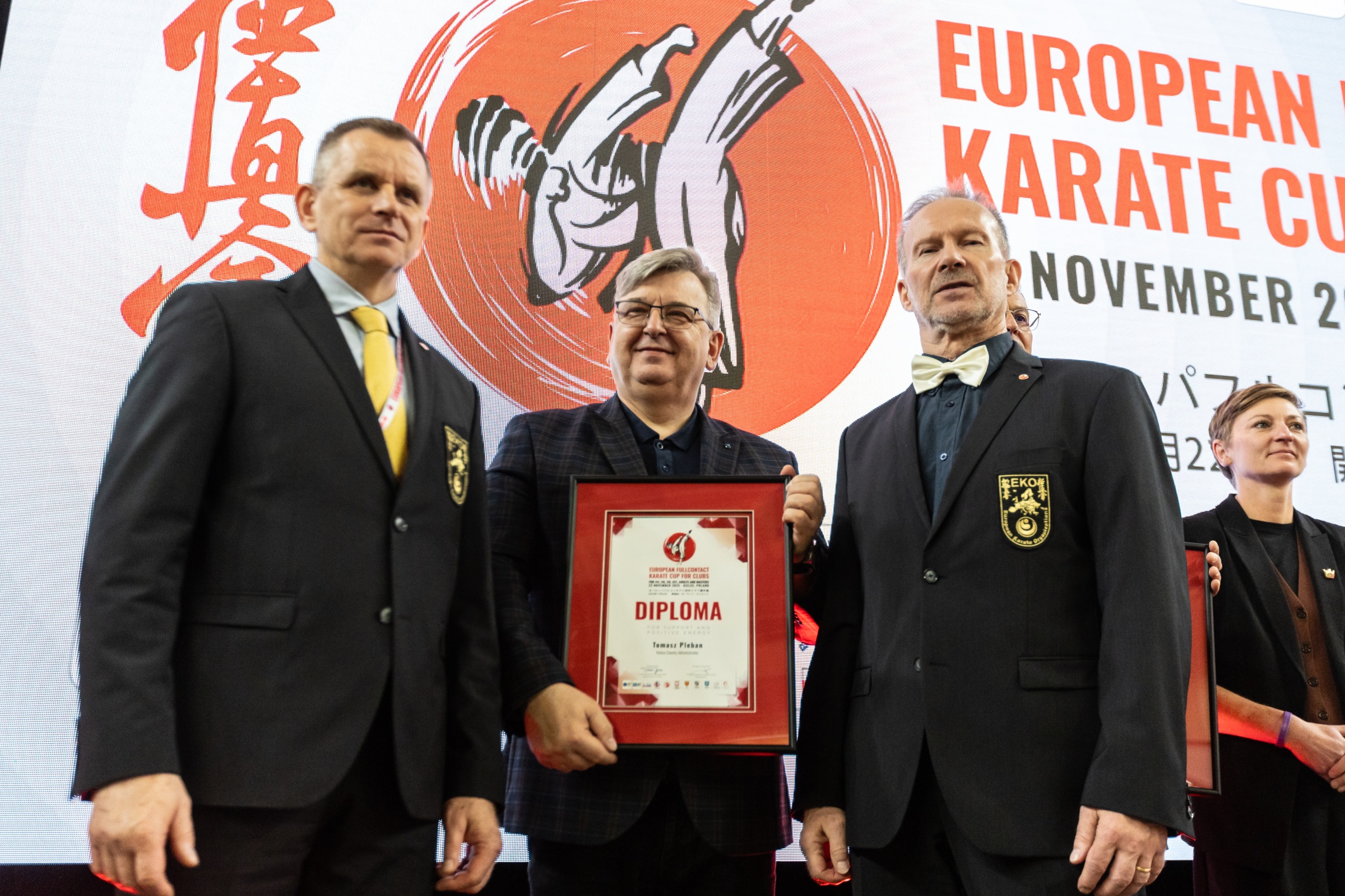 -Po raz kolejny Kielce są stolicą karate kyokushin. Cieszymy się, że na trzech tatami możemy obserwować rywalizacje od rocznika J14 do mastersów i zobaczyć, jak zawodnicy, którzy ciężko pracowali przez cały rok, próbują zdobyć te puchary. Mamy prawie 300 karateków z prawie 50 klubów. Duże wydarzenie, piękna oprawa. Mam nadzieję, że zawody będą stały na najwyższym poziomie. Nie tylko sportowym, ale również organizacyjnym i logistycznym. Jest to nowatorski pomysł – Klubowy Puchar Europy, w którym mogą startować kluby z różnych organizacji kyokushin. To jest otwarty turniej. Cieszymy się, że ta impreza odbywa się w Kielcach. Dziękuję włodarzom miasta i województwa, powiatu, firmom, wreszcie osobom fizycznym z komitetu organizacyjnego, które ciężko pracowały na to, aby tę imprezę przygotować – mówił podczas ceremonii otwarcia Tomasz Kęćko, przewodniczący komitetu organizacyjnego Klubowego Pucharu Europy.