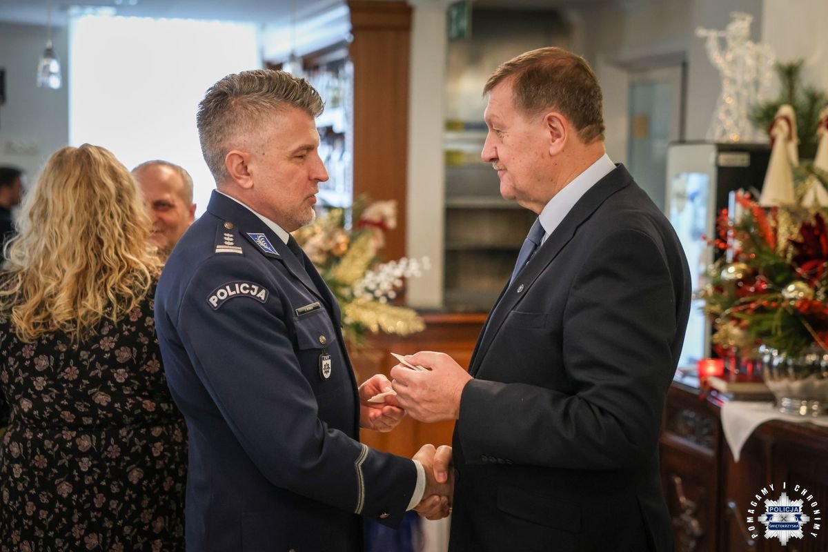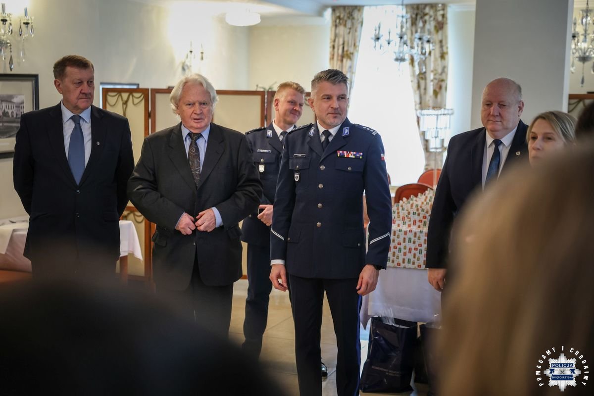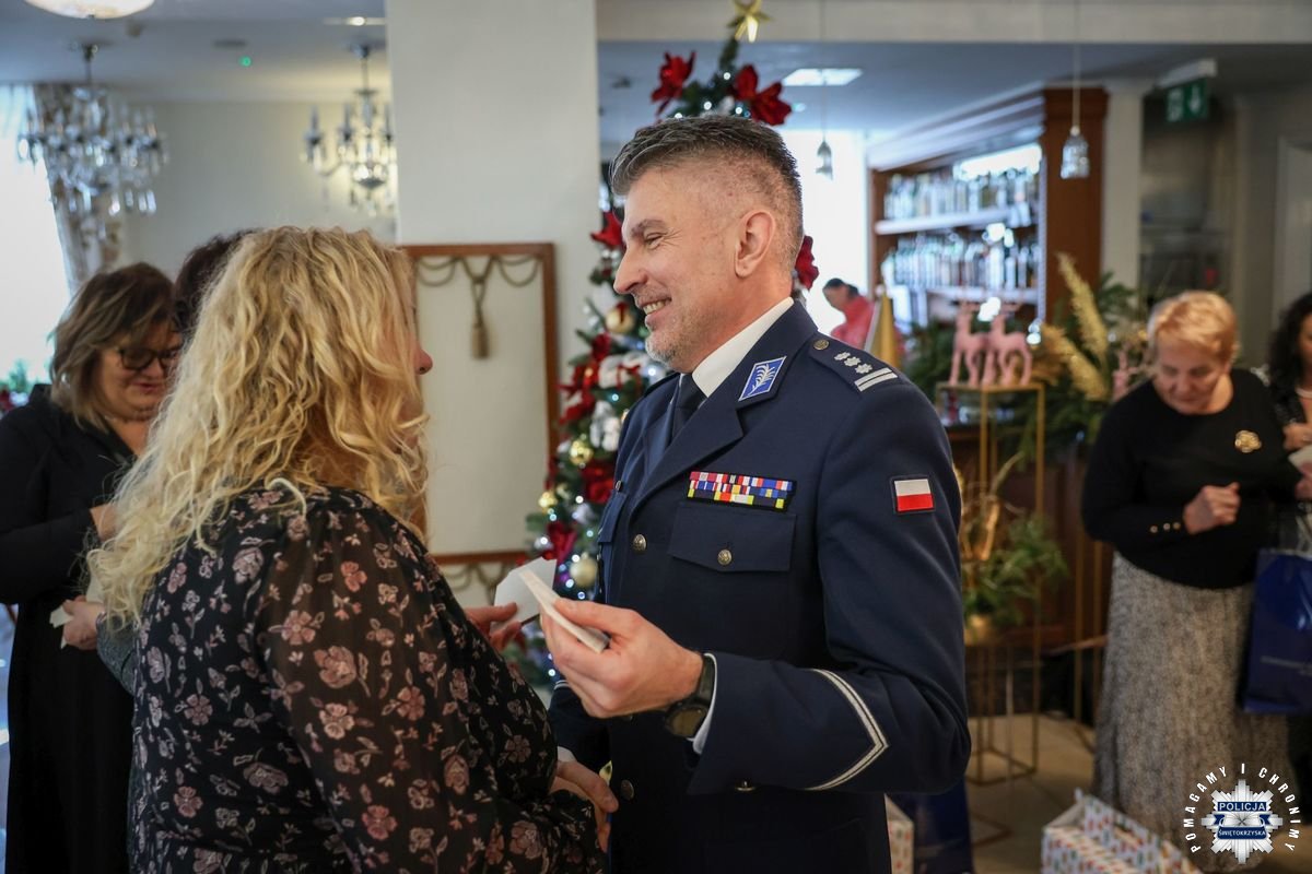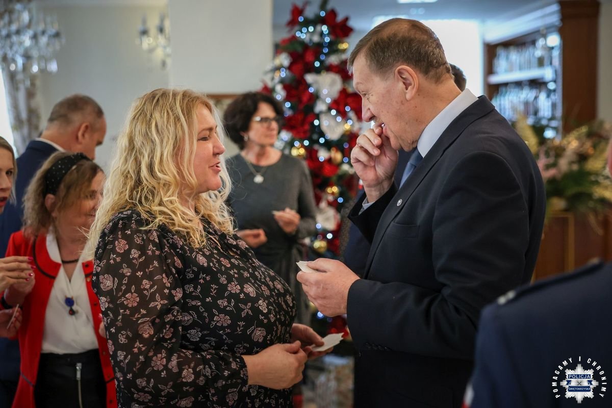 Dziś w przedświątecznej atmosferze przy dźwiękach rozbrzmiewających kolęd Komendant Wojewódzki Policji w Kielcach insp. Zbigniew Nowak wraz z zastępcami spotkali się z podopiecznymi Fundacji Pomocy Wdowom i Sierotom po Poległych Policjantach. W spotkaniu pełnym uśmiechu i wdzięczności udział wziął także nadinsp. w st. spocz. Władysław Padło – Przewodniczący Rady Fundacji, mł. insp. w st. spocz. Zenon Parchimowicz – Sekretarz Zarządu Fundacji oraz Przewodniczący NSZZP województwa świętokrzyskiego Jerzy Kaniewski.