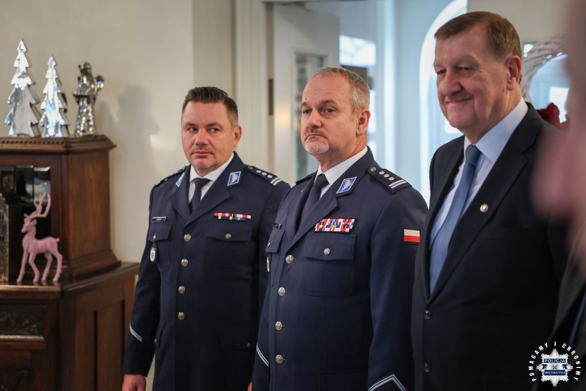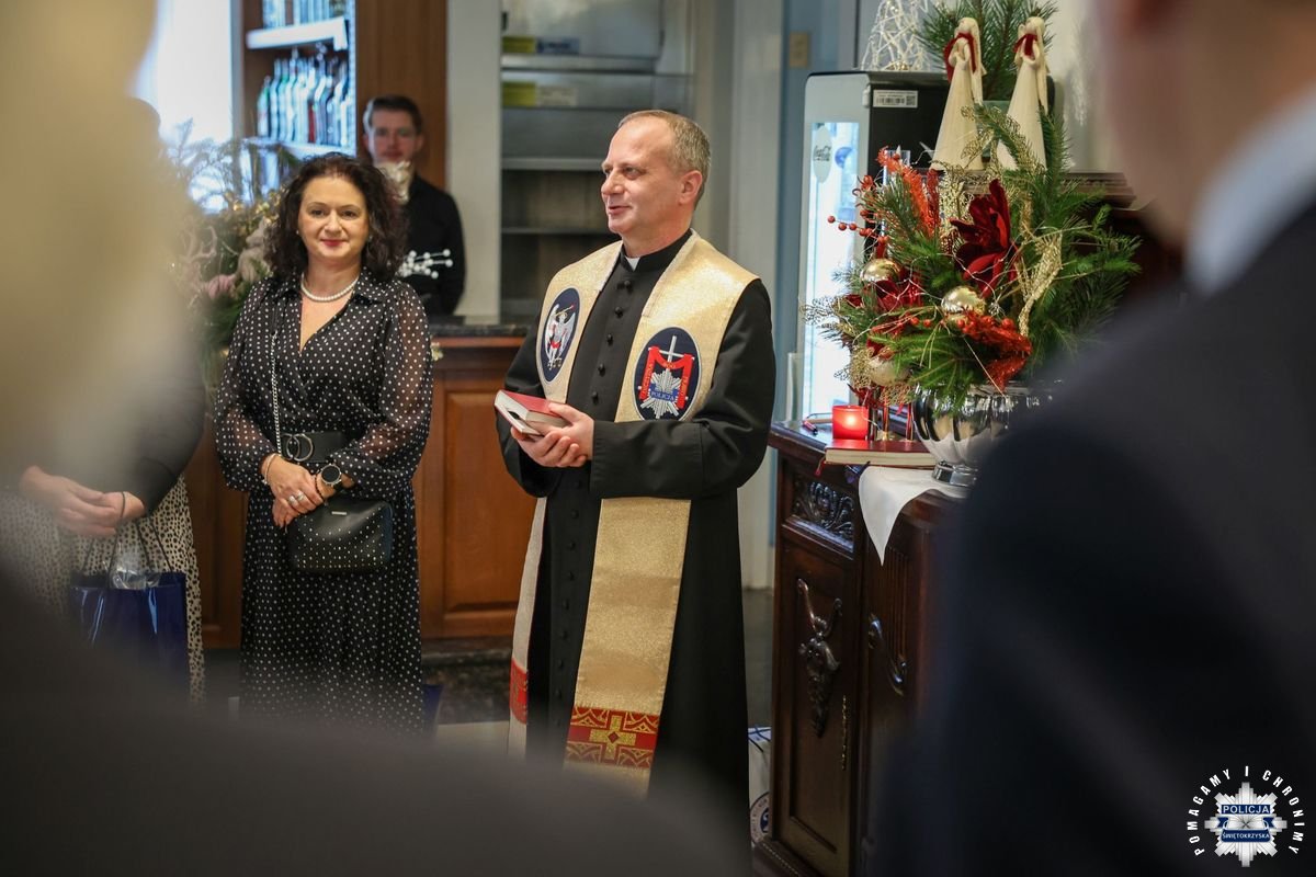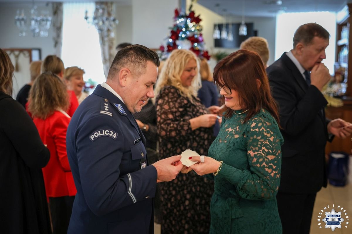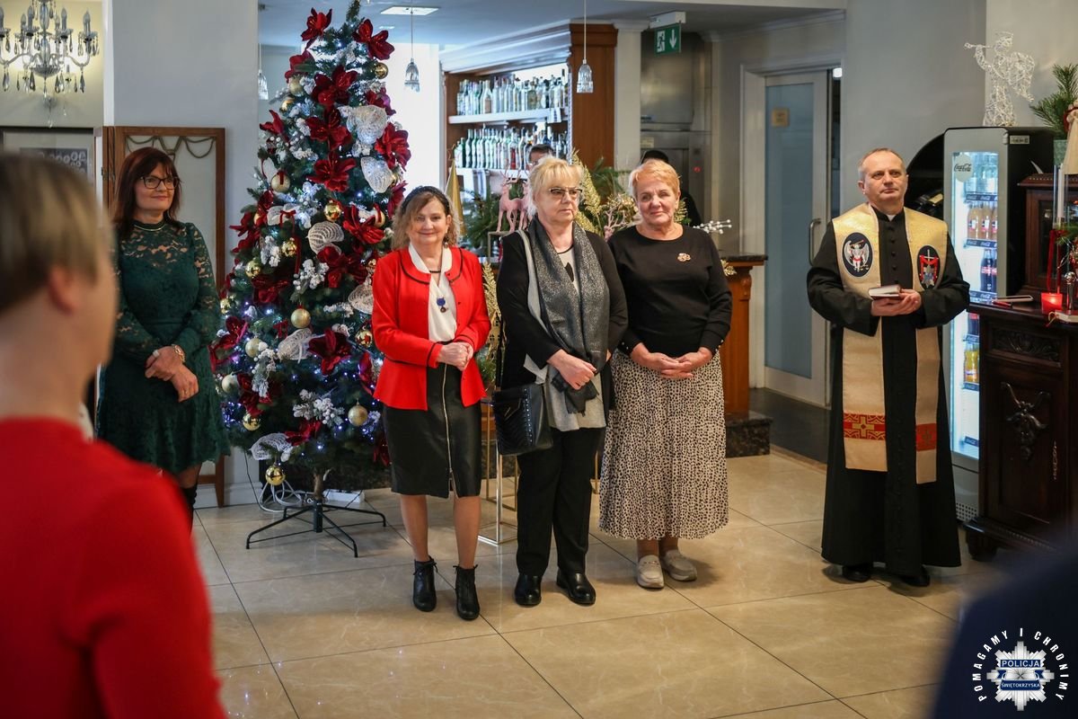 Dziś w przedświątecznej atmosferze przy dźwiękach rozbrzmiewających kolęd Komendant Wojewódzki Policji w Kielcach insp. Zbigniew Nowak wraz z zastępcami – insp. Tomaszem Jaroszem oraz insp. Jackiem Cholewą spotkali się z podopiecznymi Fundacji Pomocy Wdowom i Sierotom po Poległych Policjantach garnizonu świętokrzyskiego. Podczas spotkania padło wiele ciepłych, pełnych serdeczności słów oraz bożonarodzeniowych życzeń. Oczywiście nie mogło także zabraknąć tradycyjnego dzielenia się opłatkiem, który poświęcił Kapelan skarżyskich policjantów – ksiądz Krzysztof Sieczka.