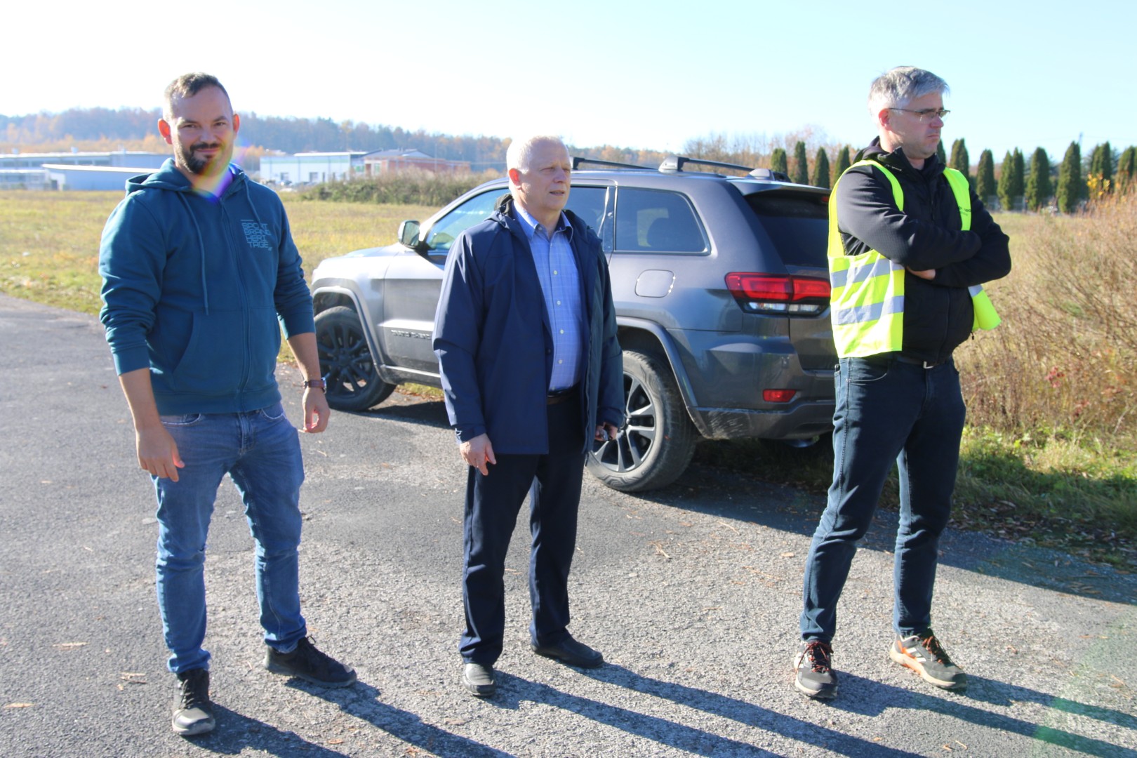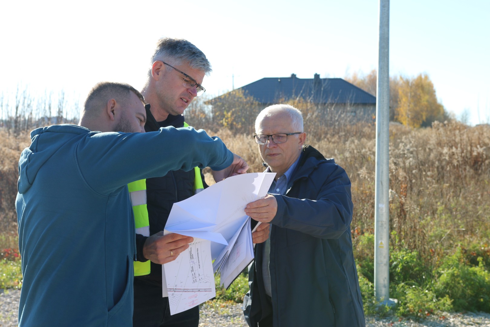 Podczas przekazaniu placów budowy obecni byli: inspektor nadzoru budowlanego Rafał Bujnowski, kierownik budowy firmy „Fart” Tomasz Tatar oraz inspektor ds. inwestycji Krzysztof Strójwąs.