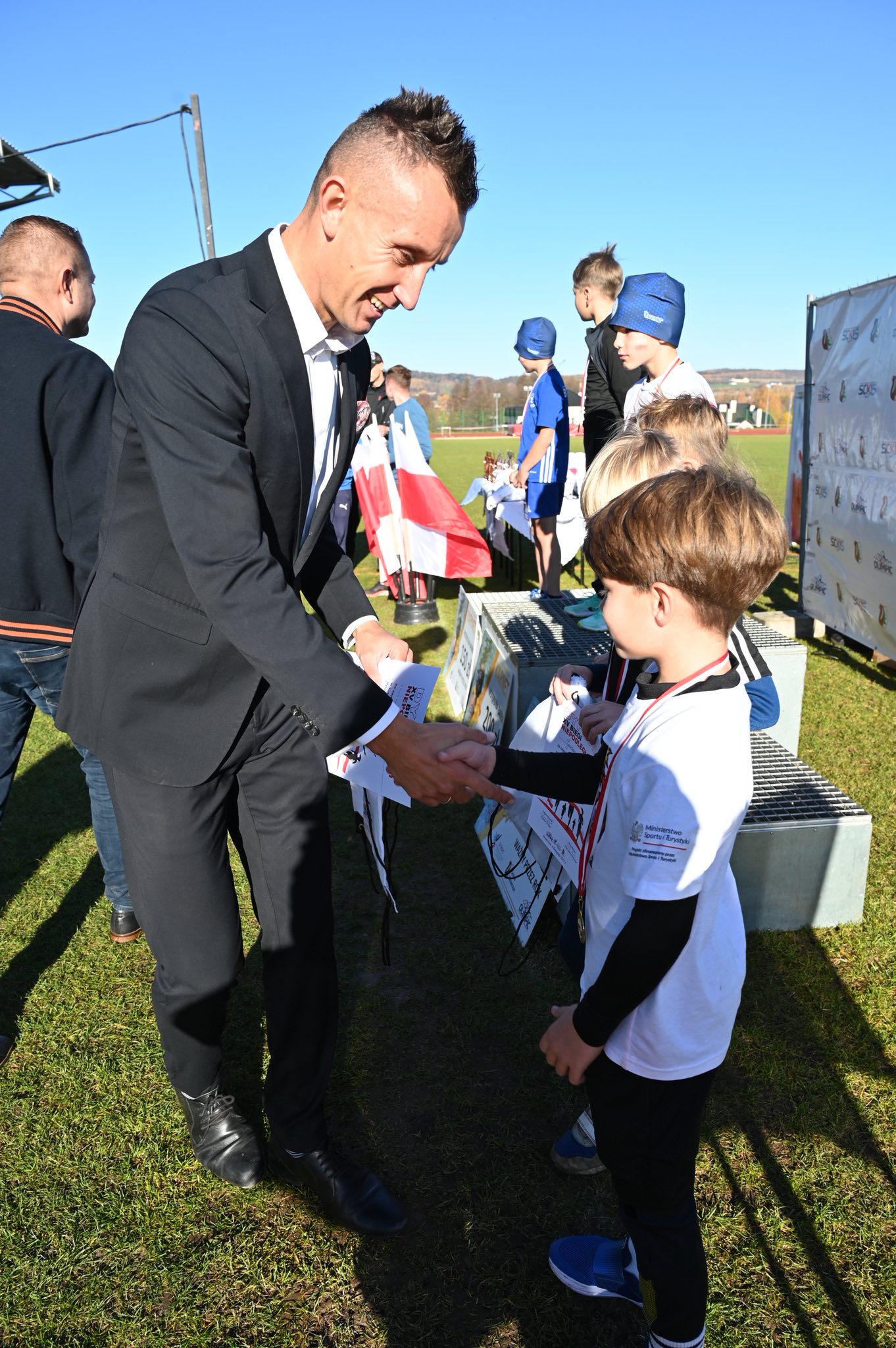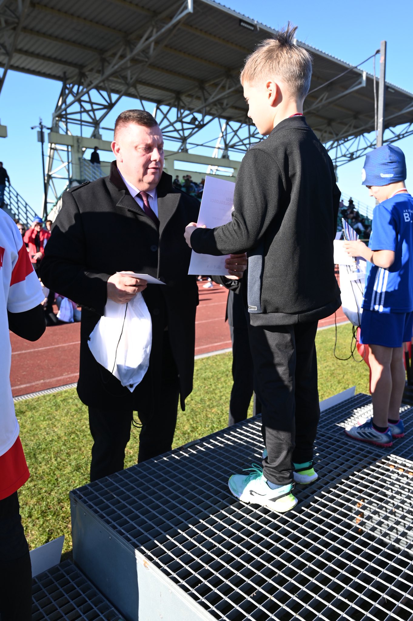 Zanim młodzi biegacze ruszyli na trasę, cały stadion wypełnił się biało-czerwonymi barwami. Uczestnicy utworzyli na trybunach ogromną flagę Polski z setek kartek, a następnie wspólnie odśpiewali hymn narodowy. To symboliczne rozpoczęcie wprowadziło wszystkich w wyjątkową i niezwykle podniosłą atmosferę. – To niezwykły widok, który napawa dumą i wzruszeniem. Kiedy setki dzieci i młodzieży, w barwach biało-czerwonych, biegną z uśmiechem na twarzy, żeby uczcić naszą niepodległość, trudno o piękniejszy sposób świętowania. Właśnie takie chwile pokazują, że w Strawczynie patriotyzm nie jest pustym słowem. Tu patriotyzm żyje w sercach mieszkańców, zwłaszcza tych najmłodszych. – powiedział Karol Picheta, wójt gminy Strawczyn. – Cieszę się ogromnie, że z roku na rok Bieg Niepodległości gromadzi coraz więcej uczestników. To pokazuje, że sport może być doskonałym narzędziem wychowania w duchu wartości, które budują naszą społeczność. Dziękuję nauczycielom, opiekunom i rodzicom, którzy wspierają dzieci w tej pięknej pasji. To oni uczą młodych ludzi, że wolność to nie tylko dar, ale i zobowiązanie, aby dbać o siebie, o innych i o swoją Ojczyznę. Dzisiejszy rekord frekwencji to dowód na to, że Strawczyn jest miejscem, gdzie aktywność, energia i miłość do Polski idą w parze.