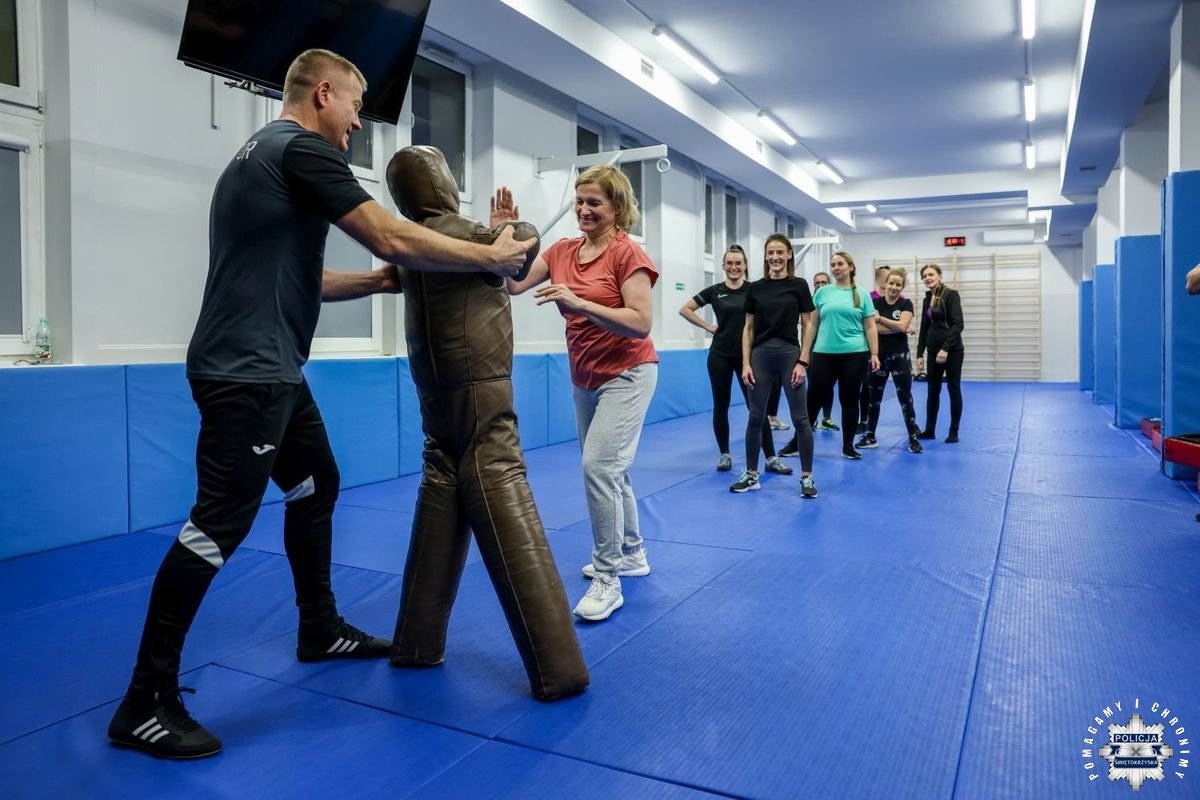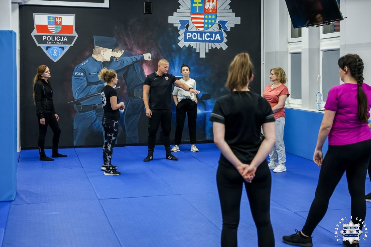 W zajęciach uczestniczyło kilkanaście pań, które na co dzień pracują i pełnią służbę w strukturach świętokrzyskiej Policji, akcja „Samoobrona dla Kobiet w Policji” zaplanowana została w ramach obchodów 100-lecia obecności Pań w szeregach Policji.
