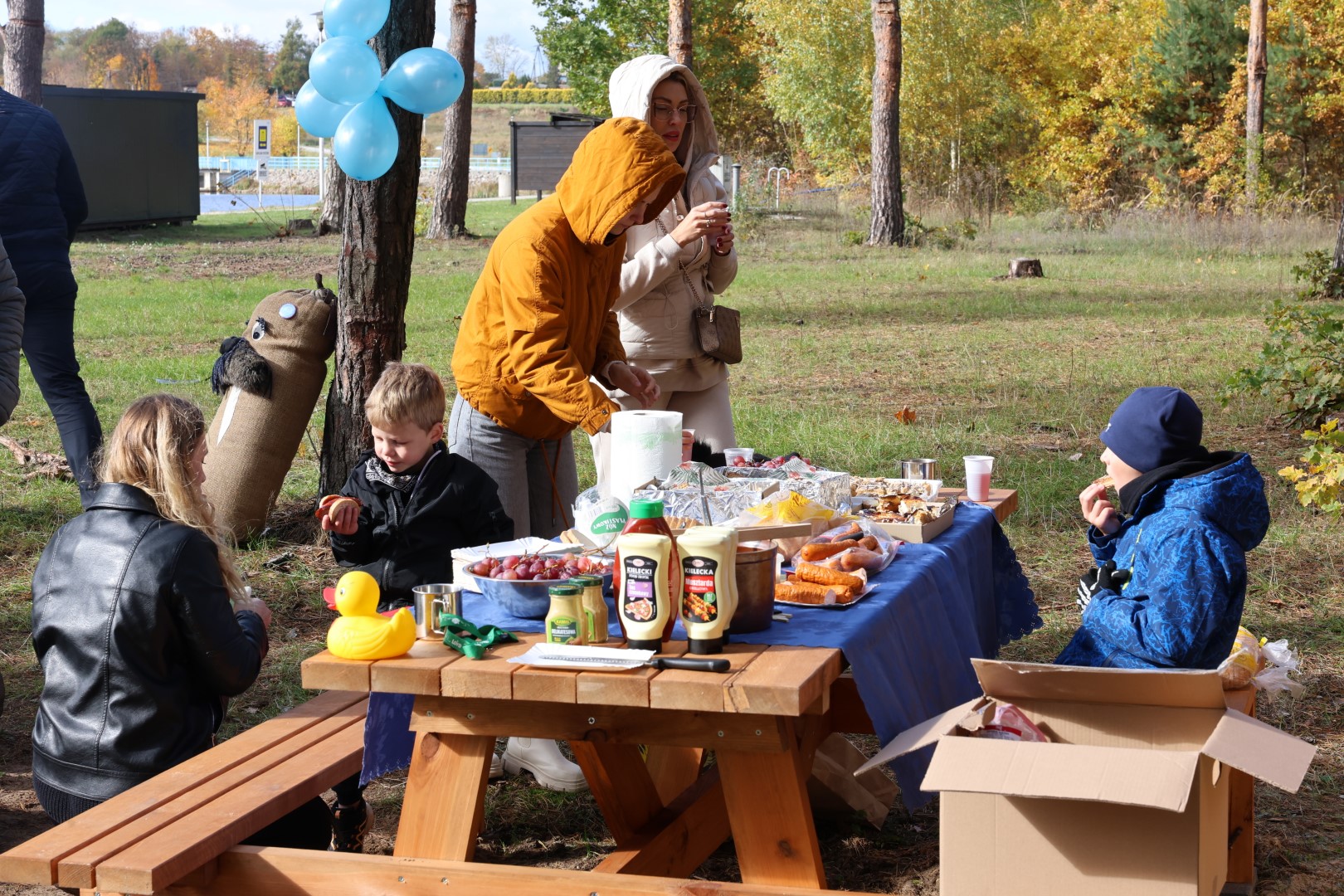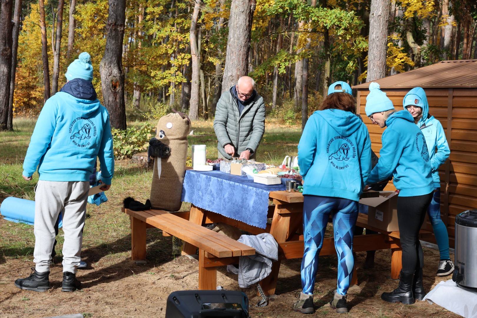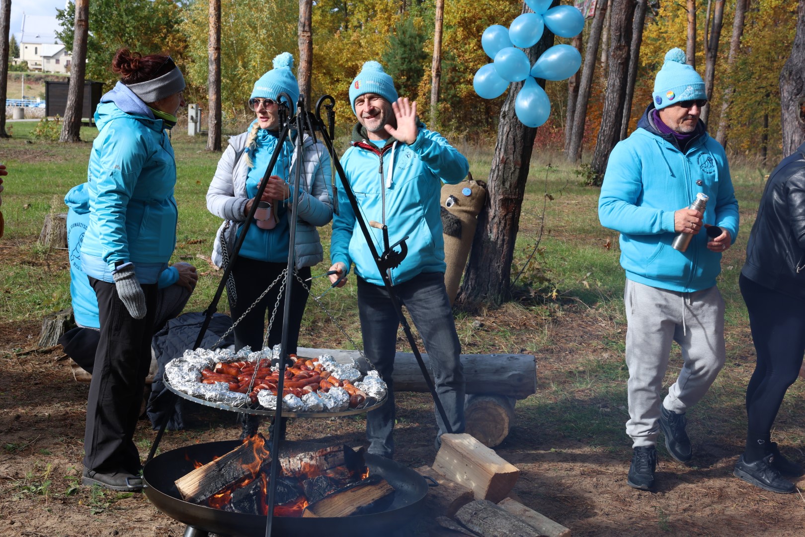 Po zakończeniu kąpieli na uczestników czekał ciepły poczęstunek – kiełbaski z grilla, domowe ciasta i inne smakołyki. Dużym zainteresowaniem cieszyła się również sauna nad zalewem, w której można było się rozgrzać po zimnej kąpieli.