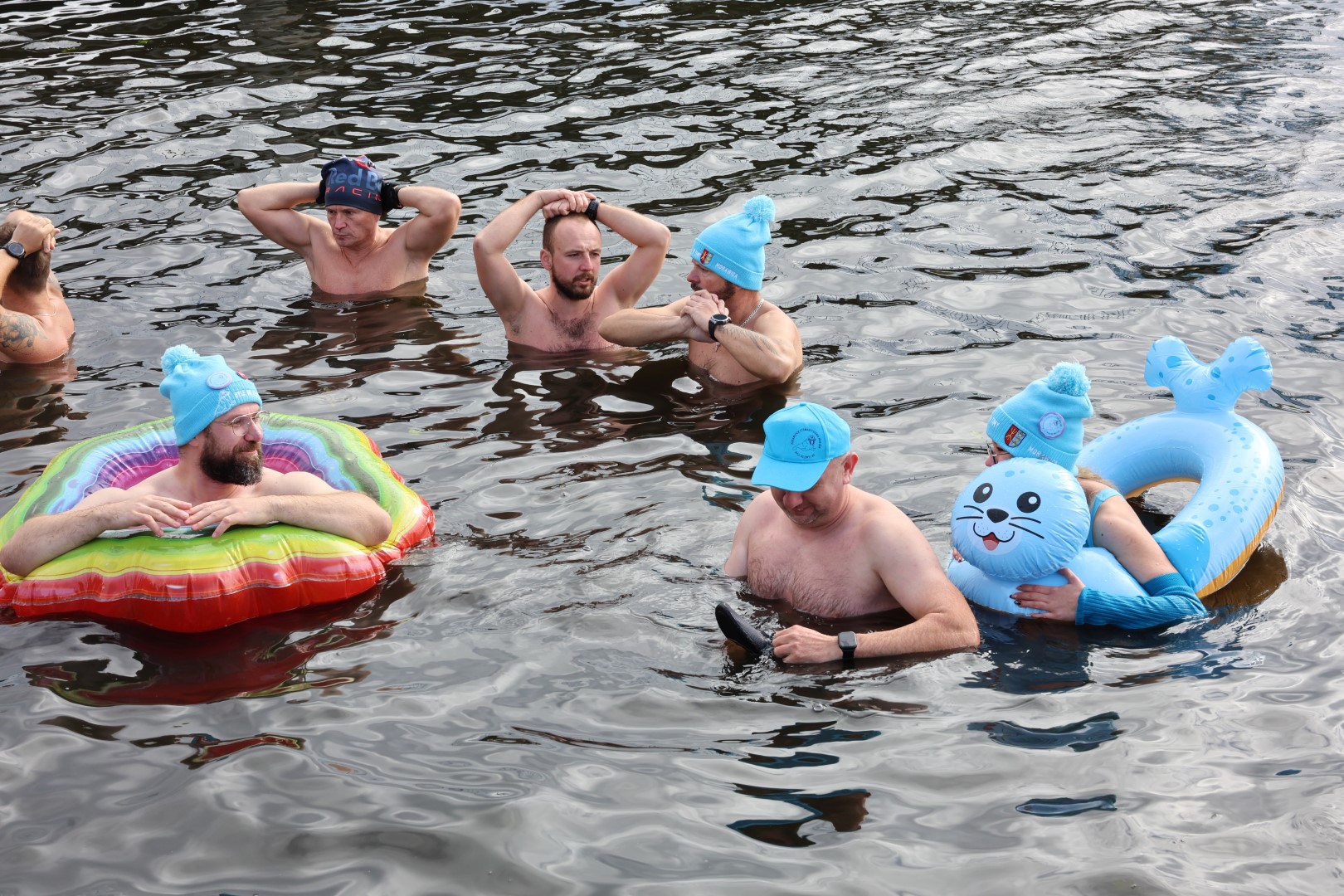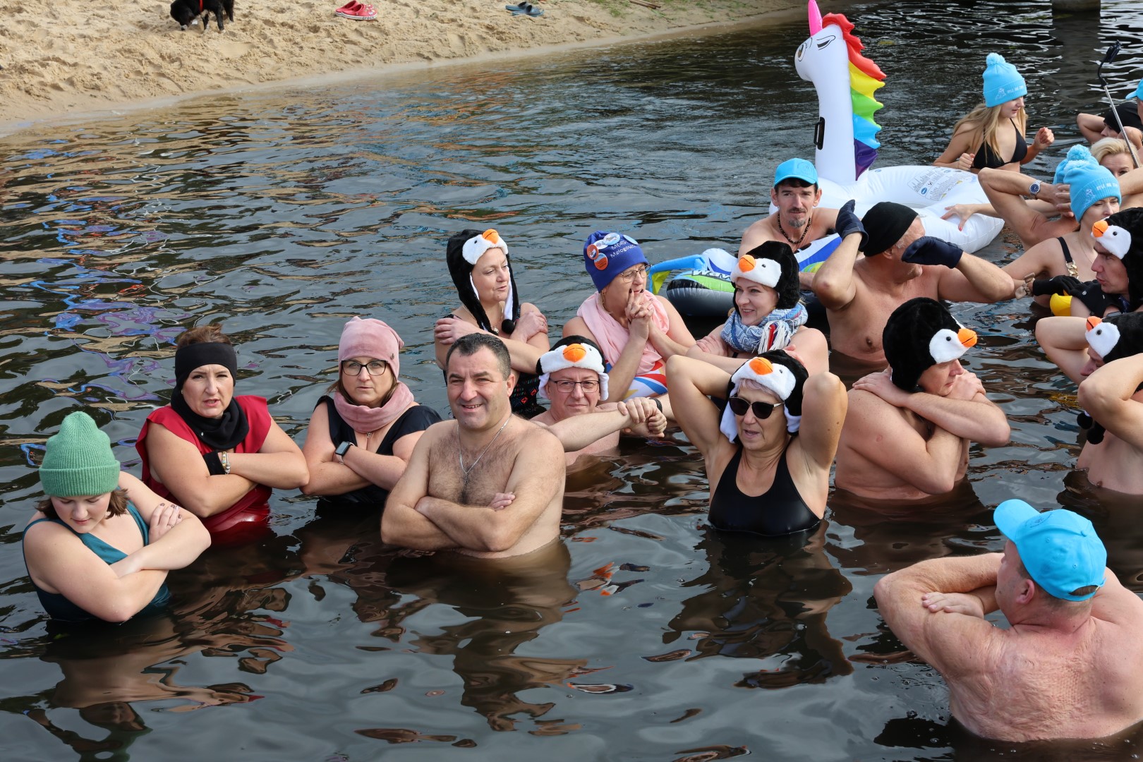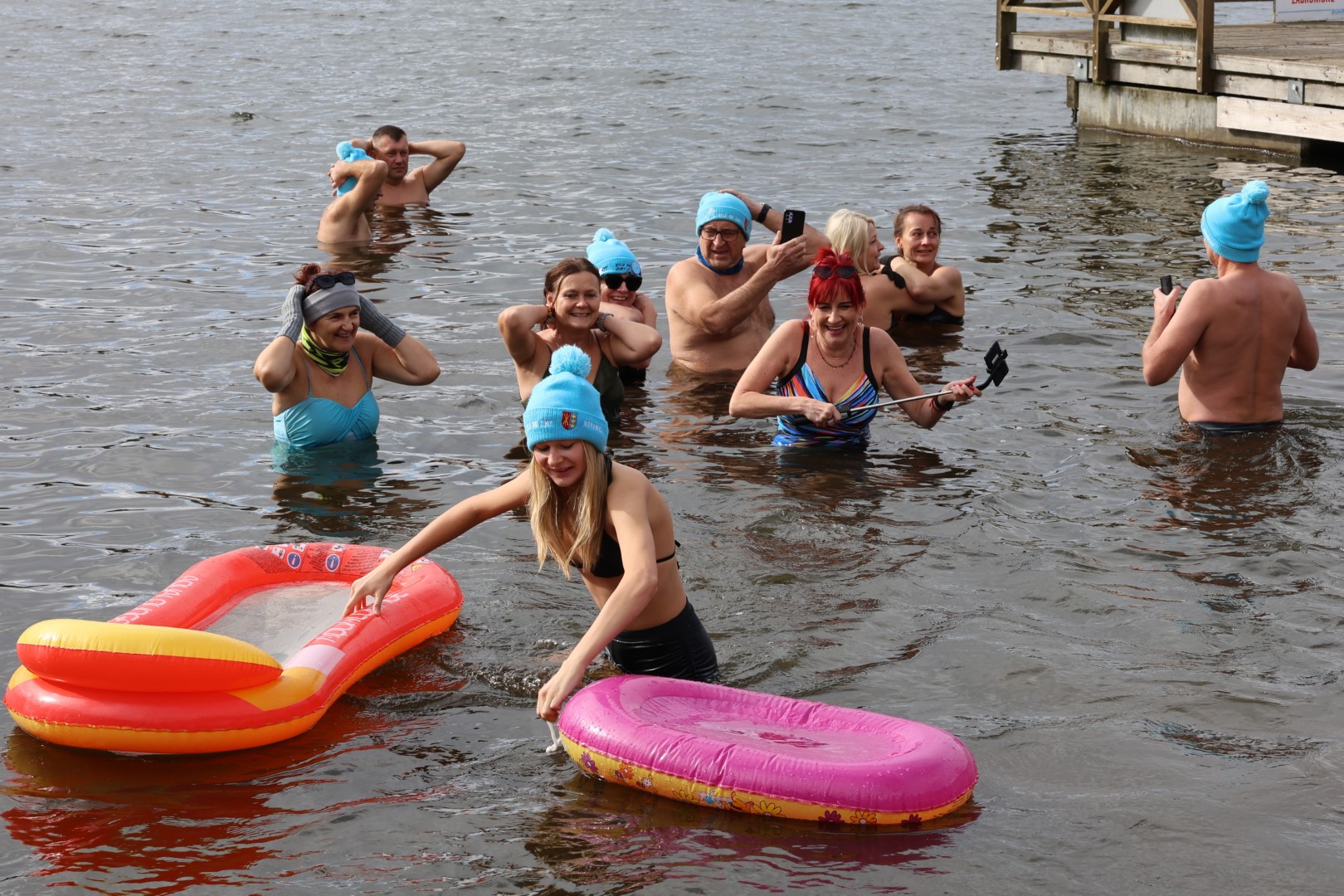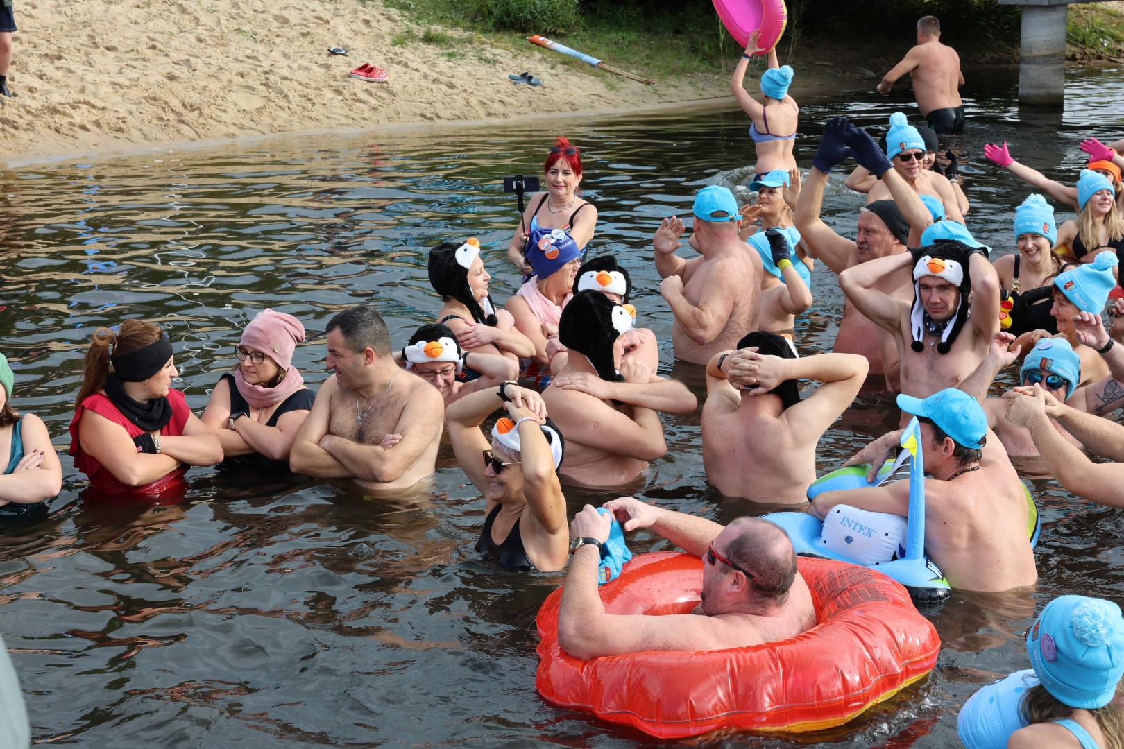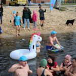 Po krótkiej rozgrzewce uczestnicy ruszyli do zalewu, gdzie odbyła się wyjątkowa i pełna humoru konkurencja – „Pływanie na byle czym”. W ruch poszły kolorowe dmuchane akcesoria: flamingi, materace itp., które sprawiły, że morsowanie nabrało barw i radosnego charakteru.
