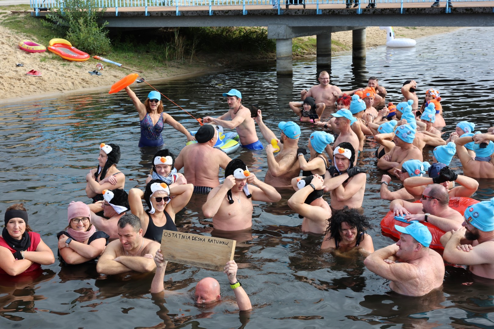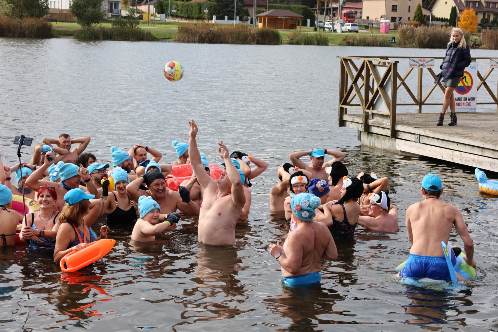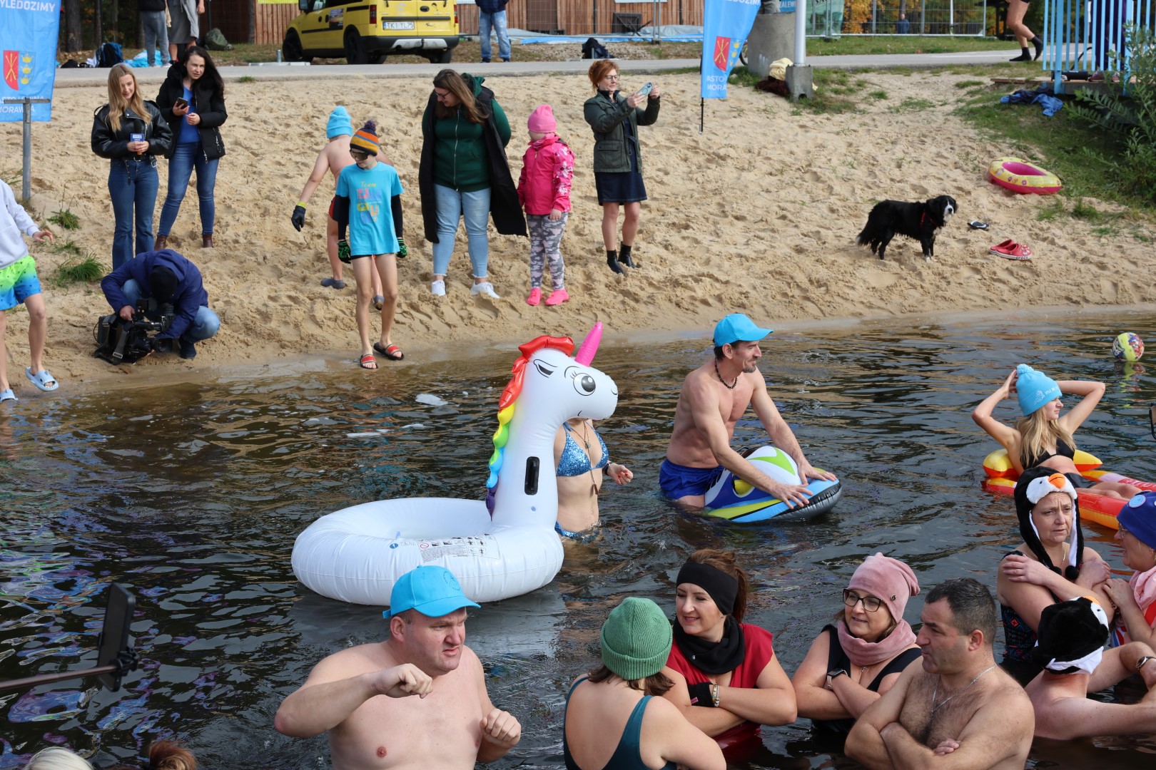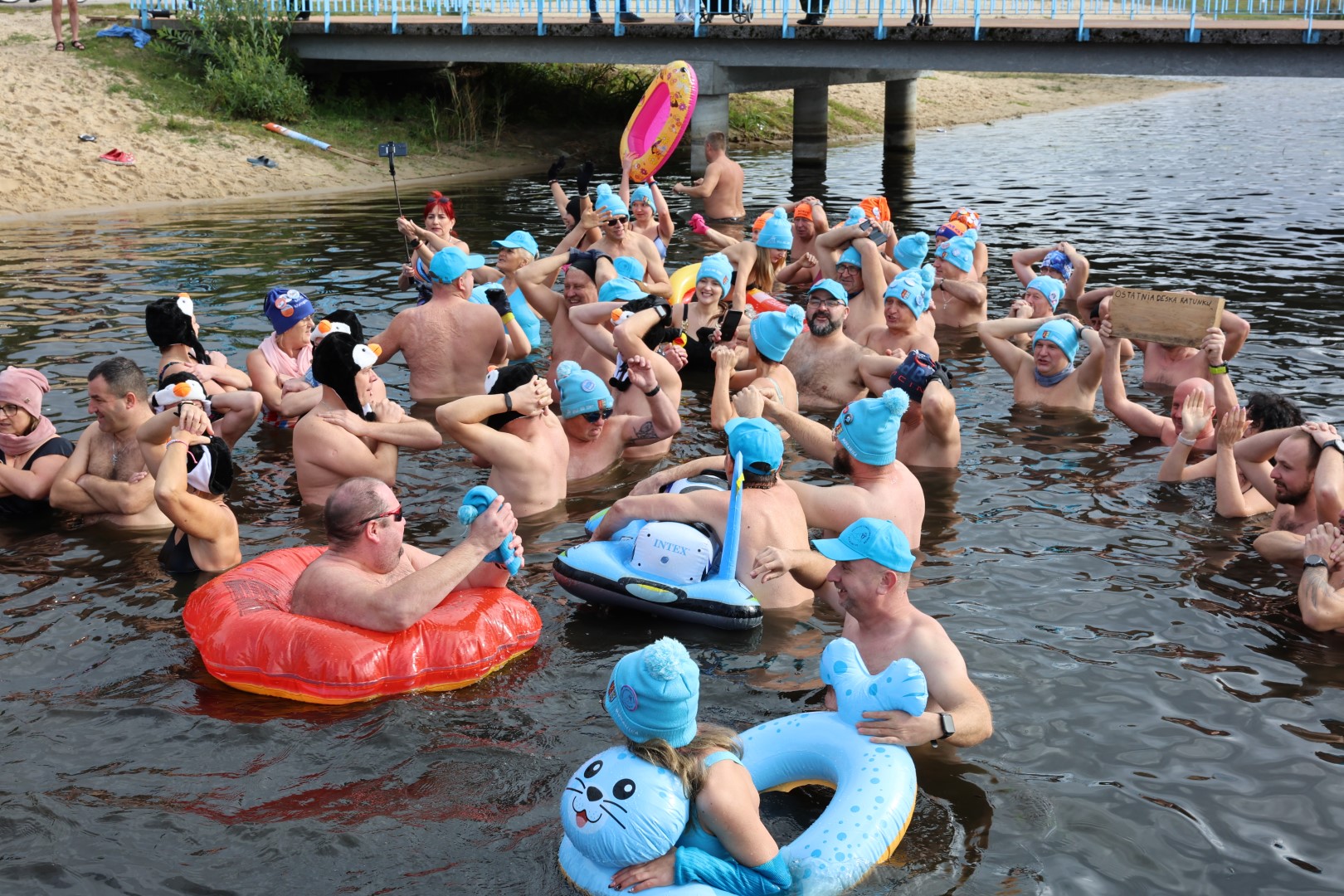Po krótkiej rozgrzewce uczestnicy ruszyli do zalewu, gdzie odbyła się wyjątkowa i pełna humoru konkurencja – „Pływanie na byle czym”. W ruch poszły kolorowe dmuchane akcesoria: flamingi, materace itp., które sprawiły, że morsowanie nabrało barw i radosnego charakteru.