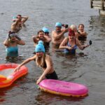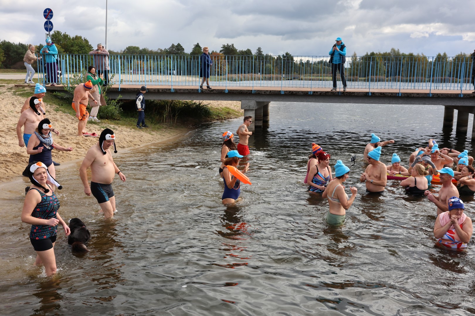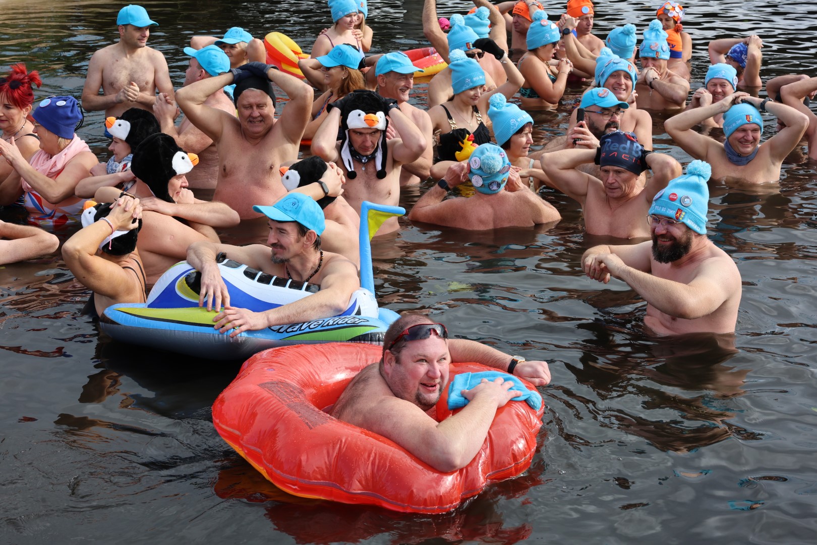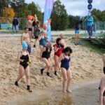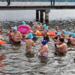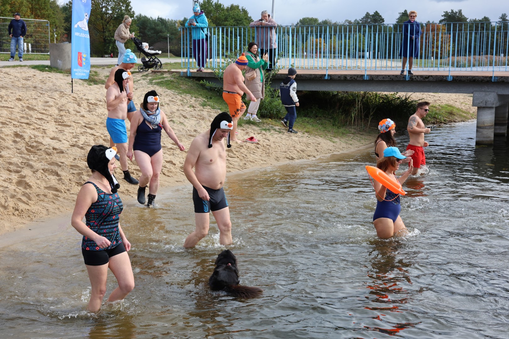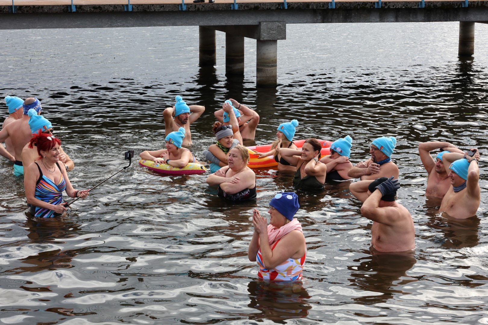 Po krótkiej rozgrzewce uczestnicy ruszyli do zalewu, gdzie odbyła się wyjątkowa i pełna humoru konkurencja – „Pływanie na byle czym”. W ruch poszły kolorowe dmuchane akcesoria: flamingi, materace itp., które sprawiły, że morsowanie nabrało barw i radosnego charakteru.