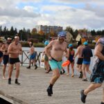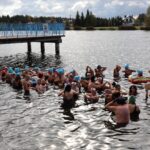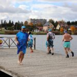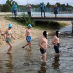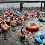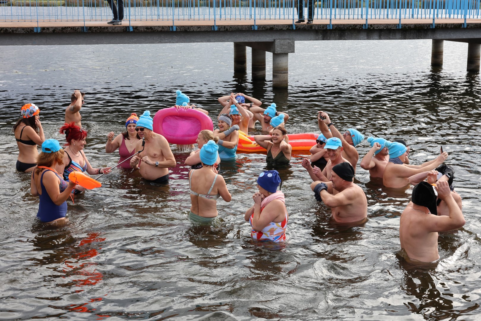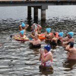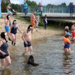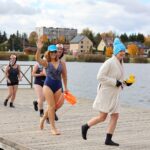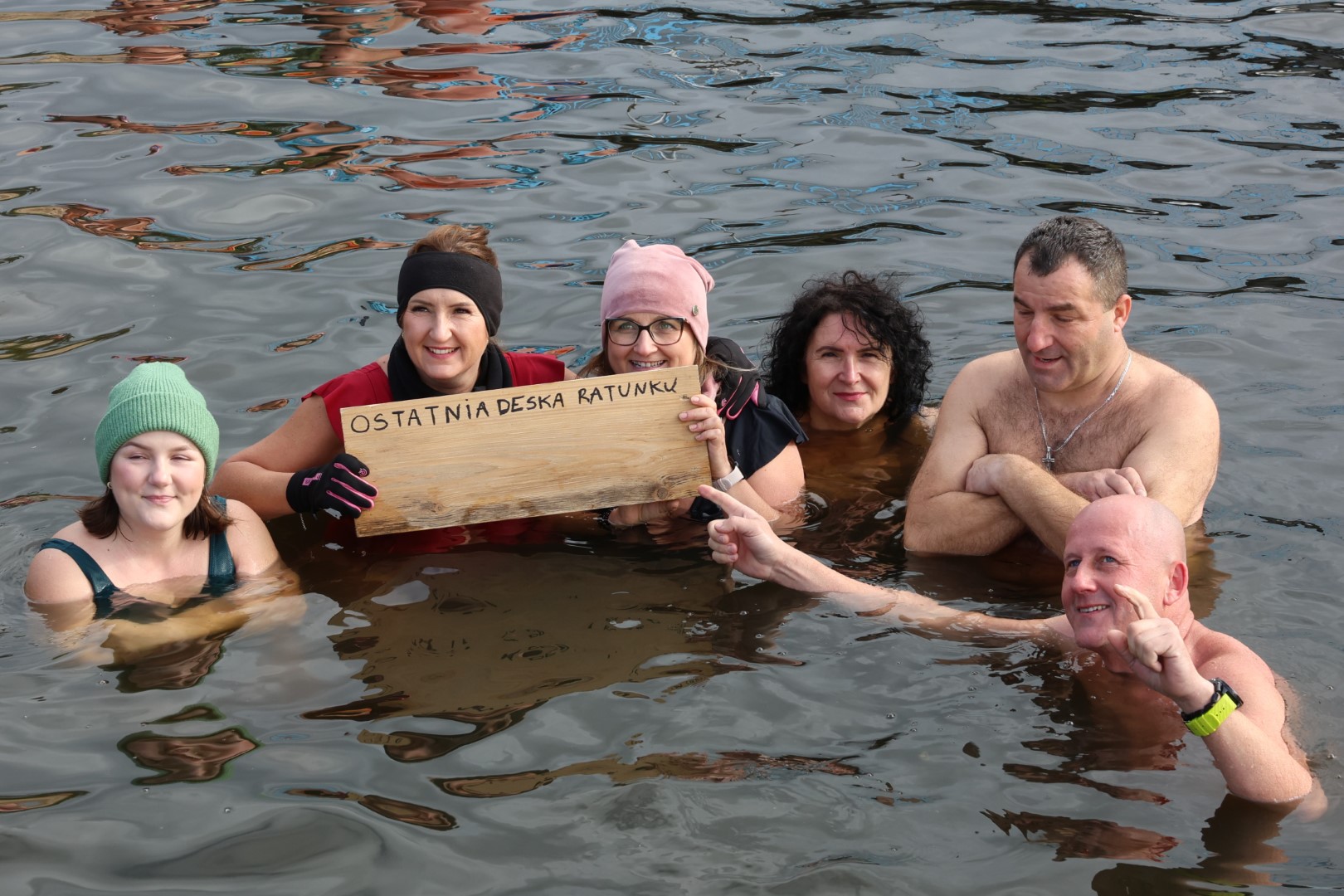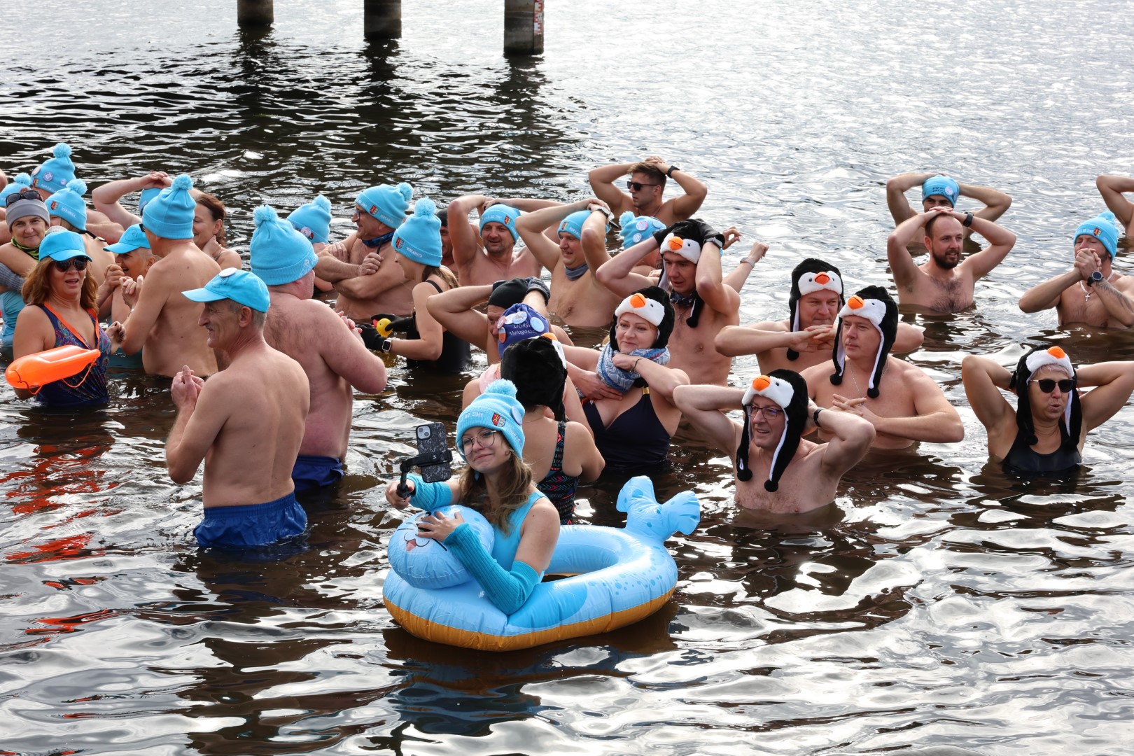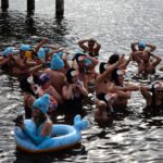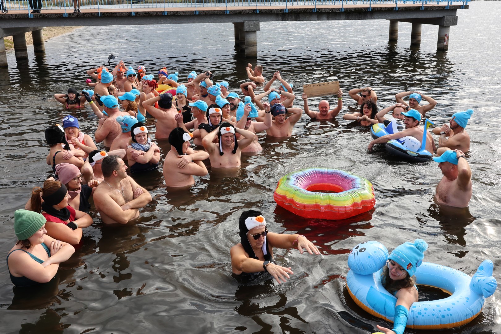 Po krótkiej rozgrzewce uczestnicy ruszyli do zalewu, gdzie odbyła się wyjątkowa i pełna humoru konkurencja – „Pływanie na byle czym”. W ruch poszły kolorowe dmuchane akcesoria: flamingi, materace itp., które sprawiły, że morsowanie nabrało barw i radosnego charakteru.