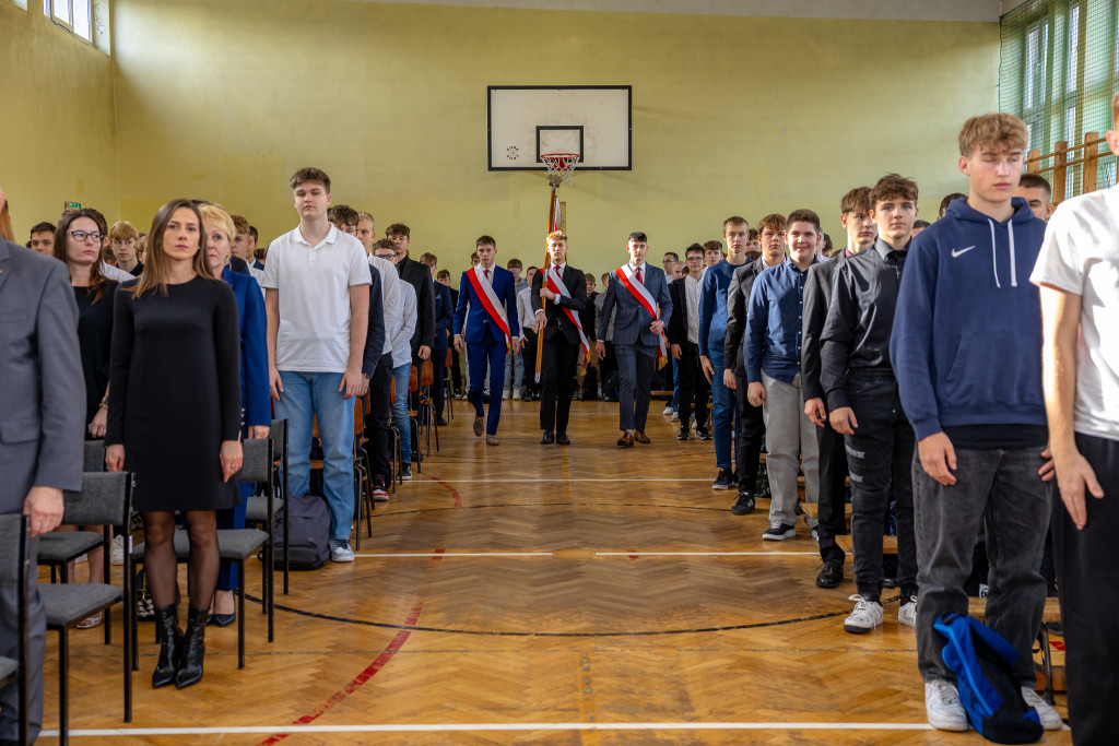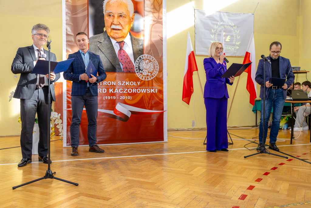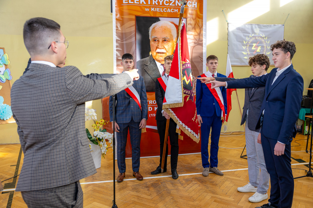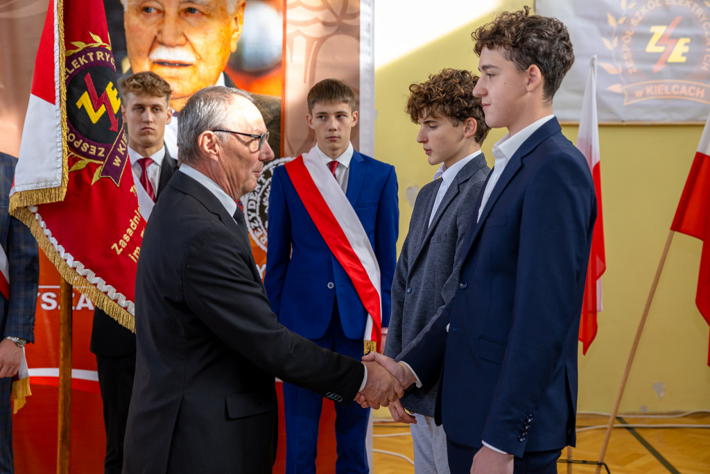 W Zespole Szkół Elektrycznych w Kielcach odbyły się dziś uroczyste obchody Dnia Patrona placówki – ostatniego prezydenta RP na uchodźstwie Ryszarda Kaczorowskiego, połączone z Dniem Edukacji Narodowej. Podczas spotkania ślubowanie złożyli przedstawiciele ponad 200 uczniów klas pierwszych. To wyjątkowe wydarzenie symbolicznie włączyło młodzież do społeczności Elektryka. W ramach akcji Narodowego Czytania fragmenty dział Jana Kochanowskiego przeczytała, biorąca udział w uroczystości, marszałek województwa Renata Janik.