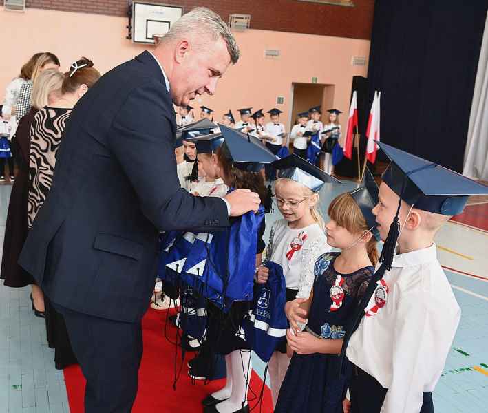 W wydarzeniu uczestniczył burmistrz Dariusz Meresiński, który pogratulował dzieciom tego ważnego dnia i wręczył im pamiątkowe upominki. To był dzień pełen wzruszeń, radości i uśmiechów! Powodzenia, drodzy pierwszoklasiści przed Wami piękna szkolna przygoda!