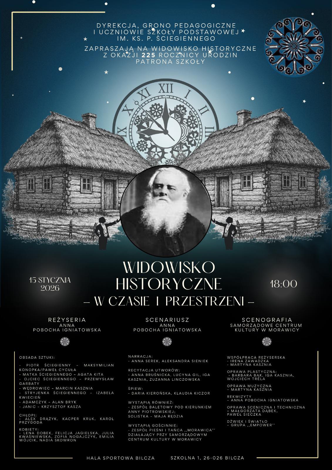 Spektakl z okazji 225. rocznicy urodzin patrona szkoły – ks. Piotra Ściegiennego odbędzie się 15 stycznia 2026 r. o godz. 18:00 w hali sportowej „Bilcza”. Szczegóły na plakacie. Serdecznie zapraszamy!