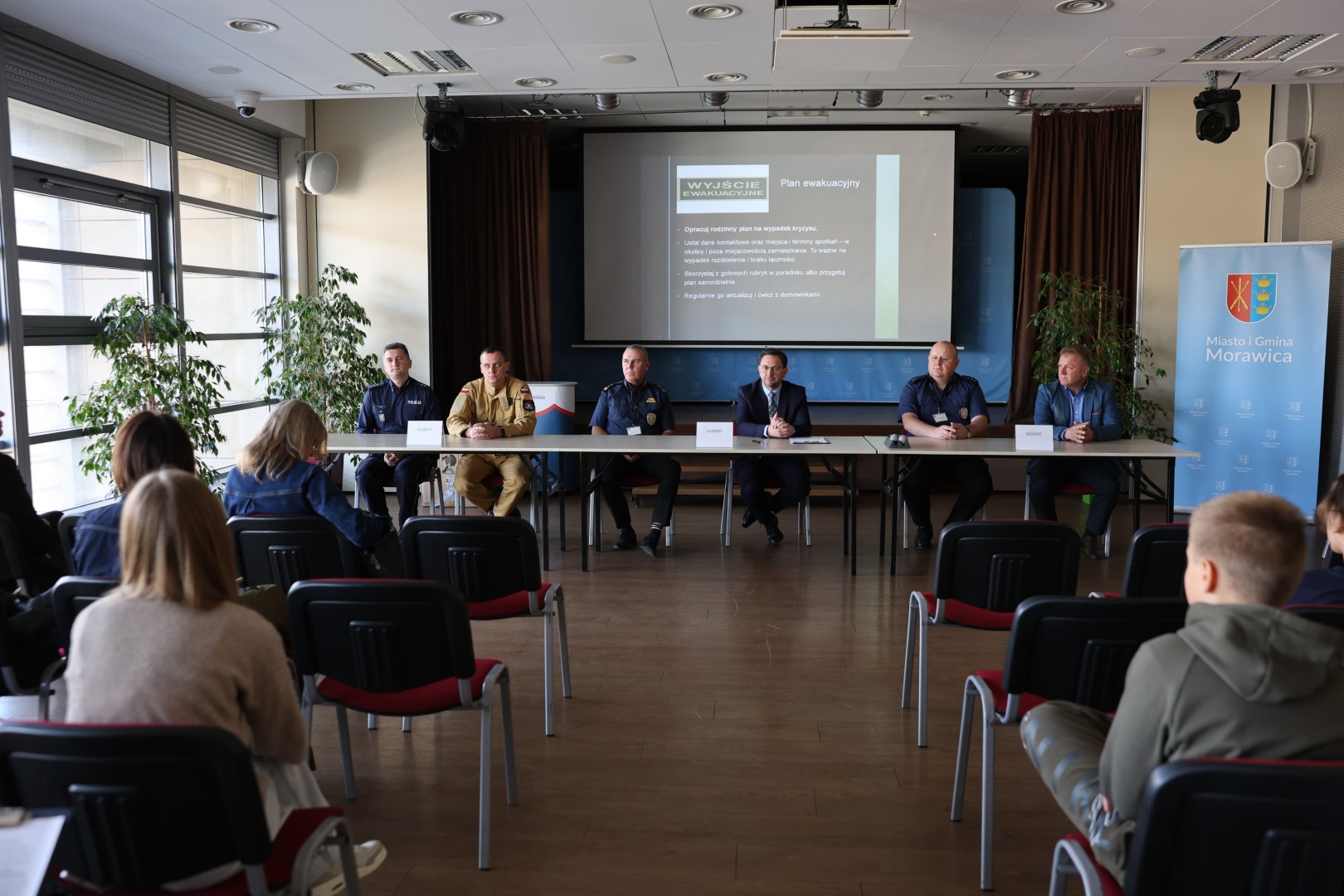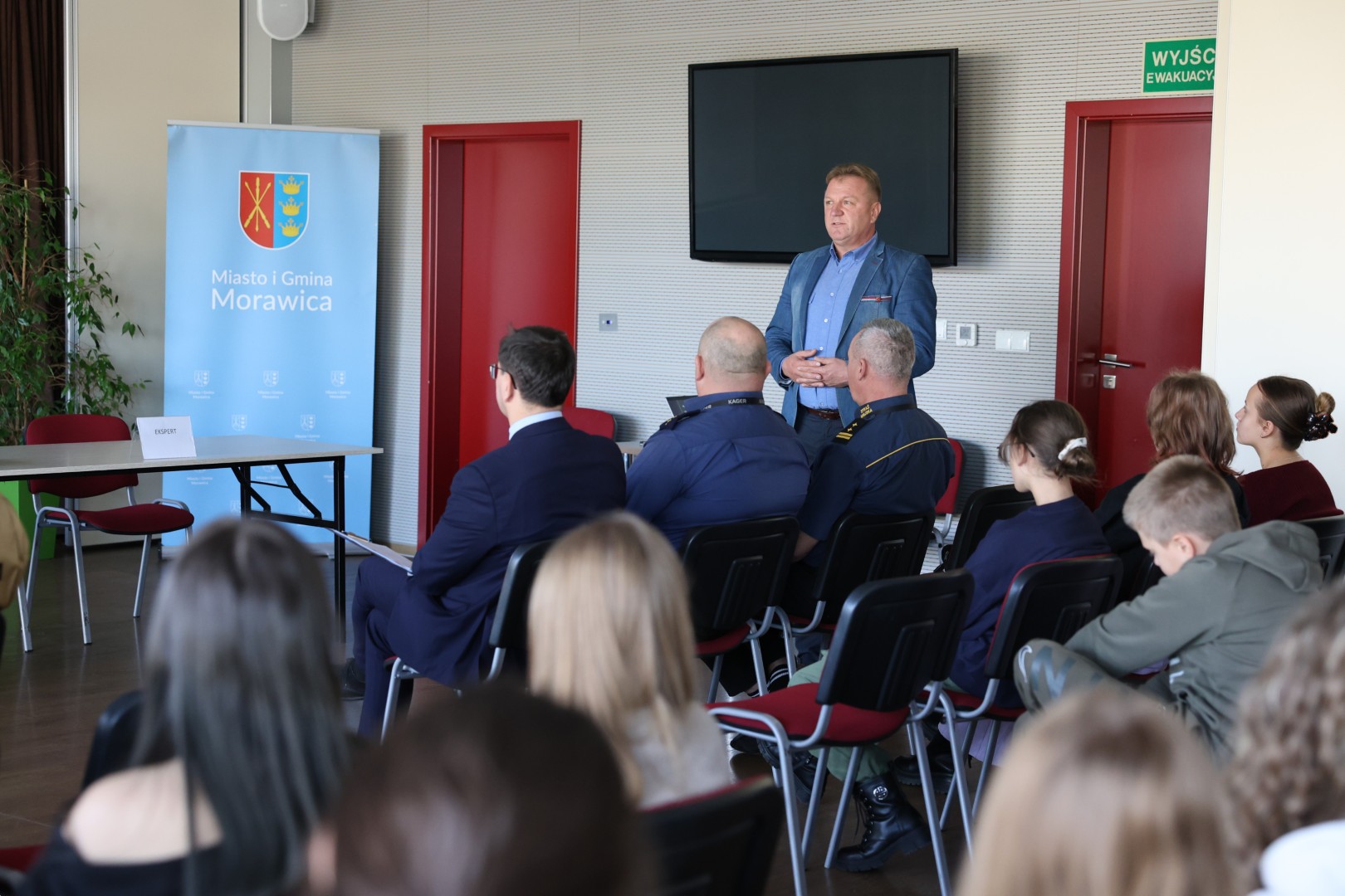 Spotkanie rozpoczął Zastępca Burmistrza Miasta i Gminy Morawica Marcin Dziewięcki witając zaproszonych gości, którzy opowiadali młodzieży o sytuacjach kryzysowych oraz o tym jak się wtedy zachować. Wśród ekspertów z zakresu bezpieczeństwa znaleźli się Komendant Straży Miejskiej w Morawicy Bogdan Metryka, Inspektor Straży Miejskiej w Morawicy Wojciech Nowak, Aspirant Jakub Dobosz z Komisariatu Policji w Morawicy, Komendant Miejsko – Gminny ZOSP RP oddział w Morawicy Jerzy Rożkiewicz oraz Naczelnik OSP w Bilczy Daniel Wichnera.