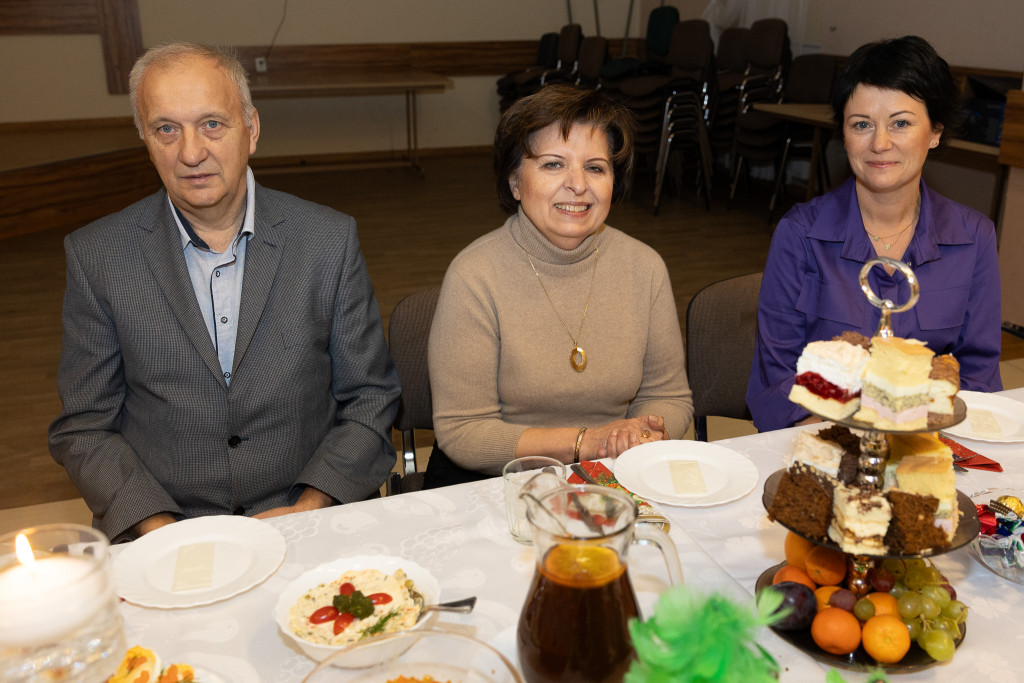 Seniorki z Klubu „Złote Lata” stanęły na wysokości zadania, przygotowując wyśmienity poczęstunek. Na stołach królowały tradycyjne potrawy i ciasta, a członkinie Klubu podkreślały, że wspólna praca nad świątecznymi specjałami jest dla nich jedną z najcenniejszych bożonarodzeniowych tradycji.